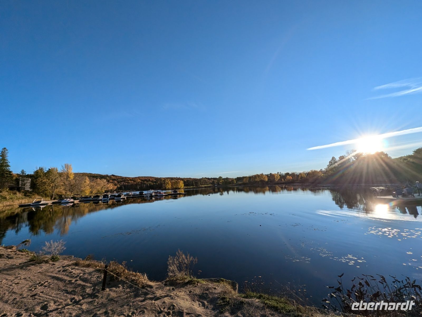 Am Nachmittag ging es weiter zum Lac Taureau. Schon auf der Fahrt blitzten die wundervollen Farben der herbstlichen Bäume immer wieder auf, und wir stimmten uns mit einigen Liedern von Marina auf unseren entspannten Aufenthalt ein.