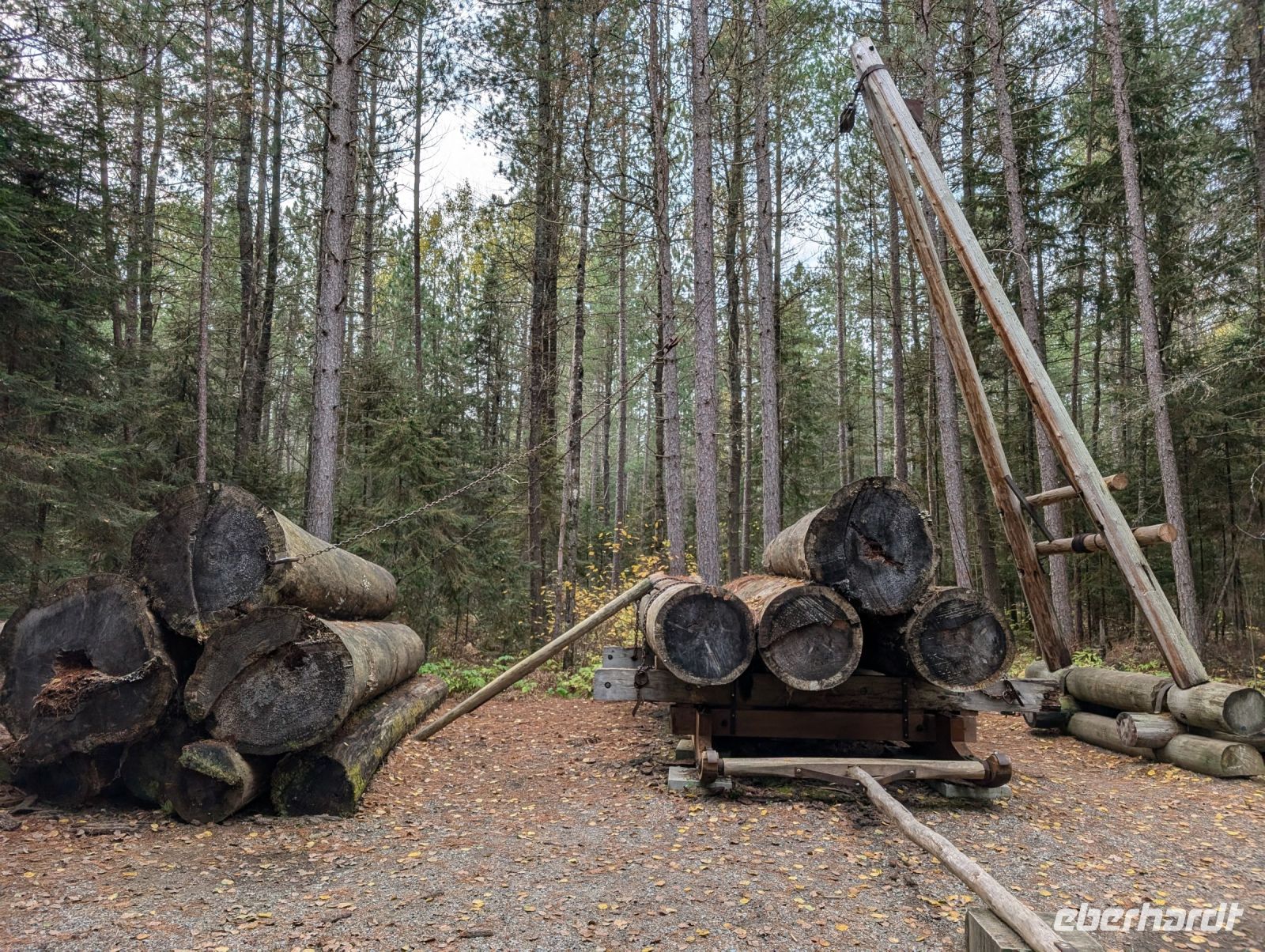 Nach dem Besuch im Zentrum ging es weiter zum „Logging Trail“, einem Pfad, der uns durch die Geschichte des Holztransports und der Verarbeitung in Kanada führte. An verschiedenen Stationen erfuhren wir spannende Details über die harten Arbeitsbedingungen früherer Zeiten. Besonders interessant war, dass einige unserer Mitreisenden beruflich in der Forstwirtschaft tätig waren und dadurch zusätzliche Einblicke geben konnten – das war wirklich bereichernd!