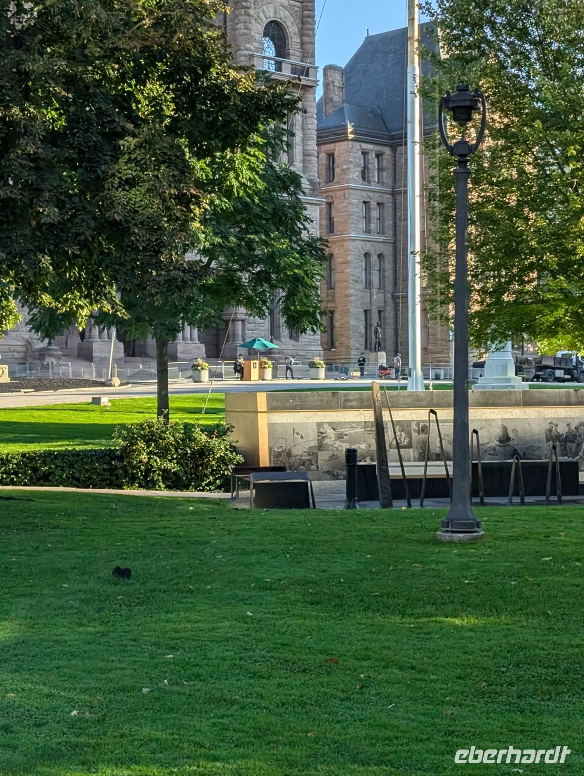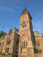 Unsere Stadttour begann am beeindruckenden Parlamentsgebäude. Marina erklärte uns die Bedeutung des „ewigen Feuers“, das vor dem Gebäude brennt, bevor wir weiter zum Kriegsdenkmal gingen. Hier wurde deutlich, in welche Konflikte Kanada als britische Kolonie verstrickt war. Anschließend bewunderten wir die Verbindung des Rideau-Kanals und warfen einen kurzen Blick in die Basilica. Auch die Kunst in Ottawa kam nicht zu kurz: Marina erklärte uns, dass der Staat 1 % des Bauwerts eines öffentlichen Gebäudes in Kunst investieren muss, was uns vor der imposanten Fassade des Kunstmuseums noch bewusster wurde.