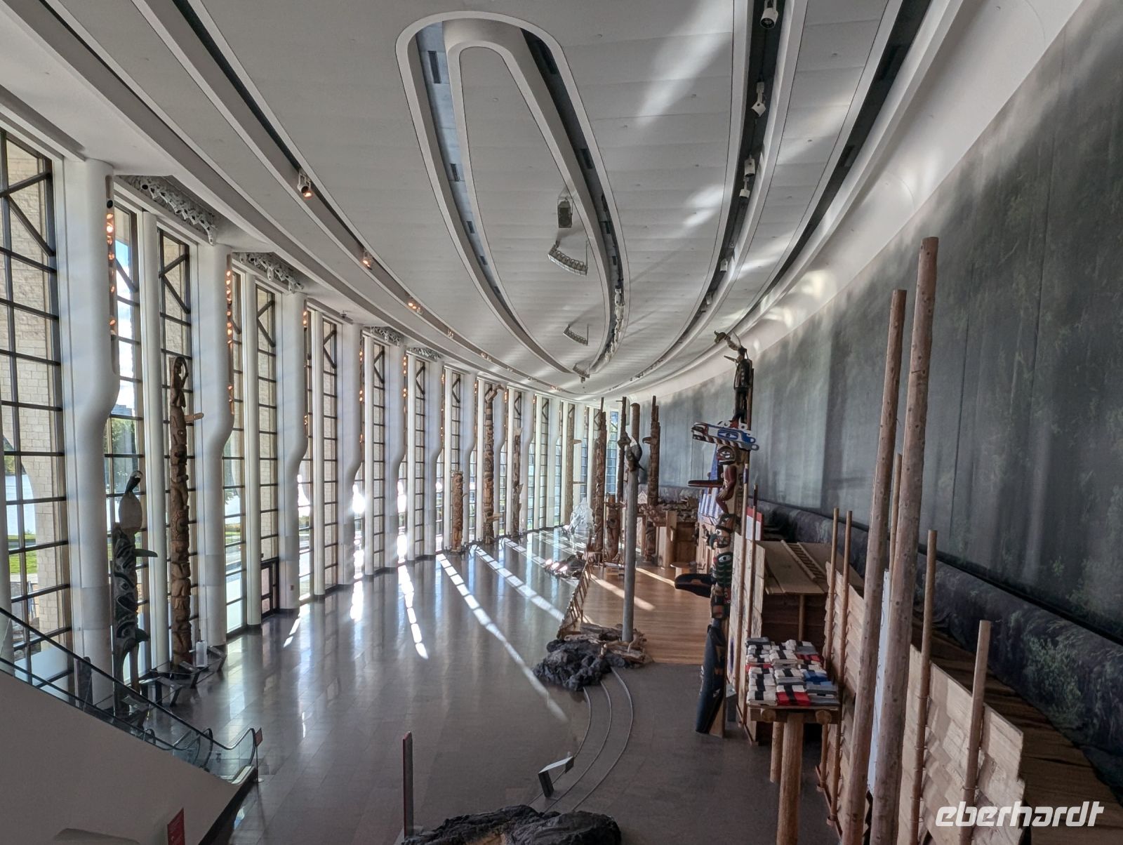 Am Nachmittag erreichten wir das Dorf der Huronen, wo uns ein Film zeigte, wie sich das Zusammenleben der Wendat und der Jesuiten gestaltete. Besonders bewegend war die Darstellung der schwierigen Zeiten nach dem Eintreffen der Europäer, als Krankheiten die Bevölkerung dezimierten und das Misstrauen zwischen den Völkern verstärkte.