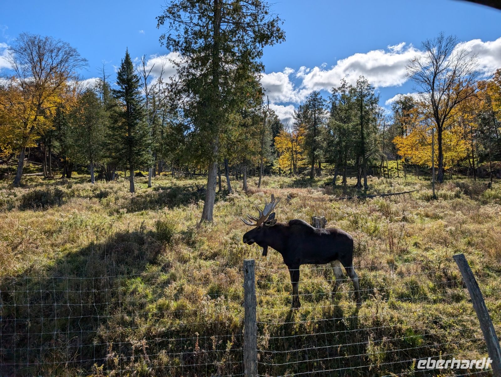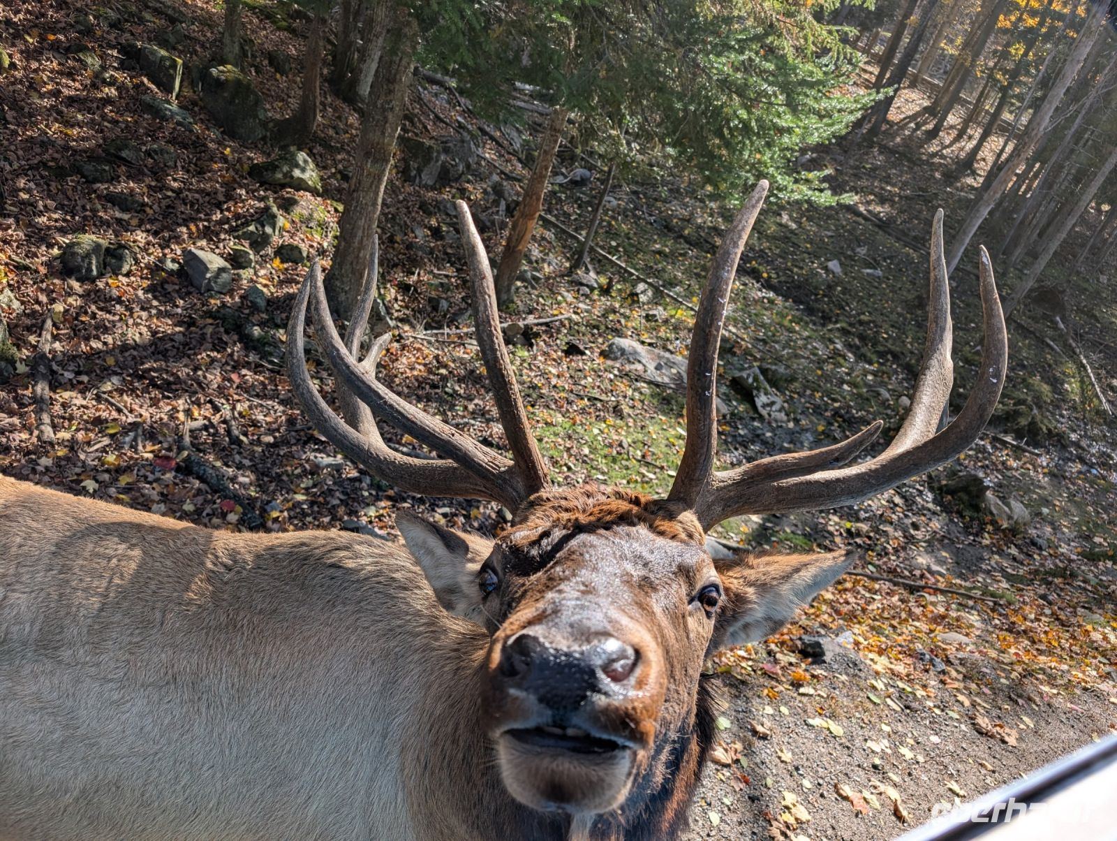 Unser sechster Tag begann mit einem kurzen, aber inspirierenden Besuch des Nationalmuseums in Ottawa. Bei strahlendem Sonnenschein konnten wir die herrliche Kulisse aus Museum, Kanal und den goldenen Farben des Indian Summer genießen. Auch auf der Fahrt zum Omega Park begleitete uns erneut das leuchtende Farbspiel der herbstlichen Wälder. Doch das wahre Highlight erwartete uns erst im Park: eine beeindruckende Mischung aus kanadischer Tierwelt und atemberaubender Natur. Schon beim Einfahren begann die Vorfreude – und dann ging die „Jagd“ los. Allerdings nicht die Jagd der Tiere, sondern die unserer Gäste! Im Bus sprangen sie regelrecht von rechts nach links, um den besten Schnappschuss zu ergattern. Egal ob Elche, Wölfe, Ziegen oder Bisons – jeder wollte das perfekte Foto. Es herrschte eine regelrechte „Foto-Jagd“, bei der kein Motiv verpasst werden sollte.