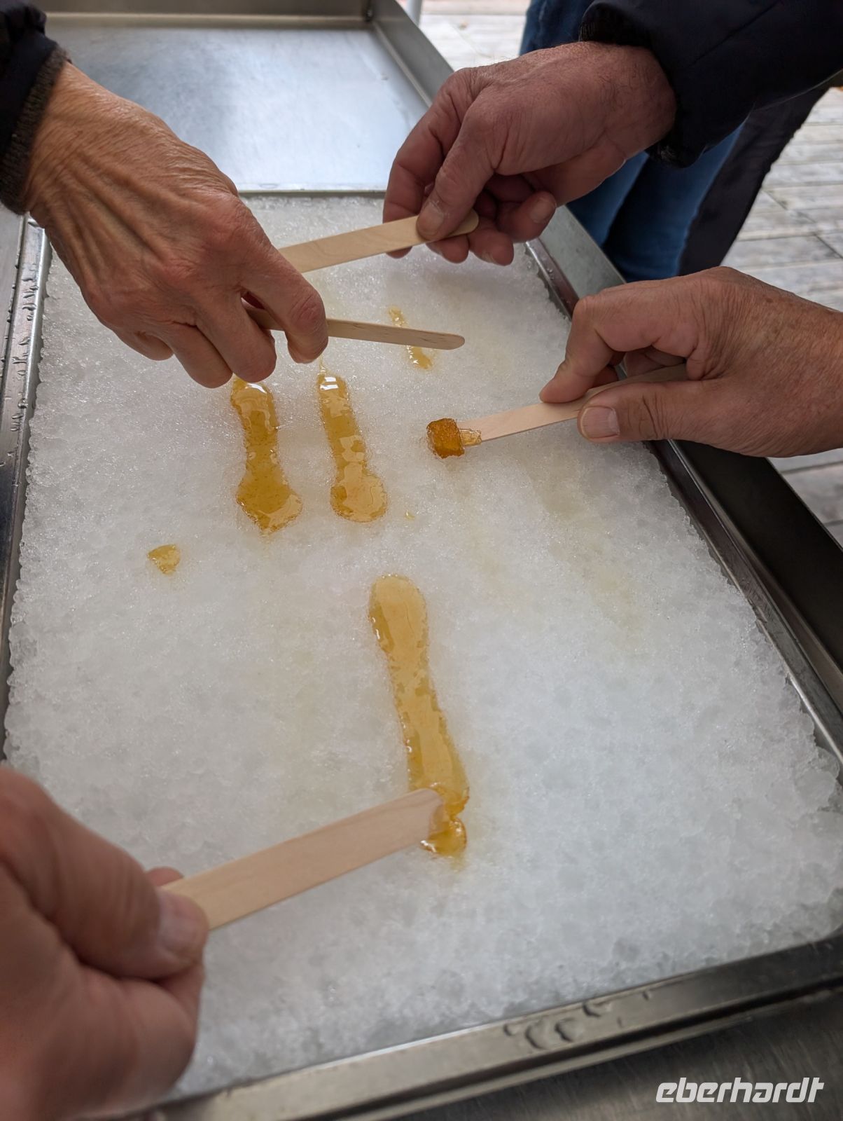 Unser nächstes Highlight wartet: Ein Besuch bei einem Ahornsirup-Produzenten. Dort erfahren wir in einem kurzen Film, wie der begehrte Sirup gewonnen und weiterverarbeitet wird. Danach dürfen wir selbst kosten: Ahornbutter, Ahornsirup und sogar handgerollte Lollies, die wir nach alter Tradition aus heißem Sirup auf Eis zubereiten. Ein süßer Schnaps darf natürlich auch nicht fehlen. In der Boutique wird fleißig eingekauft – Ahornsirup-Popcorn, Bonbons und natürlich jede Menge Sirup selbst. Der versprochene Zuckerschock bleibt nicht aus, denn für viele ist es doch eine ziemlich süße Angelegenheit.