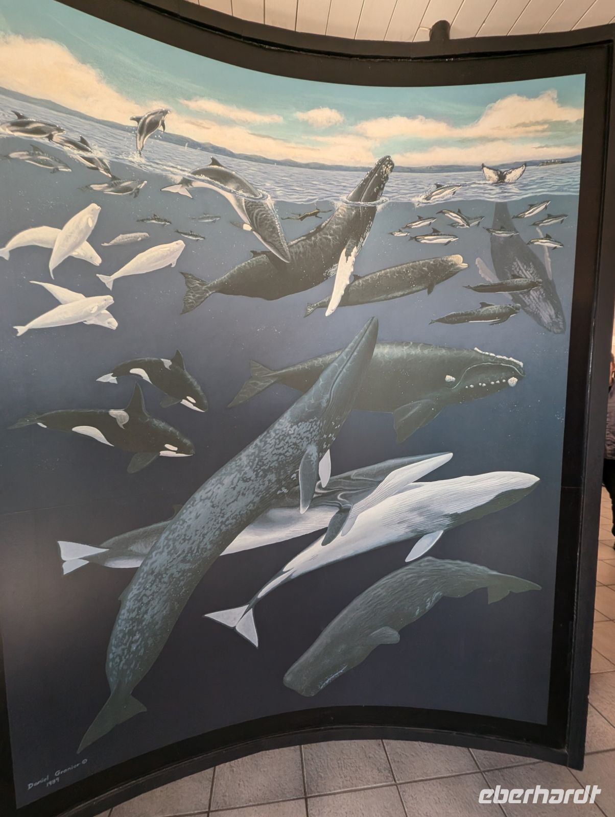 Dann brechen wir auf zu unserer zweiten Bootstour – ein weiteres Mal hoffen und bangen wir um die besten Schnappschüsse der Tierwelt, und hoffen die Meeresbewohner, die wir zuvor im Museum so bewundert haben, anzutreffen. Die erste Stunde auf dem Wasser ist voller Aufregung: Wir erblicken Beluga-Wale und in der Ferne gelegentlich einen Minkwal. Doch danach wird es ruhig. Lange Zeit sehen wir nichts und fahren immer weiter hinaus in der Hoffnung, die großen Wale noch zu sichten. Leider bleibt unsere Suche vergebens, vermutlich sind wir schon zu spät in der Saison unterwegs.