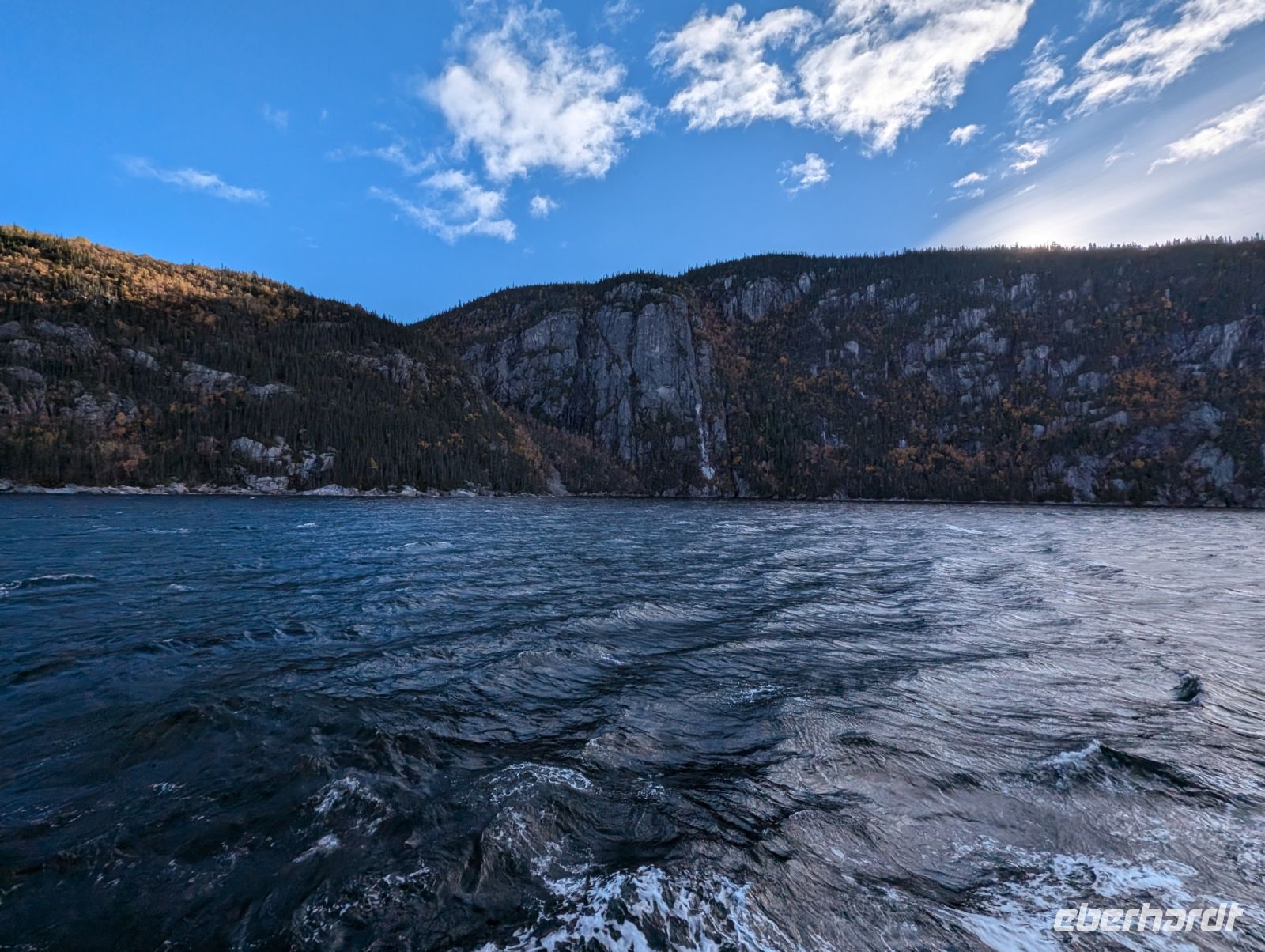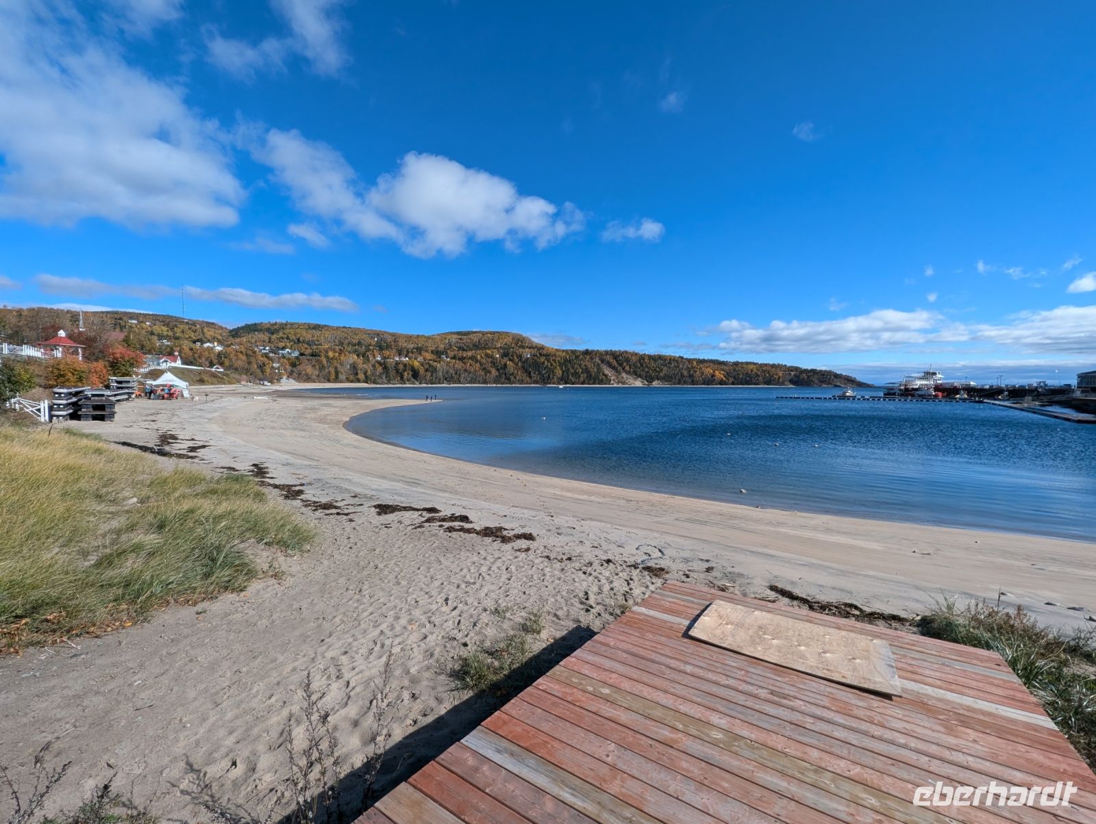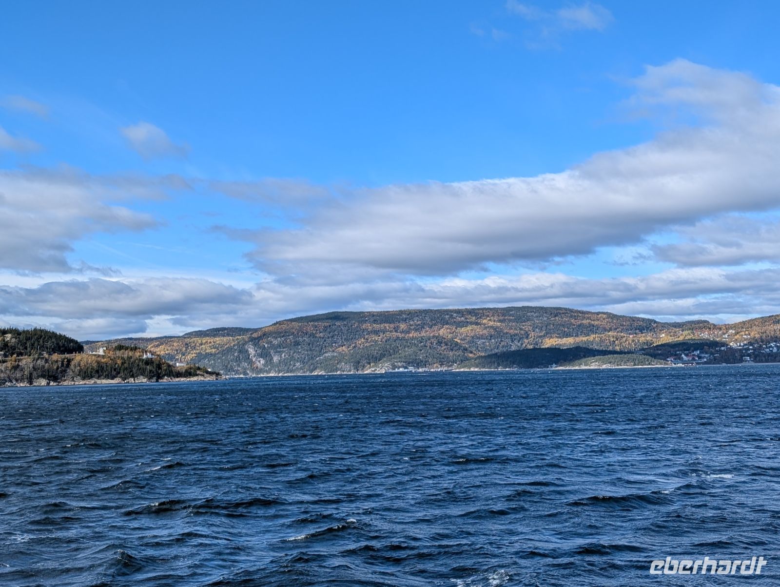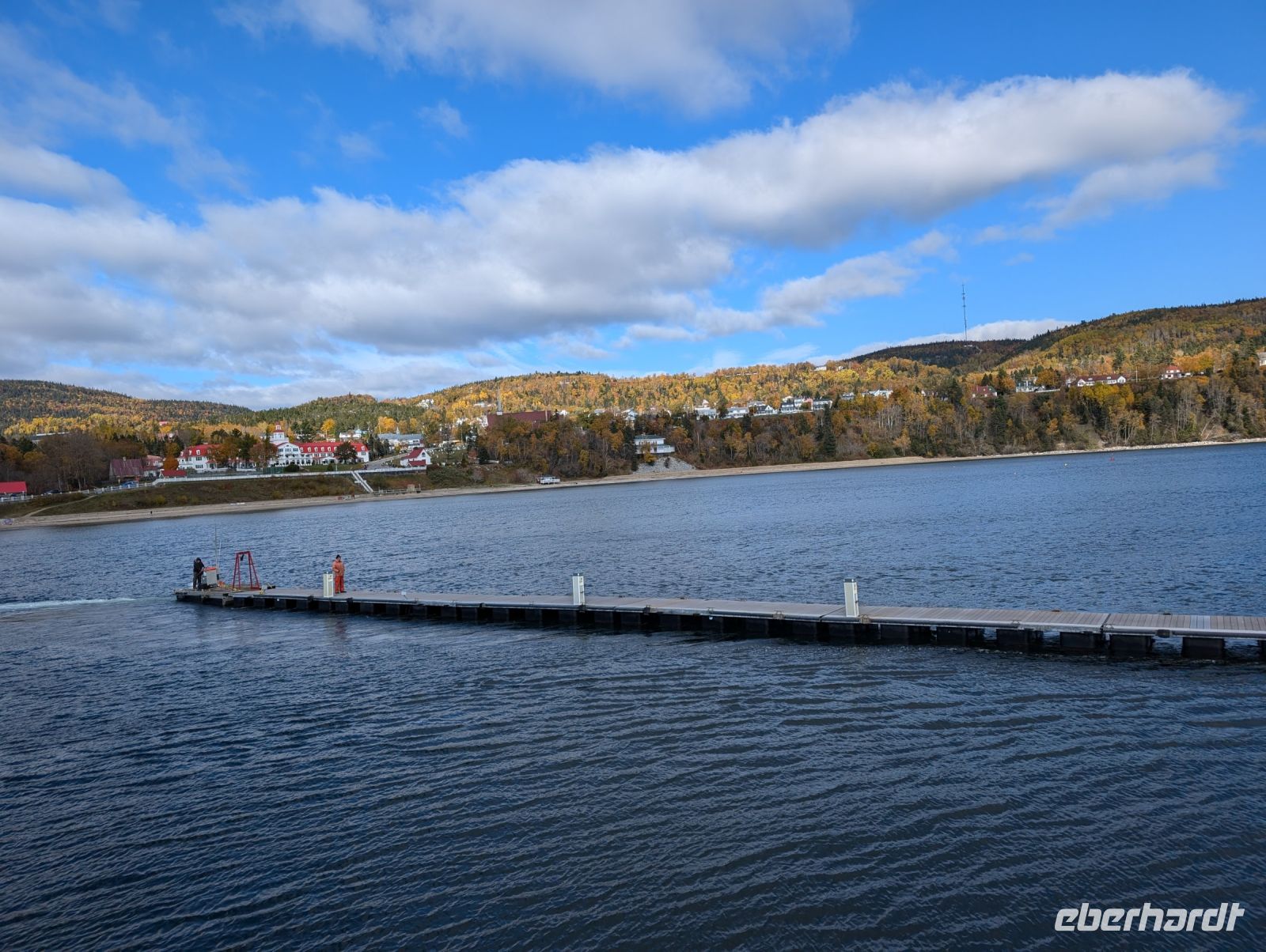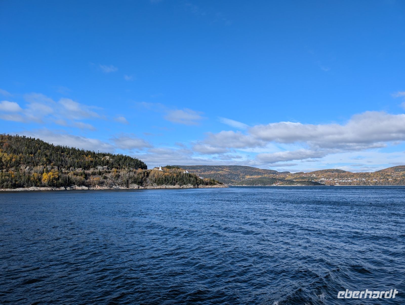 Der Tag beginnt mit spannenden Informationen über unseren Ausgangspunkt, Malbaie – die "schlechte Bucht", wie wir überrascht erfahren. Doch das Wetter hält sich keineswegs an diesen Namen, denn erneut strahlt die Sonne auf den Sankt-Lorenz-Strom und taucht die bunten Bäume in ein beeindruckendes Licht. Unsere Paparazzi-Jagd auf das perfekte Herbstbild geht also in die nächste Runde.