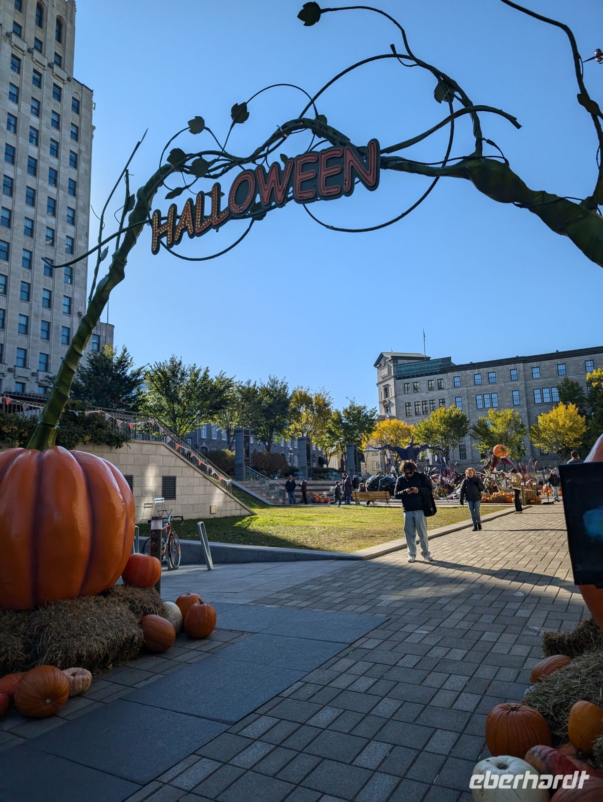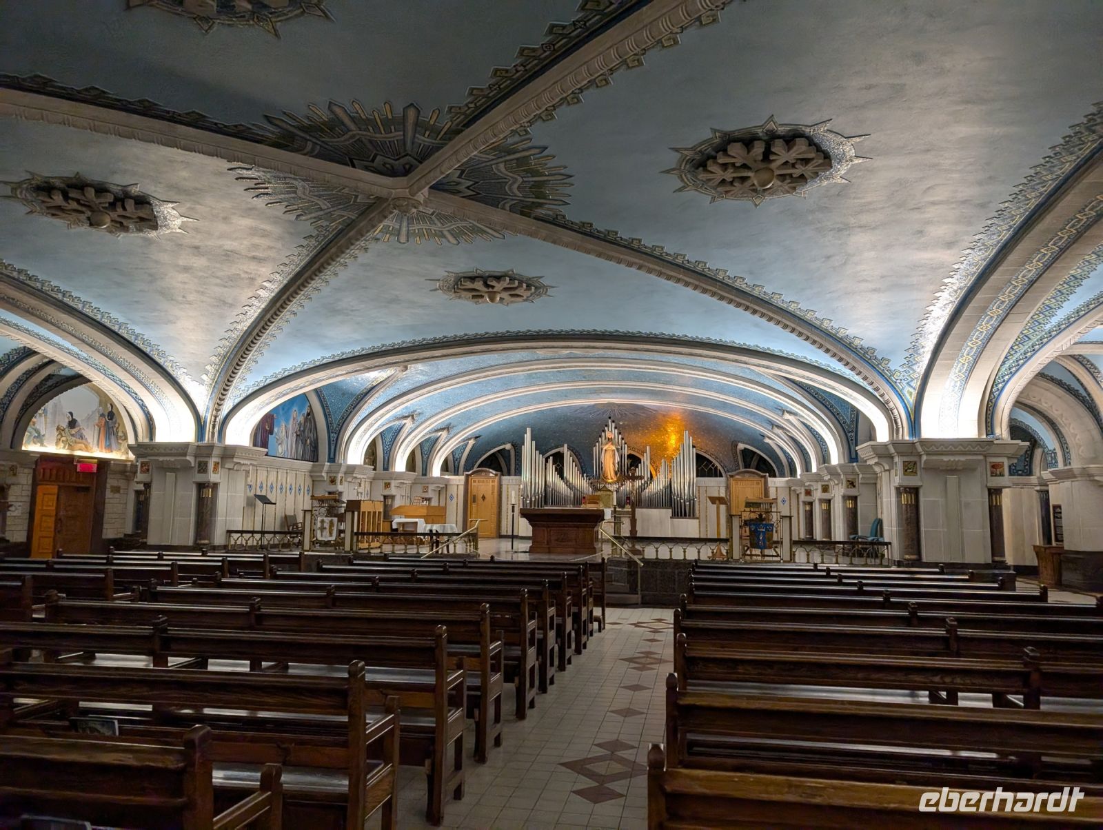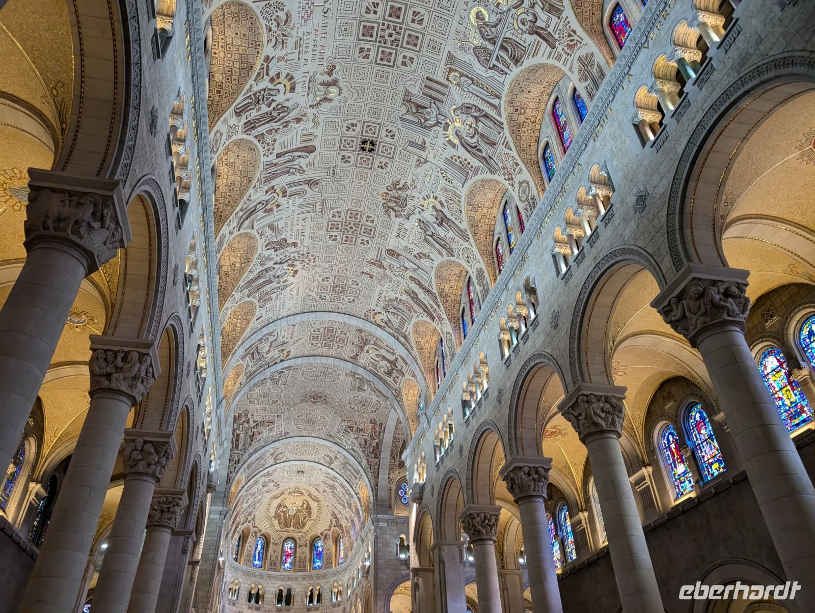 Währenddessen machten Marco, Marina und ich uns auf den Weg zu einer Einkaufsmall, um kanadische Spezialitäten für das geplante Picknick am kommenden Tag einzukaufen. Glücklicherweise konnte ich es am Ende auch noch für einen kurzen Moment in die Basilika schaffen. Der Innenraum ist wahrlich beeindruckend – das Zusammenspiel von Licht und Kunst ist überwältigend, auch wenn die vielen Touristen die Atmosphäre ein wenig trübten. Übrigens erfuhren wir, dass Celine Dion, die in Montréal geboren wurde, genau in dieser Basilika geheiratet hat. Eine seltene Ausnahme, da offiziell keine Hochzeiten dort erlaubt sind!