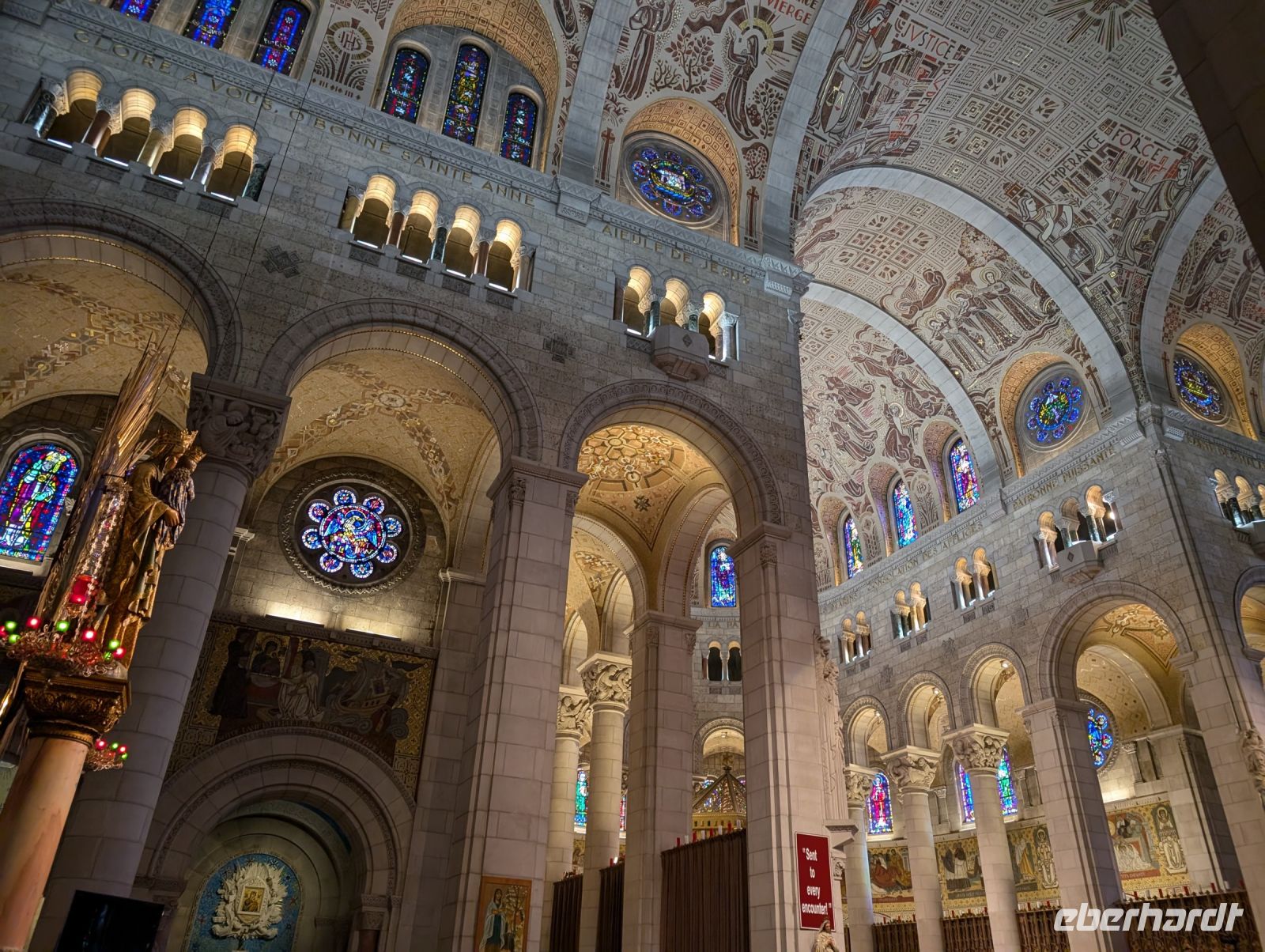 Anschließend führte uns der Weg zur imposanten Basilika Sainte Anne. Viele von uns waren von diesem Bauwerk noch mehr beeindruckt als von der berühmten Notre-Dame-Basilika in Montreal. Marina erzählte uns, dass nur der Papst eine Kirche zur Basilika erheben kann. In diesem Fall ist sie der heiligen Anna, der Großmutter Jesu, gewidmet. Unterhalb der Hauptkirche befindet sich eine weitere Kapelle, die der Jungfrau Maria geweiht ist. Die filigranen Strukturen, goldenen Verzierungen und die wunderschönen Sternzeichenmotive zogen uns alle in ihren Bann.