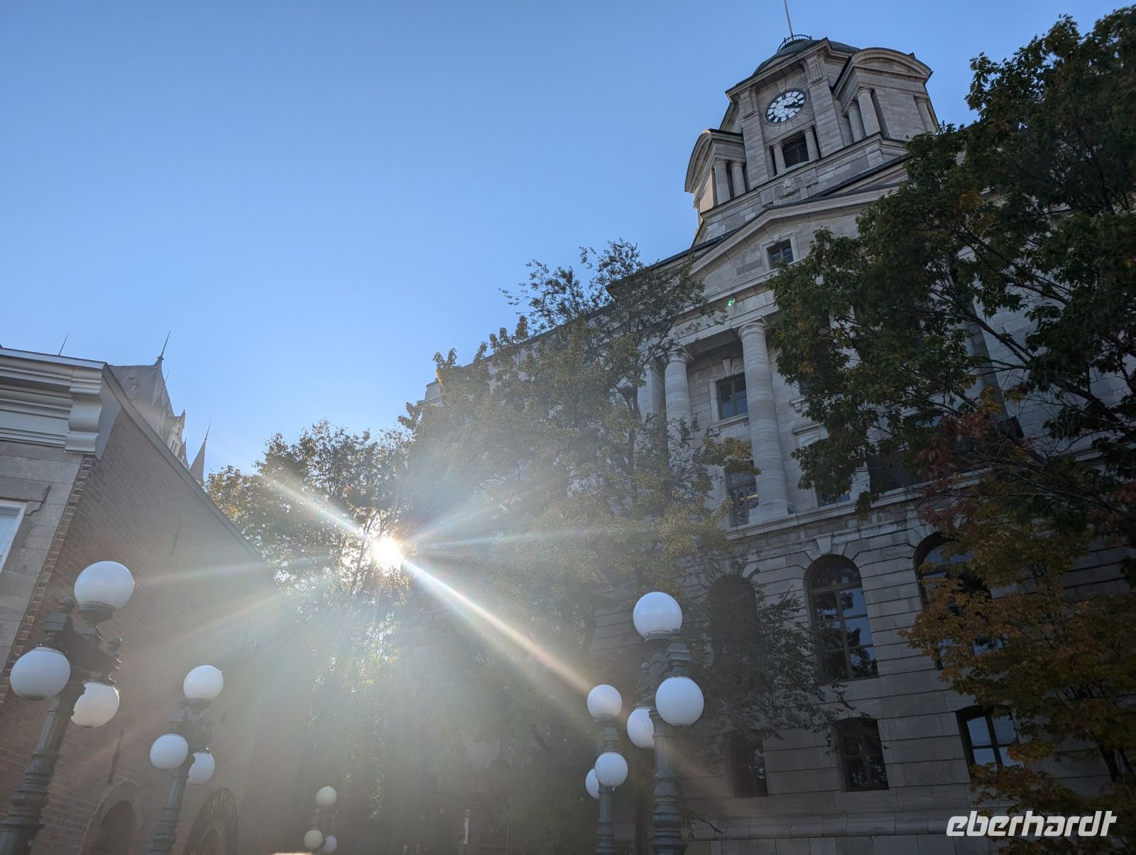 Der Tag begann mit einem wunderschönen Sonnenaufgang, der uns bereits aus dem Hotelfenster begrüßte. Für unsere Stadtbesichtigung von Montréal bekamen wir heute tatkräftige Unterstützung von Bettina, einer lokalen Reiseleiterin, die uns durch die wichtigsten Sehenswürdigkeiten der Stadt führte.