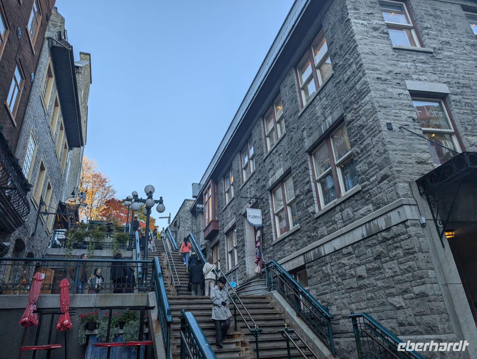 Endlich erreichen wir Quebec, und wir können das Gerücht bestätigen: Es ist wirklich die schönste Stadt, die wir auf unserer Reise besucht haben. Kleine malerische Gassen, das imposante schlossartige Hotel Château Frontenac und der atemberaubende Blick auf den Sankt-Lorenz-Strom – Quebec begeistert uns alle. Mit Marina, die aus Quebec stammt, entdecken wir die Stadt auf besondere Weise. Bei strahlendem Sonnenschein schlendern wir durch die Straßen und genießen die Atmosphäre.