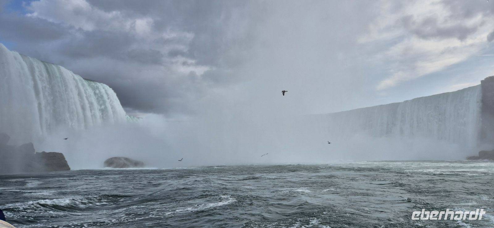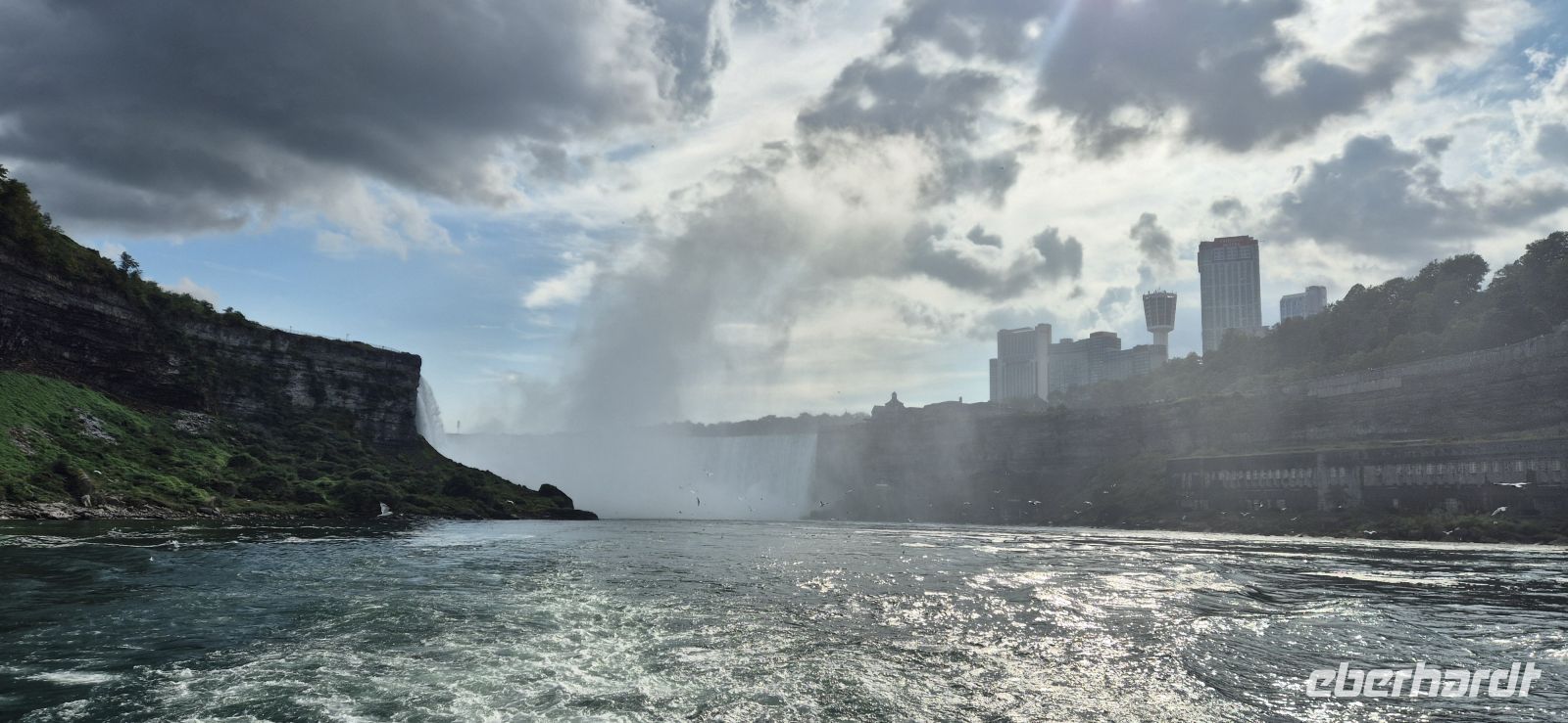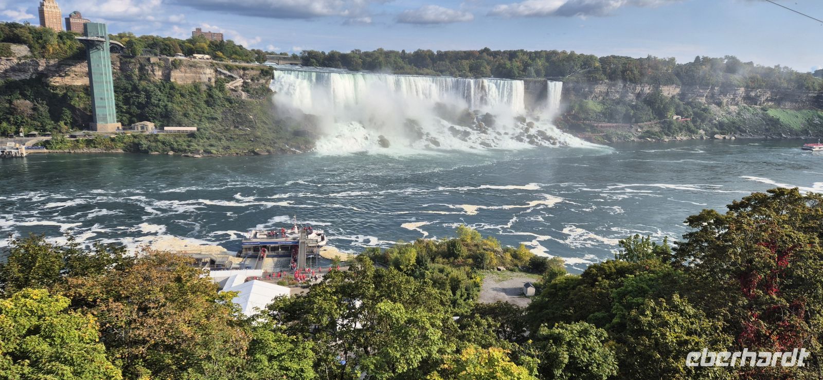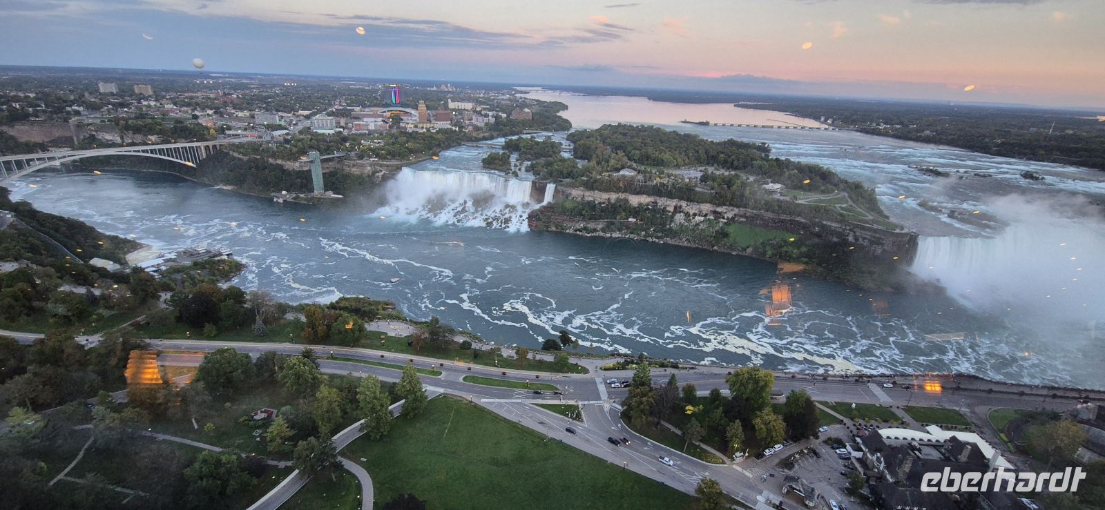 Bedingt durch sechs Stunden Zeitverschiebung sind wir alle schon in aller Frühe hellwach und starten als eine der ersten mit einem ausgedehnten Frühstück am üppigen Buffet des Chelsea Hotels. So gestärkt sind wir nun bereit, die Stadt am Ontariosee näher kennenzulernen. Toronto empfängt uns zwar mit grauen Wolken, doch die Stadt hat einiges zu erzählen. Bei einer orientierenden Rundfahrt erfahren wir, dass hier im Jahr 1904 ein verheerendes Feuer wütete, das weite Teile der damaligen Innenstadt zerstörte. Der schnelle Wiederaufbau prägt bis heute das Bild – nur wenige historische Gebäude blieben erhalten. Heute ist Toronto mit fast drei Millionen Einwohnern die größte Stadt Kanadas und gleichzeitig eine bedeutende Bildungsmetropole: Sechs Universitäten mit zusammen rund 68.000 Studierenden prägen das Stadtbild, und während unserer Fahrt durchqueren wir einen dieser riesigen Campus. Vorbei am Royal Ontario Museum und an der Art Gallery of Ontario rollen wir durch den Krankenhausbezirk und hinein nach Chinatown. Hier spüren wir die kulturelle Vielfalt Torontos besonders deutlich. Viele Familien haben ihre Wurzeln in den Einwanderungswellen des 19. Jahrhunderts, als chinesische Arbeiter für den Bau der transkontinentalen Eisenbahn ins Land kamen. Das erste große Highlight lässt nicht lange auf sich warten: der CN Tower, Wahrzeichen der Stadt und bis 2009 das höchste frei stehende Bauwerk der westlichen Hemisphäre. Mit 553 Metern Höhe überragt er das gesamte Stadtzentrum. Wir rauschen im Glasaufzug in nur 58 Sekunden auf 342 Meter Höhe. Von dort oben eröffnet sich normalerweise ein atemberaubender 360°-Panoramablick – heute jedoch etwas eingeschränkt, dennoch erhaschen wir einen Blick auf die unter uns liegende Millionenmetropole. Wir lassen Toronto hinter uns und steuern unser nächstes Ziel an: die weltberühmten Niagara-Fälle, die rund 130 Kilometer entfernt liegen. Der Name „Niagara“ stammt aus der Sprache der indigenen Völker und bedeutet „donnerndes Wasser“. Schon bald verstehen wir, warum. Zunächst sind wir jedoch für einen Helikopterflug geplant, der uns die Wasserfälle aus der Vogelperspektive zeigen wird. In knapp 10 Minuten Flug bekommt man einen wunderschönen Eindruck, wie sich dieses Naturschauspiel aus luftiger Höhe anfühlt-einfach grandios. Begeisterte Gäste kehren zurück und möchten dieses Erlebnis nicht missen. Nun wechseln wir die Perspektive und wagen uns mit einem Boot auf den Niagara River hinaus. Einheitlich in rote Regencapes gehüllt, fahren wir direkt an die tosenden „Hufeisenfälle“ heran – das kanadische Pendant zu den amerikanischen Fällen. Gischt sprüht über uns hinweg, der Lärm ist ohrenbetäubend und die Szenerie überwältigend. Das Schiff ist gut gefüllt, dennoch haben wir reichlich Platz, um dieses Naturschauspiel in vollen Zügen zu genießen. Nach dieser feuchtfröhlichen Begegnung mit den Wassermassen bleibt Zeit für einen Spaziergang entlang der Promenade, die beide Fälle miteinander verbindet. Am Abend erwartet uns dann ein weiterer Höhepunkt: ein Dinner im Skylon Tower. Der 1964 eröffnete Turm ist 160 Meter hoch und beherbergt ein Drehrestaurant, von dem aus wir während des Essens einen faszinierenden Blick auf die Fälle haben. Als die Dunkelheit hereinbricht, taucht eine farbenfrohe Illumination die Wassermassen in wechselnde Lichter – ein eindrucksvolles Finale für unseren ersten Reisetag, welches die meisten von uns noch zu Fuß erkunden. Satt, erfüllt und mit vielen neuen Eindrücken kehren wir in unser Hotel zurück und lassen uns zu einer erholsamen Nacht in der Niagara-Region nieder. Bevor wir in den wohlverdienten Schlaf fallen, werden wir noch mit einem schönen Feuerwerk über den Wasserfällen beglückt.