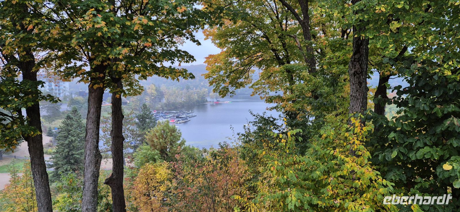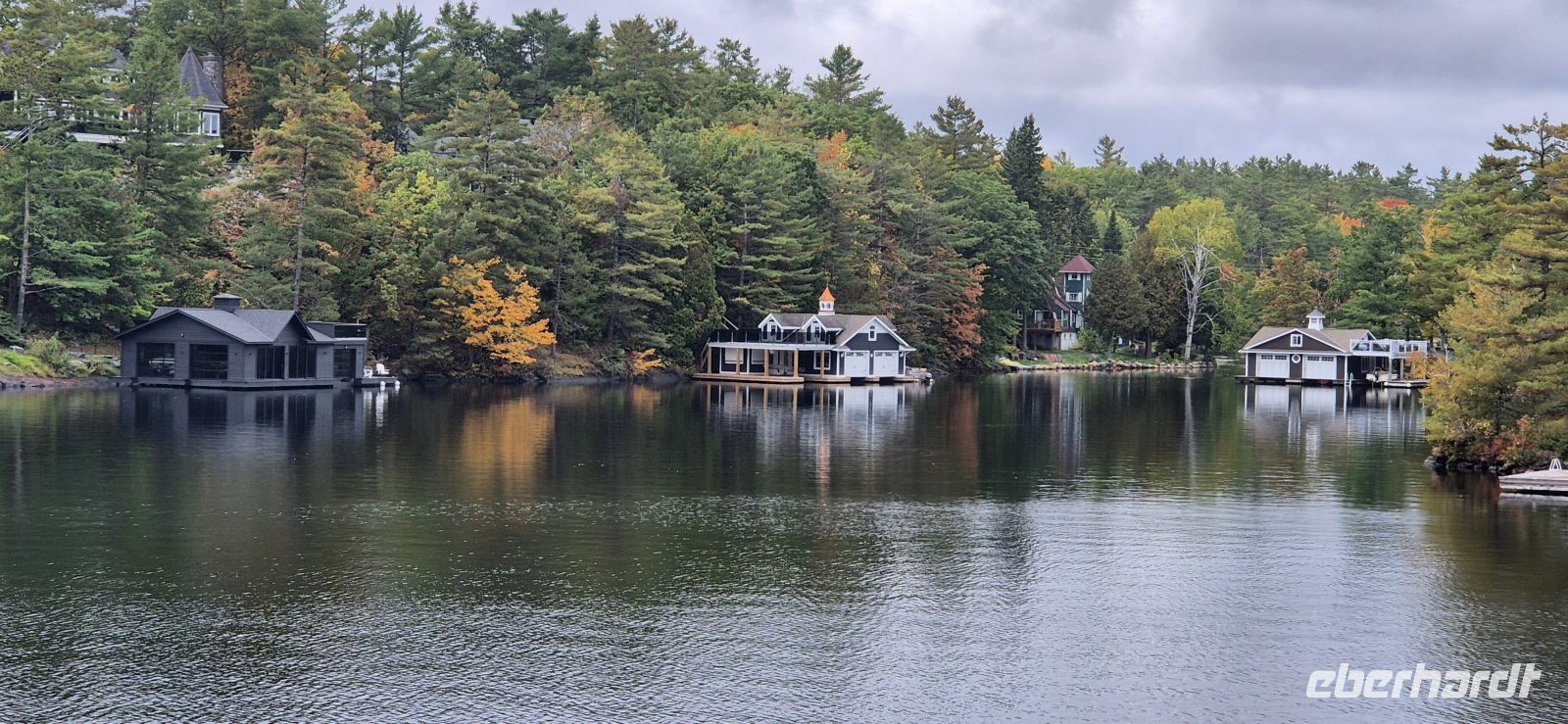Die ersten Sonnenstrahlen blinzeln durch unsere Fenster, während draußen ein feiner Nebel über den Bäumen liegt. Beim Frühstück lassen wir uns Zeit, probieren uns durch das vielfältige Buffet und genießen den Blick ins Grüne – gestärkt und voller Vorfreude geht es hinaus ins Abenteuer. Unser Weg führt uns zunächst Richtung Hardy Lake. Unterwegs lacht die Sonne, doch kaum am Ausgangspunkt angekommen, mischt sich Regen ins Spiel. Zwei Stunden wandern wir über wurzelige Pfade und schmale Stege, am Hardy Lake entlang. Der See liegt still zwischen den Bäumen und bietet immer wieder schöne Fotomotive, die sicherlich bei Sonnenschein noch viel besser zur Geltung kämen. Am Mittag wartet in Gravenhurst ein Stück kanadische Geschichte auf uns: die RMS Segwun. Das stolze Dampfschiff, 1887 erbaut, zählt zu den ältesten noch aktiven seiner Art in Nordamerika. Gemächlich gleitet es über den Muskoka Lake, dessen Region mit mehr als 1600 Seen ein wahres Paradies für Outdoor-Fans ist. Vom Deck aus sehen wir winzige Inseln mit urigen Holzhäusern, herbstlich leuchtende Wälder und stille Buchten, die aussehen, als würden sie Geschichten bewahren. Die Fahrt vergeht wie im Nu – eineinhalb Stunden voller Eindrücke, begleitet von Gesprächen, Gelächter und dem beruhigenden Tuckern der Maschine. Wieder an Land lassen wir im Deerhurst Resort den Nachmittag locker ausklingen, bevor wir am Abend nach Huntsville aufbrechen. Dort finden wir kleine Restaurants, sodass jeder etwas Schmackhaftes finden kann. Hier beenden wir den Tag bei einem individuellen Abendessen, das so vielfältig ist wie unsere heutigen Erlebnisse.