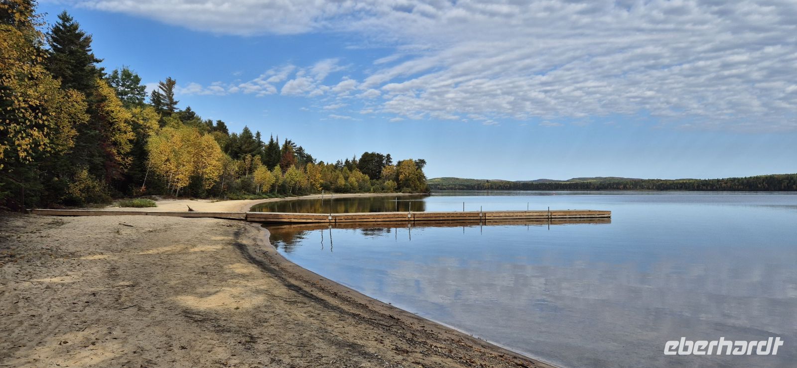 Schon früh am Morgen erwachen wir am Ufer des Sees, wo die Sonne golden über dem Wasser schimmert und das klare Herbstlicht die Landschaft zum Leuchten bringt. Nach einem ausgiebigen Frühstück voller regionaler Köstlichkeiten brechen wir zu unserer gemeinsamen Wanderung auf, der sich alle Gäste anschließen. Der Rundweg, etwa sechs Kilometer lang, führt uns zunächst direkt am See entlang. Immer wieder öffnen sich kleine Buchten, das Wasser glitzert im Sonnenschein, und die Wälder ringsum leuchten in warmen Rot- und Goldtönen. Wir nehmen uns Zeit, diese besondere Stimmung aufzusaugen, atmen tief durch und lassen die Stille Kanadas auf uns wirken. Zur Halbzeit führt der Weg sanft durch den Wald zurück. Zwischen den schlanken weißen Birken blitzen immer wieder Pilze am Wegesrand auf, und der federnde Boden macht das Gehen angenehm. Die Strecke ist leicht zu bewältigen und so manche Moskito links und rechts von uns lässt uns dann doch einen Schritt schneller gehen. Zurück an unserer Auberge wartet schon eine Überraschung: Unsere Gäste sind eingeladen zu einem kleinen Picknick direkt am hauseigenen Strand des Lac Taureau. Gemeinsam stoßen wir an, probieren kanadisches Bier und ausgesuchte Weine und genießen in fröhlicher Runde herzhafte Snacks. Die Stimmung ist heiter, das Wasser plätschert neben uns, so mancher stürzt sich in die Fluten und wird von uns mit tosendem Applaus gefeiert. Am Nachmittag entscheidet jeder nach Lust und Laune, wie es weitergeht: Einige tauchen in den beheizten Außenpool ein, andere erkunden noch einmal die Umgebung zu Fuß oder genießen einfach das traumhafte Wetter am Seeufer. Den Abend krönen wir mit einem letzten festlichen Dinner in gemütlicher Atmosphäre. Bei gutem Essen und vielen lachenden Gesichtern blicken wir gemeinsam auf diesen herrlichen Tag zurück. Der Aufenthalt hier schenkt uns Ruhe, Erholung und die Möglichkeit, die vielen Eindrücke der vergangenen Tage in aller Gelassenheit wirken zu lassen.