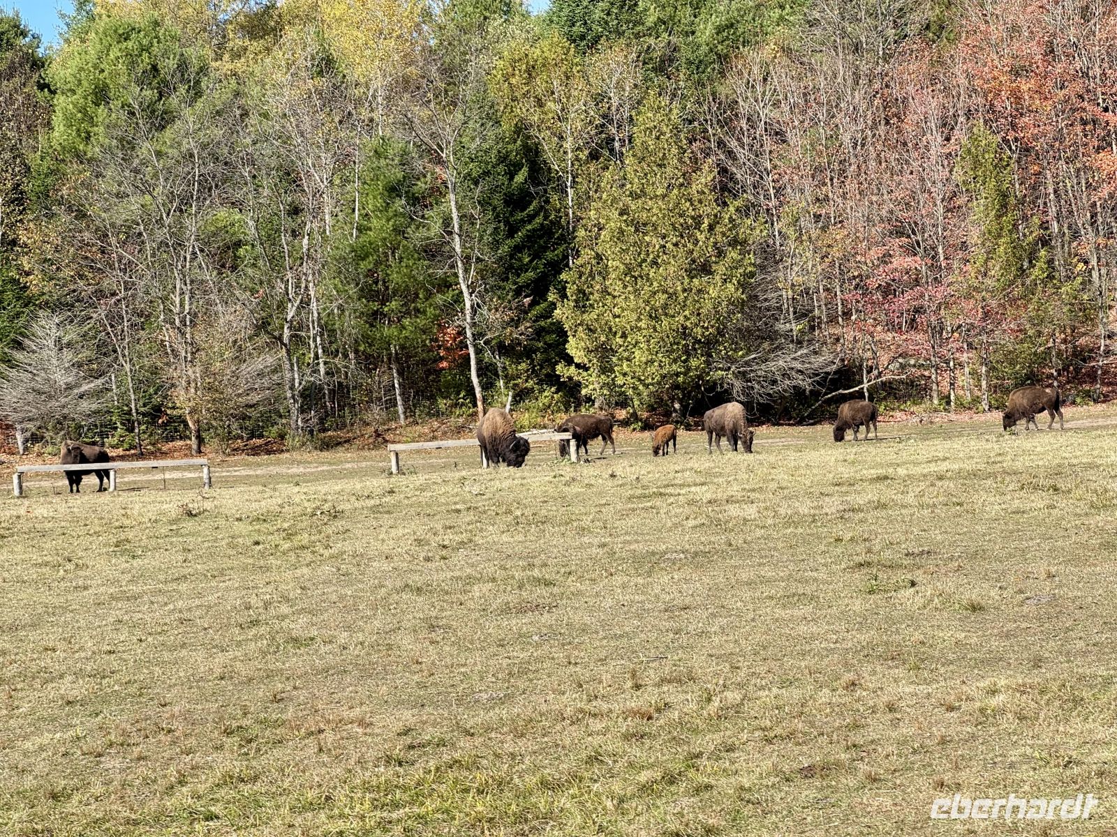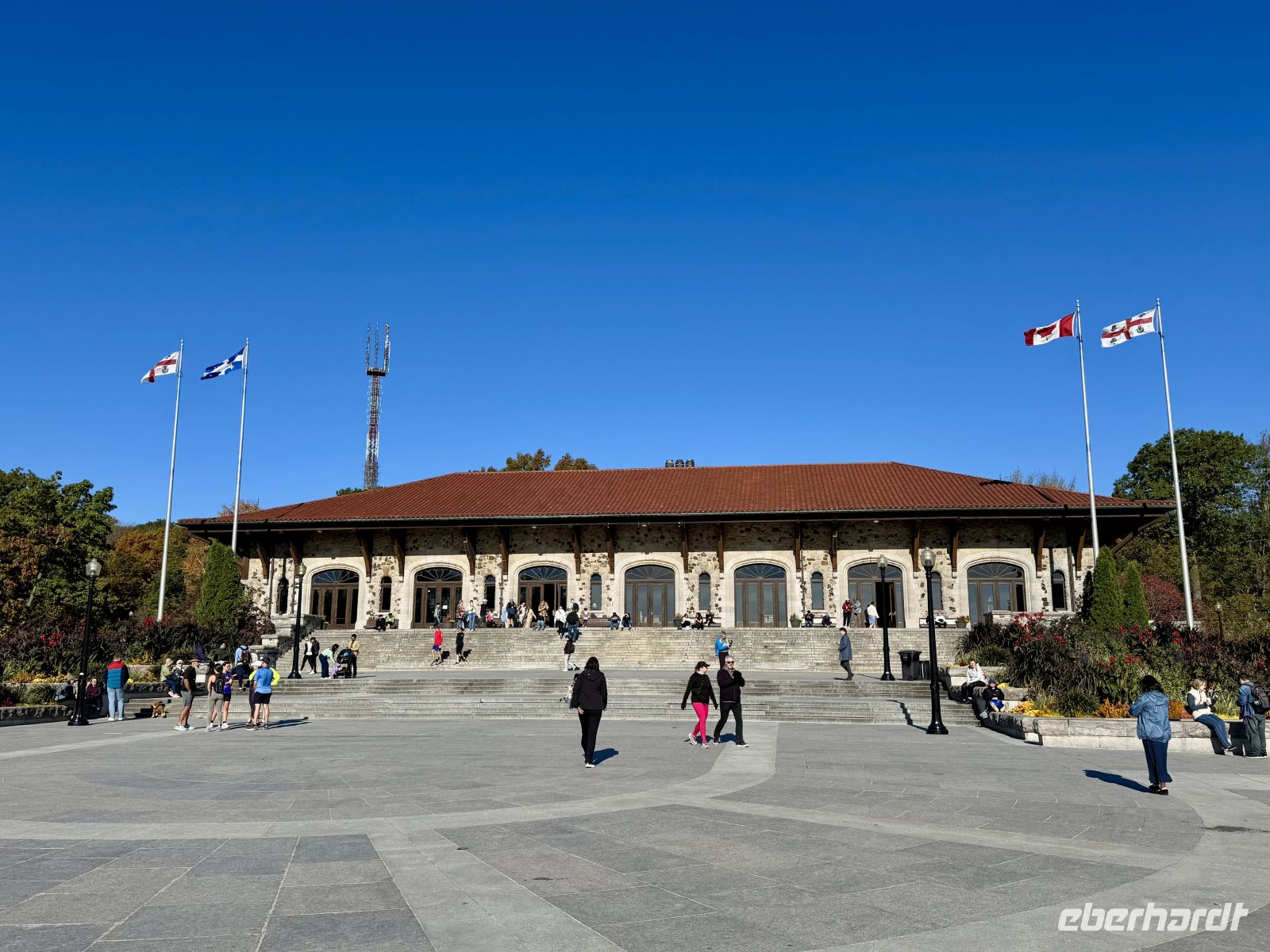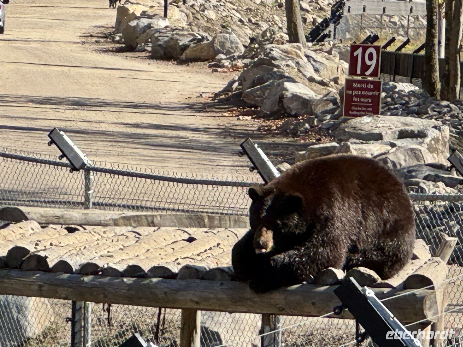 Wir beginnen den sechsten Tag mit einem Morgenspaziergang auf dem Anwesen der Generalgouverneurin und können sogar bis zur Haustür gehen und an der Rideau Hall anklopfen. Beim Schloss Bellevue wäre das nicht so einfach möglich. In Kanada steht der Park hingegen allen offen, sogar Eichhörnchen und wilden Truthähnen. Unser nächster planmäßiger Stopp ist der Omega-Wildpark bei Montebello — womit wir wieder in der Provinz Québec wären. Bonjour! Da heute der erste Tag des langen Thanksgiving-Wochenendes und außerdem richtig schönes Wetter ist, zieht es auch viele einheimische Familien in den Park. Die Tiere freuen sich über die Aufmerksamkeit und die vielen Karotten, vor allem die Wapitis und anderen Hirsche. Wir sitzen in einem ehemaligen Schulbus und werden von Dominic durch den Wildpark chauffiert. Elegant manövriert er uns durch die Schlangen aus Blechtieren. Während sich die Elche im Schatten verstecken und schwer auszumachen sind, tummeln sich die Bisons in der Sonne nahe der Fahrtroute. Nach einer kleinen Pause warten die Schwarz- und Zimtbären als Höhepunkt der Tour auf uns. Ein paar kleine Bären, im Frühjahr geboren, sind auch dabei. Aus Karotten machen sich aber sowohl die großen als auch die kleinen Fellknäuel nichts. Nach etwas mehr als zwei Stunden erreichen wir wieder das Besucherzentrum und müssen uns schon wieder von Dominic verabschieden. Im Café finden auch wir nach einem kurzen Kampf mit den Bestellautomaten etwas zu essen, obwohl heute auch noch einige Karotten übrig gewesen wären. Am Nachmittag fahren wir — auf Wunsch musikalisch begleitet von Céline Dion — bis nach Montréal. Bei unserer Ankunft wartet gleich ein typisches Erlebnis auf meine Gäste: Wir stehen im Stau. Baustellen und viel Verkehr sind die Markenzeichen der zweitgrößten Stadt Kanadas. Der Verkehr verhindert dann leider auch, dass wir heute noch auf den Mont Royal fahren können. Notgedrungen brechen wir die Anfahrt ab und fahren zum Hyatt Hotel, das frisch renoviert wurde und günstig gelegen ist. Als Abendprogramm hatte ich meinen Gästen schon im Vorfeld die AURA-Show in der Basilika Notre-Dame empfohlen. Entweder zu Fuß oder per U-Bahn begeben wir uns daher am Abend in die belebte Altstadt von Montréal — und treffen unterwegs auf Einheimische, die in Trachtenkleidung zu einem Oktoberfest unterwegs sind. Bayern exportiert nicht nur Autos, sondern auch erfolgreich seine Kultur in die Welt!