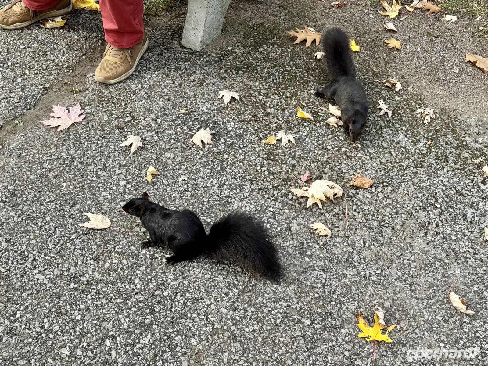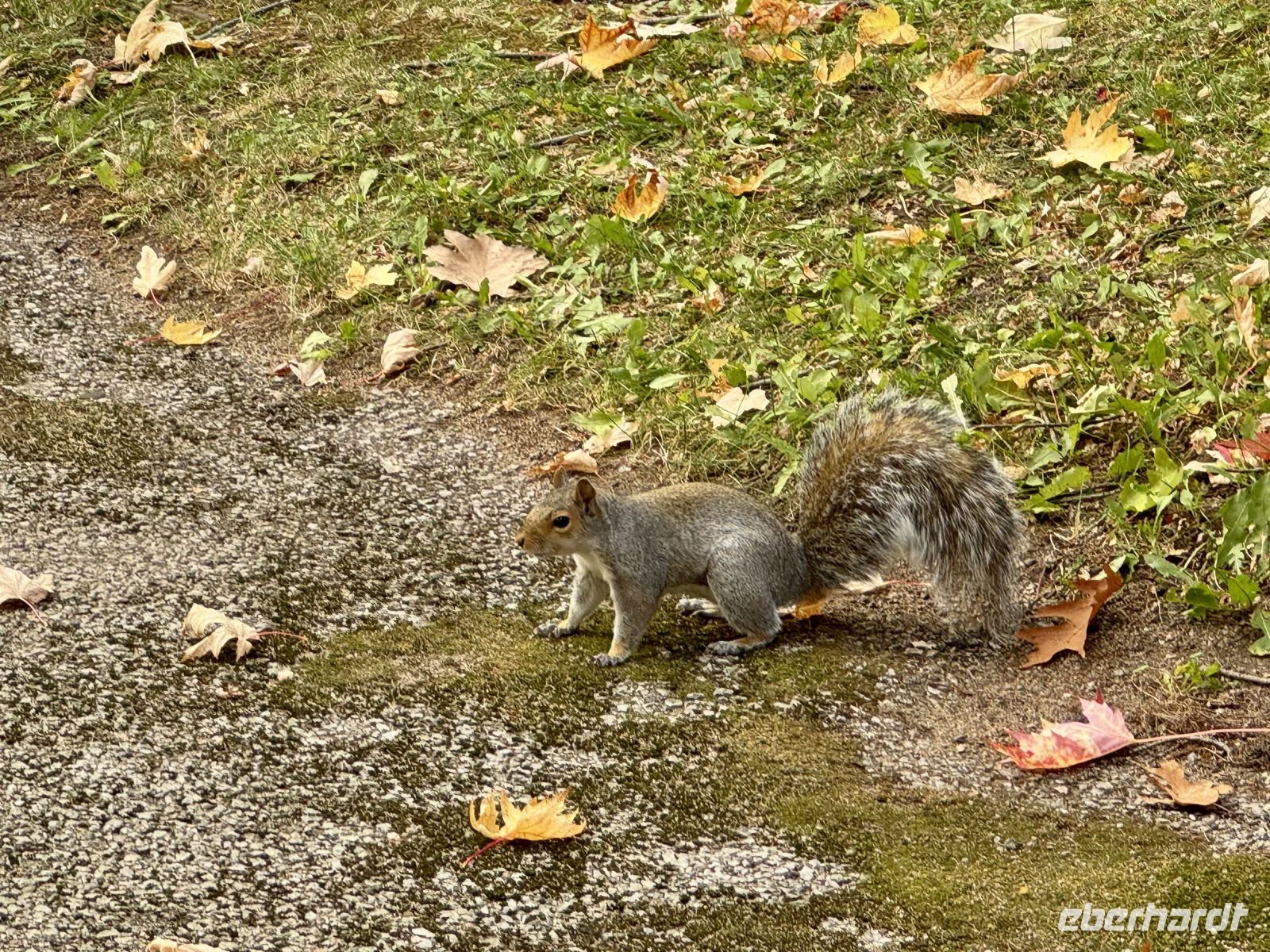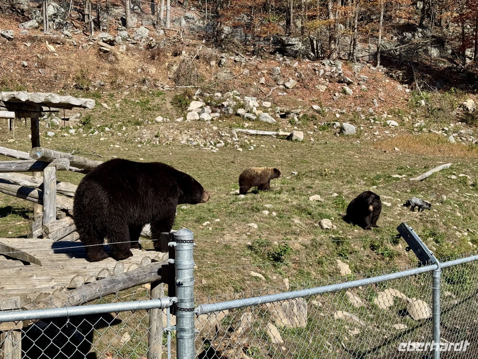 Wir beginnen den sechsten Tag mit einem Morgenspaziergang auf dem Anwesen der Generalgouverneurin und können sogar bis zur Haustür gehen und an der Rideau Hall anklopfen. Beim Schloss Bellevue wäre das nicht so einfach möglich. In Kanada steht der Park hingegen allen offen, sogar Eichhörnchen und wilden Truthähnen. Unser nächster planmäßiger Stopp ist der Omega-Wildpark bei Montebello — womit wir wieder in der Provinz Québec wären. Bonjour! Da heute der erste Tag des langen Thanksgiving-Wochenendes und außerdem richtig schönes Wetter ist, zieht es auch viele einheimische Familien in den Park. Die Tiere freuen sich über die Aufmerksamkeit und die vielen Karotten, vor allem die Wapitis und anderen Hirsche. Wir sitzen in einem ehemaligen Schulbus und werden von Dominic durch den Wildpark chauffiert. Elegant manövriert er uns durch die Schlangen aus Blechtieren. Während sich die Elche im Schatten verstecken und schwer auszumachen sind, tummeln sich die Bisons in der Sonne nahe der Fahrtroute. Nach einer kleinen Pause warten die Schwarz- und Zimtbären als Höhepunkt der Tour auf uns. Ein paar kleine Bären, im Frühjahr geboren, sind auch dabei. Aus Karotten machen sich aber sowohl die großen als auch die kleinen Fellknäuel nichts. Nach etwas mehr als zwei Stunden erreichen wir wieder das Besucherzentrum und müssen uns schon wieder von Dominic verabschieden. Im Café finden auch wir nach einem kurzen Kampf mit den Bestellautomaten etwas zu essen, obwohl heute auch noch einige Karotten übrig gewesen wären. Am Nachmittag fahren wir — auf Wunsch musikalisch begleitet von Céline Dion — bis nach Montréal. Bei unserer Ankunft wartet gleich ein typisches Erlebnis auf meine Gäste: Wir stehen im Stau. Baustellen und viel Verkehr sind die Markenzeichen der zweitgrößten Stadt Kanadas. Der Verkehr verhindert dann leider auch, dass wir heute noch auf den Mont Royal fahren können. Notgedrungen brechen wir die Anfahrt ab und fahren zum Hyatt Hotel, das frisch renoviert wurde und günstig gelegen ist. Als Abendprogramm hatte ich meinen Gästen schon im Vorfeld die AURA-Show in der Basilika Notre-Dame empfohlen. Entweder zu Fuß oder per U-Bahn begeben wir uns daher am Abend in die belebte Altstadt von Montréal — und treffen unterwegs auf Einheimische, die in Trachtenkleidung zu einem Oktoberfest unterwegs sind. Bayern exportiert nicht nur Autos, sondern auch erfolgreich seine Kultur in die Welt!