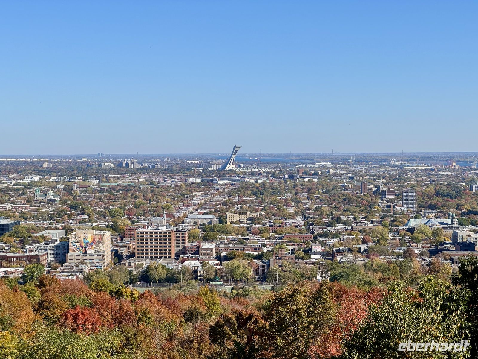 Ein weiterer sonniger Tag erwartet uns auf dieser schönen Reise. Schon der Blick aus dem Hotelfenster am Morgen sorgt für gute Laune: blauer Himmel und Sicht bis zum Mont Royal. Und da fahren wir auch gleich hin und holen somit den Programmpunkt nach, den wir gestern aufgrund des Verkehrs nicht durchführen konnten. Doch zuallererst müssen wir meine gute Freundin Bettina begrüßen, die ich nun schon viele Jahre kenne. Ihr Herkunftsland – die wunderschöne Schweiz – können wir am Akzent schnell erraten. Sie möchte uns heute ihre Wahlheimat Montréal vorstellen. Wir beginnen also mit der Fahrt auf den „Berg“ und spazieren dort zum Aussichtspunkt. Im zweiten Anlauf klappt auch tatsächlich alles problemlos. Das soll allerdings nicht heißen, dass wir dort oben am Aussichtspunkt die einzigen Besucher sind. Viele Einheimische joggen (!) tatsächlich am Sonntagmorgen (!) freiwillig (!) auf den Mont Royal. Bewundernswert. Meine Selbstdisziplin versagt hingegen schon jeden Morgen am Frühstücksbuffet, wenn mir aus Versehen ein Pain au Chocolat auf den Teller hüpft. Manchmal sogar zwei. Aber zurück zum Berg. Der zweite Aussichtspunkt muss nicht erlaufen werden, sondern gewährt uns gleich vom Parkplatz aus den Blick in Richtung Osten zum Olympiastadion. Von ganz oben geht es nun ganz nach unten: in die berühmte Unterstadt von Montréal, ein Labyrinth aus Tunneln, Geschäften und U-Bahn-Stationen. Wir steigen über das Eaton Centre von Montréal ein und beenden den Abstecher unter der Christ Church Cathedral, einer Kirche, die jetzt über einem Einkaufszentrum auf Stelzen steht. Die große Insel ist wirklich durchlöchert wie ein Schweizer Käse. Und der Aushub liegt im Fluss und bildet nun die kleine Insel mit der Formel-1-Rennstrecke. Darauf hat sich Jim schon den ganzen Tag gefreut! Endlich kann er zeigen, was er draufhat! Er beschleunigt so schnell er kann … und muss dann gleich wieder an einem Stoppschild anhalten. Und außerdem gilt Tempo 30. Sogar die Radler auf ihren Rennrädern sind schneller als wir. Zweiter Versuch nächsten Sommer beim Grand Prix? Unsere Stadtrundfahrt mit Bettina endet auf der Place d’Armes in der historischen Altstadt. Vor der Basilika Notre-Dame verabschieden wir uns von unserer charmanten Exil-Schweizerin. Als Gruppe können wir uns elegant an der langen Schlange vorbeimogeln, um in die Basilika zu gelangen. Sie ist wirklich sehr schön gestaltet, fast märchenhaft, und lädt zum Staunen und Träumen ein. Wir haben noch ein bisschen Freizeit in der Altstadt – genug für eine Mittagspause. Und bevor wir Montréal endgültig verlassen, machen wir auch noch einen Fotostopp am berühmten Olympiastadion. Zwei große Städte hintereinander bedeuten aber auch einen gewissen Erholungsbedarf in der Natur, weshalb Eberhardt für uns einen zweitägigen Aufenthalt am Lac Taureau eingeplant hat. Ein Einkaufsstopp auf dem Weg in Joliette dient der Vorbereitung unseres morgigen Picknicks. Dann geht es weiter durch kleine Dörfer, schöne Täler und eine herrliche Herbstlandschaft, bis wir unsere Auberge am See in der Einsamkeit der Natur erreicht haben.