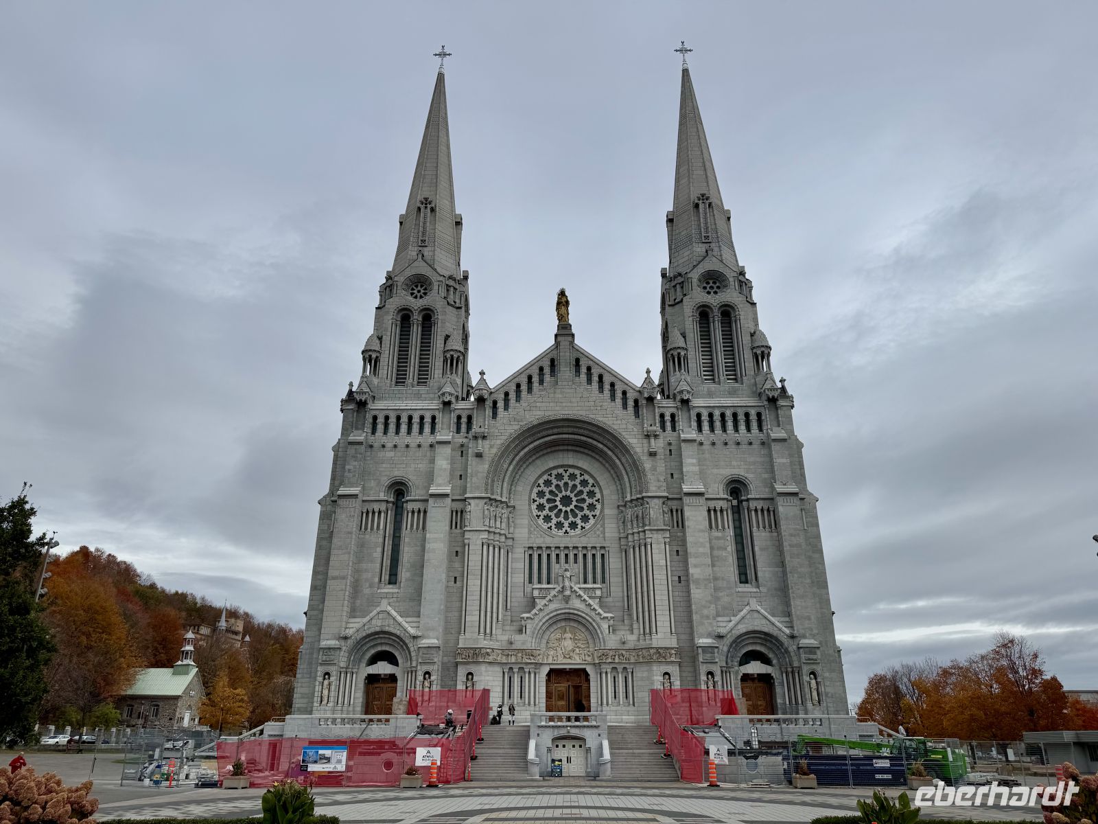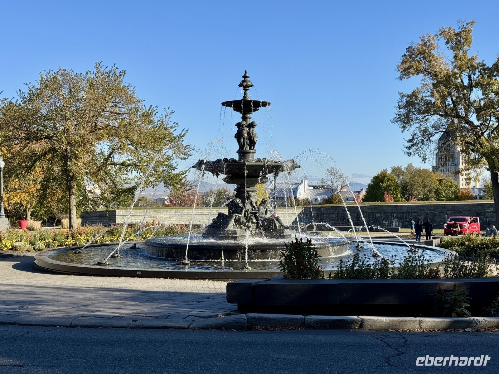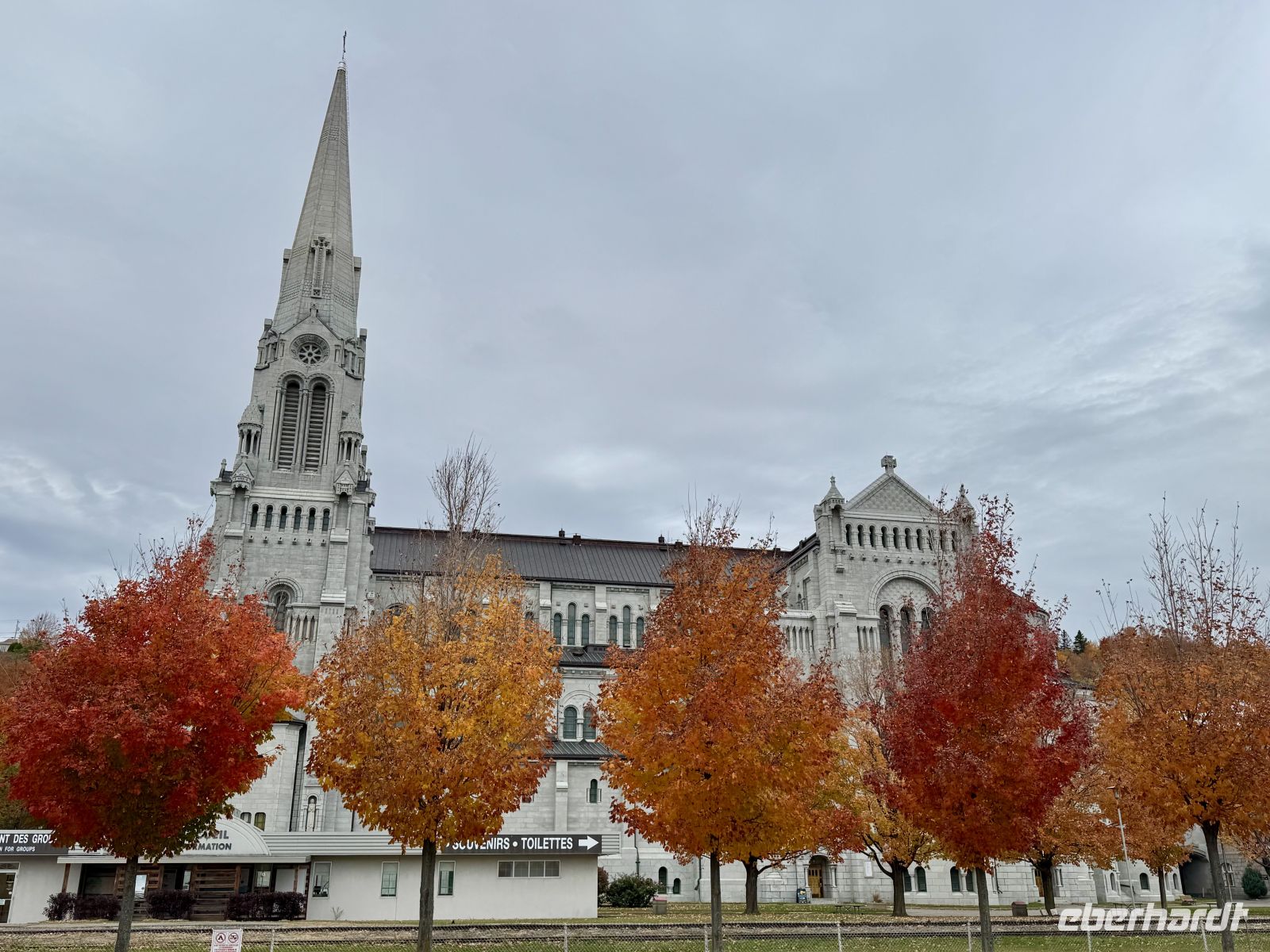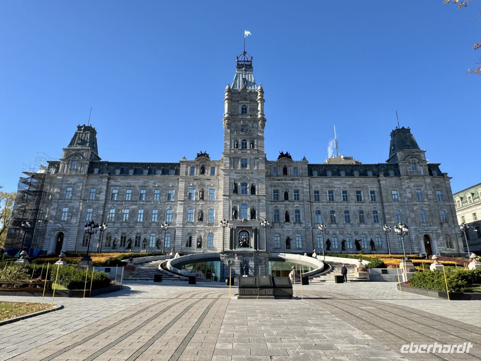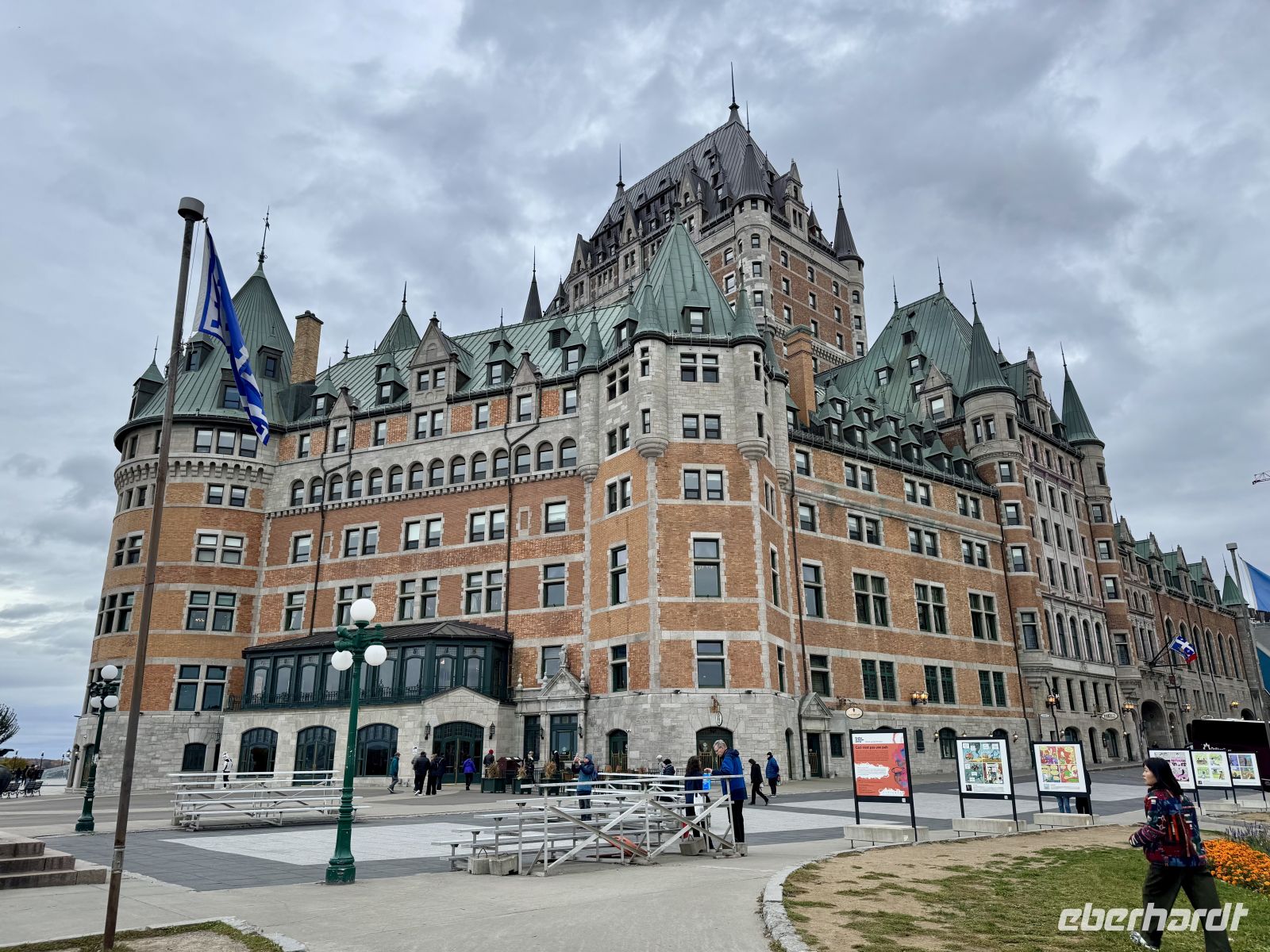 Mit Québec wartet heute das letzte große Ziel dieser Reise auf uns. Die älteste Stadt Kanadas haben wir uns mit Absicht bis zum Schluss aufgehoben. Durch den Charlevoix-Krater fahren wir also am Morgen zurück in Richtung Westen. Diesmal nehmen wir allerdings die Route entlang des Sankt-Lorenz-Stroms. Es ist ein bisschen wie eine Achterbahnfahrt, nur deutlich langsamer. Kurz nach 10 Uhr haben wir dann den Canyon Sainte-Anne erreicht. Hier erwartet uns ein schöner Spaziergang zum Wasserfall sowie eine Zipline, von der meine Gäste reichlich Gebrauch machen. Auch die benachbarte Basilika in Beaupré ist der Heiligen Anna geweiht. Ein beeindruckender Bau, der nächstes Jahr sein 100-jähriges Jubiläum feiert. Die Mosaike an der Decke erzählen die Lebens- und Leidensgeschichte der Mutter von Maria. Für viele Katholiken weltweit ist die Kirche ein wichtiger Wallfahrtsort. Und damit leite ich fließend über zur Stadt Québec, denn die ist wiederum als älteste Stadt Kanadas und UNESCO-Weltkulturerbe ein Pilgerort für unzählige Touristen aus der ganzen Welt — völlig zu Recht. Auch wir erliegen sofort dem Charme der alten Häuser und engen Gassen in der unteren Altstadt, blicken ehrfürchtig zum Château Frontenac hinauf. Und das, obwohl wir zunächst nur Freizeit und Mittagspause haben, und die eigentliche Stadtrundfahrt mit Nadia am Nachmittag noch vor uns liegt. Glücklicherweise liegt nur ein kleineres Kreuzfahrtschiff im Hafen und es ist vergleichsweise wenig los. Auf der anderen Seite ist es schade, dass der Sonne ausgerechnet heute vorübergehend die Kraft ausgeht. Es ist zwar trocken, aber bewölkt. Aber wir wollen uns nicht zu sehr beschweren, denn insgesamt hatten wir ja großes Glück mit dem Wetter. Auch mit Nadia arbeite ich schon viele Jahre zusammen. Die gebürtige Moskauerin ist mit einem Franzosen verheiratet und lebt auch schon fast 20 Jahre in Québec. Trotz ihrer Herkunft haben sie die Winter in Kanada überrascht. Ein Kapitel, das immer wieder zur Sprache kommt, während wir mit ihr von der Batterie Royale zum Sonnenkönig ziehen, daneben das riesige Fresko bewundern und einen Abstecher in die Rue du Petit-Champlain wagen. Den Aufstieg in die Oberstadt über die Halsbrechertreppe erspart uns Nadia freundlicherweise. Ich rufe Jim herbei und wir fahren mit dem Bus zum sehr eleganten Parlamentsgebäude knapp außerhalb der Stadtmauer. Am majestätischen Eisenbahnhotel gewährt uns die Stadtverwaltung nur 10 Minuten Halt, was immerhin für ein paar Fotos reicht. Schließlich zeigt uns Nadia noch die Plains of Abraham, das zum riesigen Stadtpark umgewidmete Schlachtfeld. Unser Hotel liegt quasi direkt daneben an der Grande Allée, weshalb auch die Altstadt zu Fuß gut zu erreichen ist. Wer möchte, kann also vor dem Abschiedsabendessen z. B. noch einen Spaziergang zum Château Frontenac unternehmen. Auch unser Restaurant liegt in der oberen Altstadt, im Herzen von Québec. Auch heute bekommen wir wieder vier Gänge serviert, sodass wir mit den gefüllten Windbeuteln zum Dessert ganz schön zu kämpfen haben. Aber es wäre schade um die ganze Schokoladensoße … Wer nun noch Muße hat, dem empfehle ich einen Abstecher zur beleuchteten Halloween-Dekoration am Rathaus und zum Fairmont-Hotel. Den Großteil der Gruppe begleite ich aber zum Hotel zurück, denn es ist spät und auch ganz schön kalt geworden. Winter is coming.