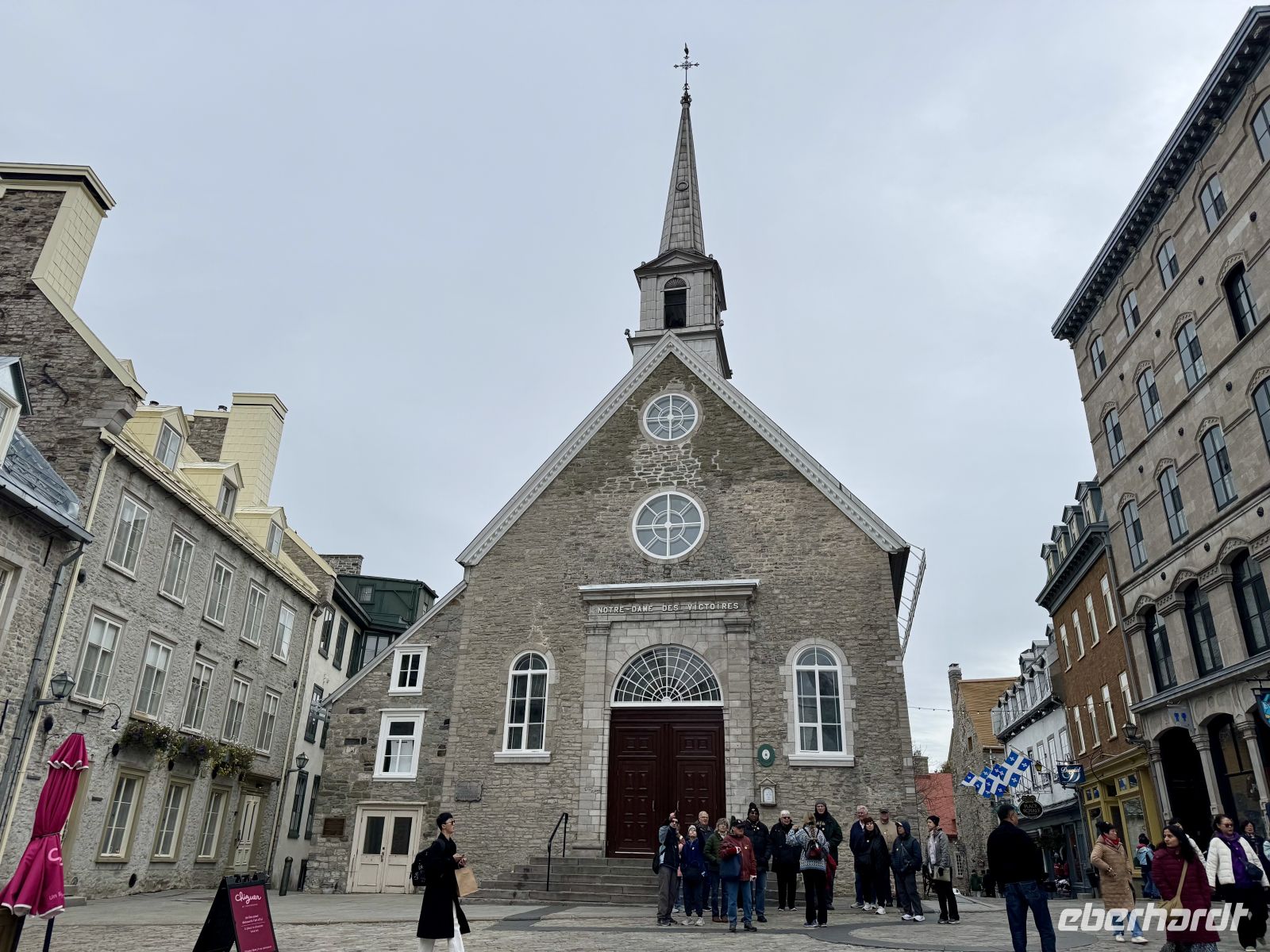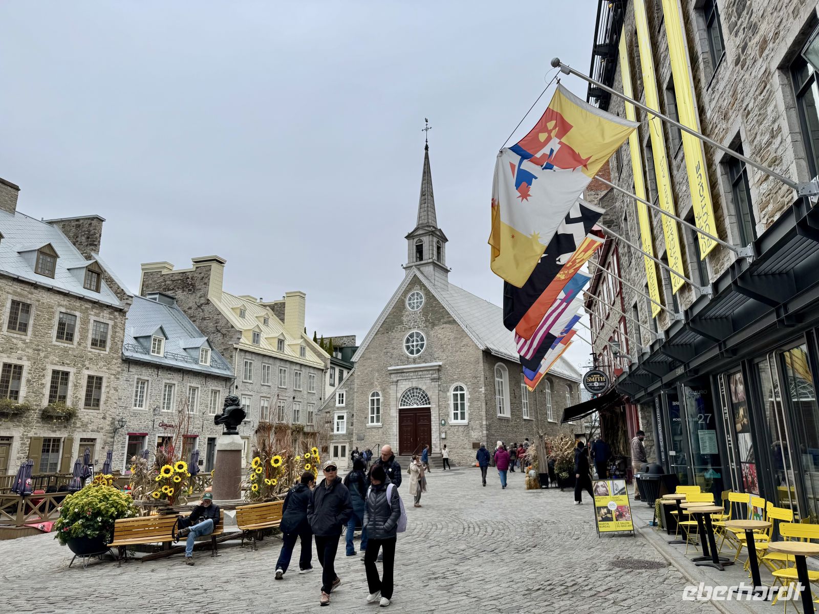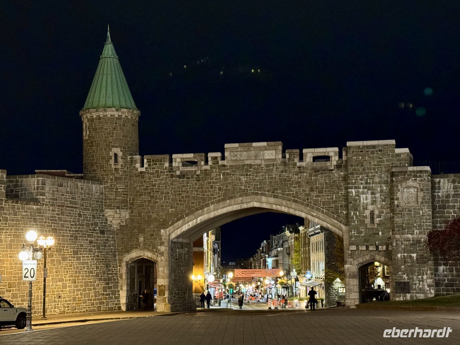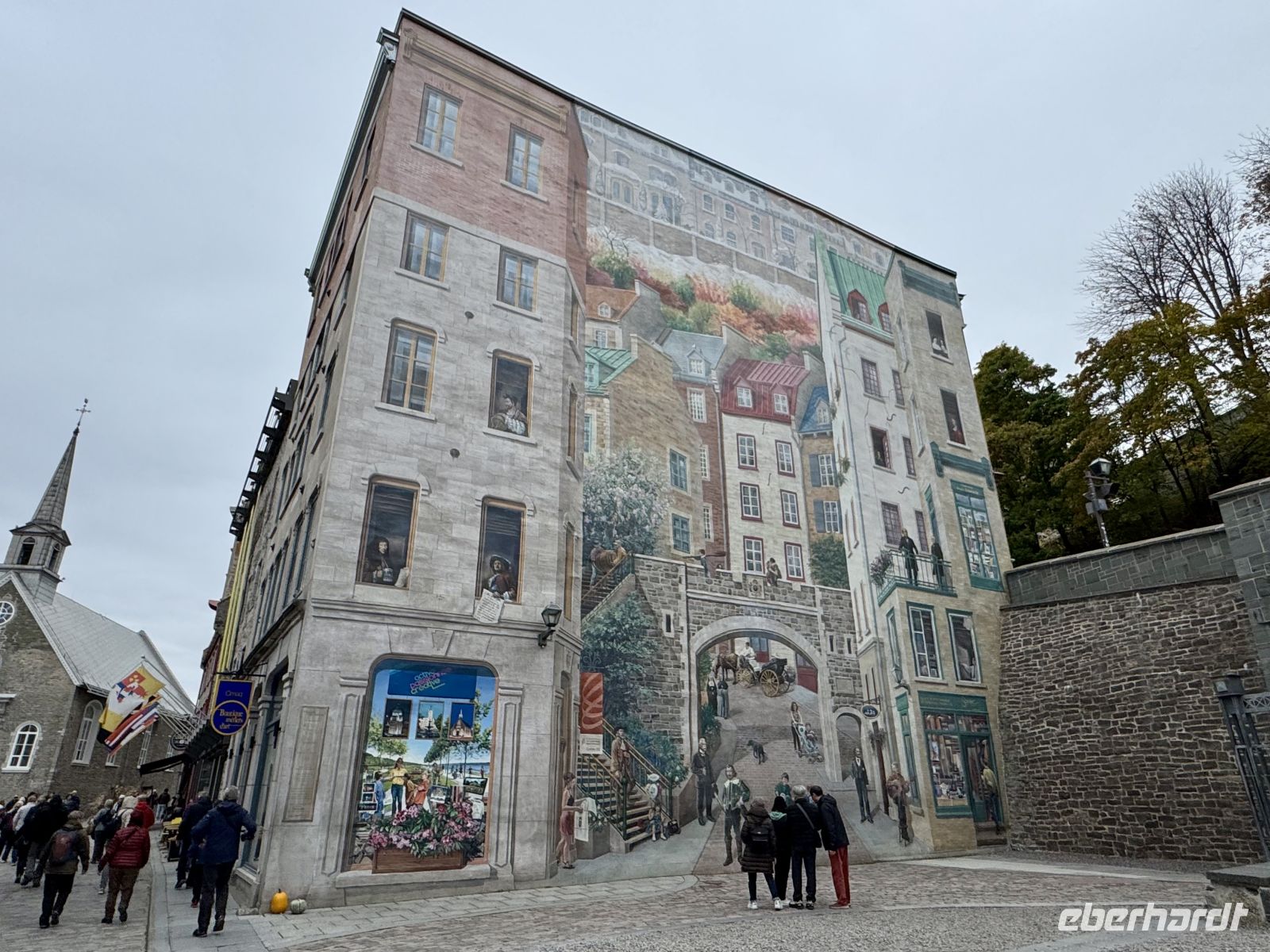 Mit Québec wartet heute das letzte große Ziel dieser Reise auf uns. Die älteste Stadt Kanadas haben wir uns mit Absicht bis zum Schluss aufgehoben. Durch den Charlevoix-Krater fahren wir also am Morgen zurück in Richtung Westen. Diesmal nehmen wir allerdings die Route entlang des Sankt-Lorenz-Stroms. Es ist ein bisschen wie eine Achterbahnfahrt, nur deutlich langsamer. Kurz nach 10 Uhr haben wir dann den Canyon Sainte-Anne erreicht. Hier erwartet uns ein schöner Spaziergang zum Wasserfall sowie eine Zipline, von der meine Gäste reichlich Gebrauch machen. Auch die benachbarte Basilika in Beaupré ist der Heiligen Anna geweiht. Ein beeindruckender Bau, der nächstes Jahr sein 100-jähriges Jubiläum feiert. Die Mosaike an der Decke erzählen die Lebens- und Leidensgeschichte der Mutter von Maria. Für viele Katholiken weltweit ist die Kirche ein wichtiger Wallfahrtsort. Und damit leite ich fließend über zur Stadt Québec, denn die ist wiederum als älteste Stadt Kanadas und UNESCO-Weltkulturerbe ein Pilgerort für unzählige Touristen aus der ganzen Welt — völlig zu Recht. Auch wir erliegen sofort dem Charme der alten Häuser und engen Gassen in der unteren Altstadt, blicken ehrfürchtig zum Château Frontenac hinauf. Und das, obwohl wir zunächst nur Freizeit und Mittagspause haben, und die eigentliche Stadtrundfahrt mit Nadia am Nachmittag noch vor uns liegt. Glücklicherweise liegt nur ein kleineres Kreuzfahrtschiff im Hafen und es ist vergleichsweise wenig los. Auf der anderen Seite ist es schade, dass der Sonne ausgerechnet heute vorübergehend die Kraft ausgeht. Es ist zwar trocken, aber bewölkt. Aber wir wollen uns nicht zu sehr beschweren, denn insgesamt hatten wir ja großes Glück mit dem Wetter. Auch mit Nadia arbeite ich schon viele Jahre zusammen. Die gebürtige Moskauerin ist mit einem Franzosen verheiratet und lebt auch schon fast 20 Jahre in Québec. Trotz ihrer Herkunft haben sie die Winter in Kanada überrascht. Ein Kapitel, das immer wieder zur Sprache kommt, während wir mit ihr von der Batterie Royale zum Sonnenkönig ziehen, daneben das riesige Fresko bewundern und einen Abstecher in die Rue du Petit-Champlain wagen. Den Aufstieg in die Oberstadt über die Halsbrechertreppe erspart uns Nadia freundlicherweise. Ich rufe Jim herbei und wir fahren mit dem Bus zum sehr eleganten Parlamentsgebäude knapp außerhalb der Stadtmauer. Am majestätischen Eisenbahnhotel gewährt uns die Stadtverwaltung nur 10 Minuten Halt, was immerhin für ein paar Fotos reicht. Schließlich zeigt uns Nadia noch die Plains of Abraham, das zum riesigen Stadtpark umgewidmete Schlachtfeld. Unser Hotel liegt quasi direkt daneben an der Grande Allée, weshalb auch die Altstadt zu Fuß gut zu erreichen ist. Wer möchte, kann also vor dem Abschiedsabendessen z. B. noch einen Spaziergang zum Château Frontenac unternehmen. Auch unser Restaurant liegt in der oberen Altstadt, im Herzen von Québec. Auch heute bekommen wir wieder vier Gänge serviert, sodass wir mit den gefüllten Windbeuteln zum Dessert ganz schön zu kämpfen haben. Aber es wäre schade um die ganze Schokoladensoße … Wer nun noch Muße hat, dem empfehle ich einen Abstecher zur beleuchteten Halloween-Dekoration am Rathaus und zum Fairmont-Hotel. Den Großteil der Gruppe begleite ich aber zum Hotel zurück, denn es ist spät und auch ganz schön kalt geworden. Winter is coming.