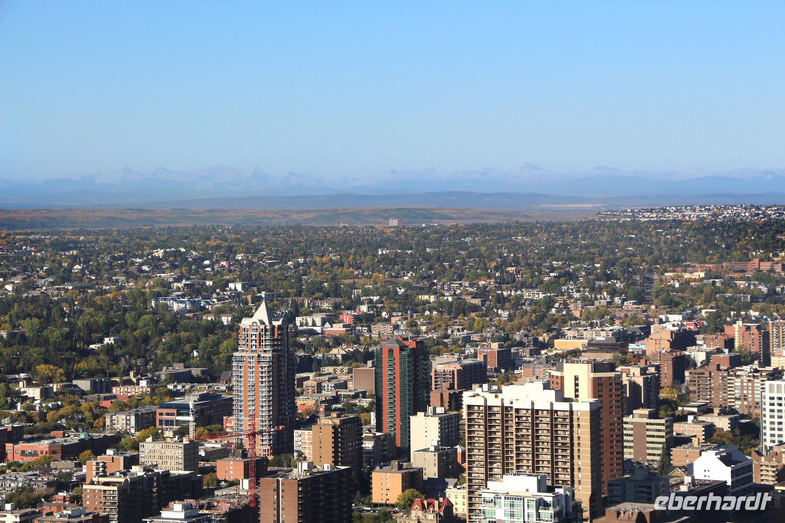 Bevor wir in die Rocky Mountains reisen, sehen wir uns die Sehenswürdigkeiten Calgarys an. Wir sehen den Stampede Rodeo Park mit der bekannten u-förmigen Sattelhalle und den Gründungsort der Stadt am Bow River vom Bus aus. Höhepunkt der Stadtbesichtigung ist die Auffahrt auf den 190 Meter hohen Calgary Tower, von dem wir einen fantastschen Blick über Calgary bis hin zu den Rocky Mountains genießen. Alle Mutigen wagen einen Blick durch den Glasboden nach unten.