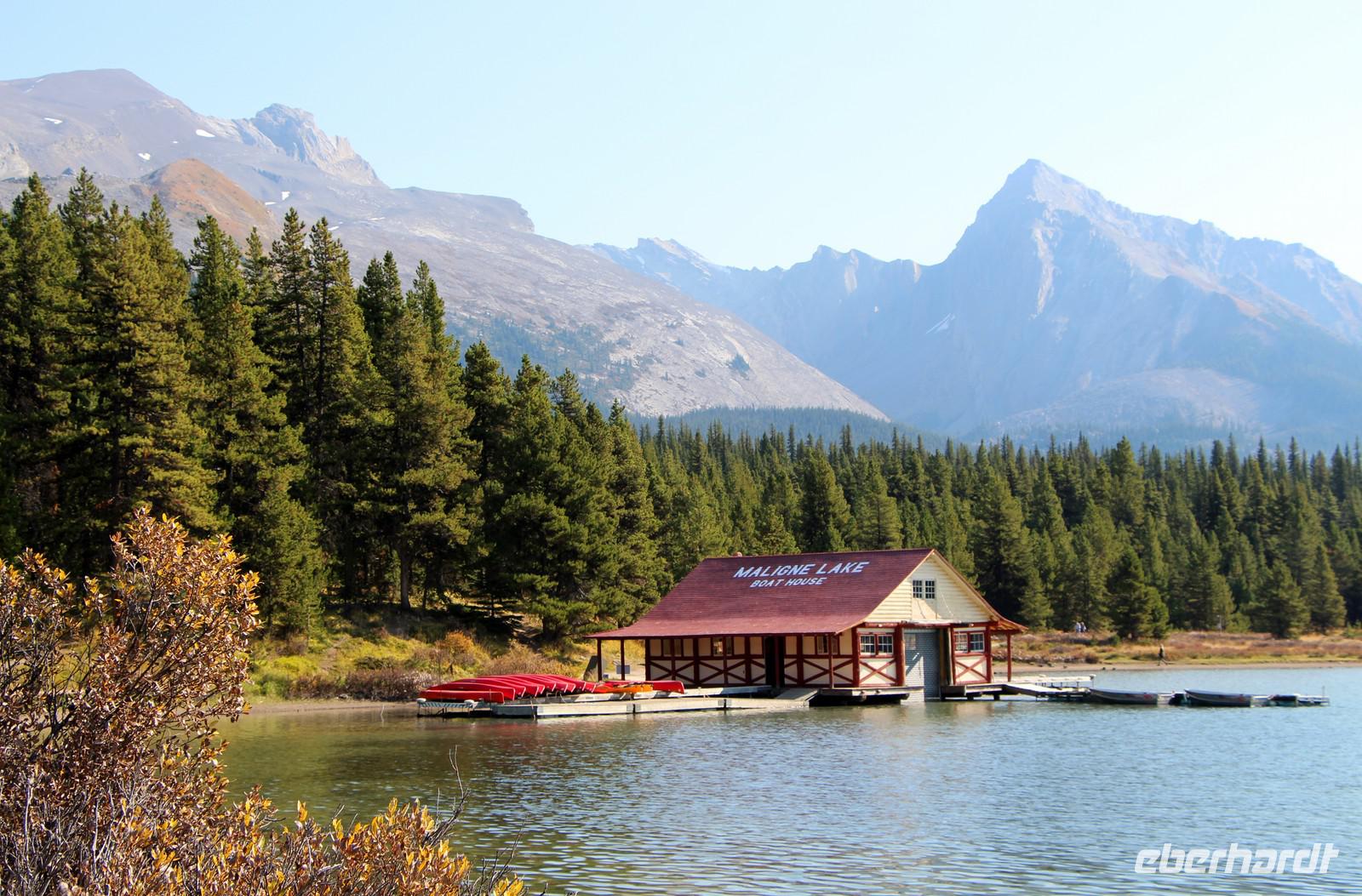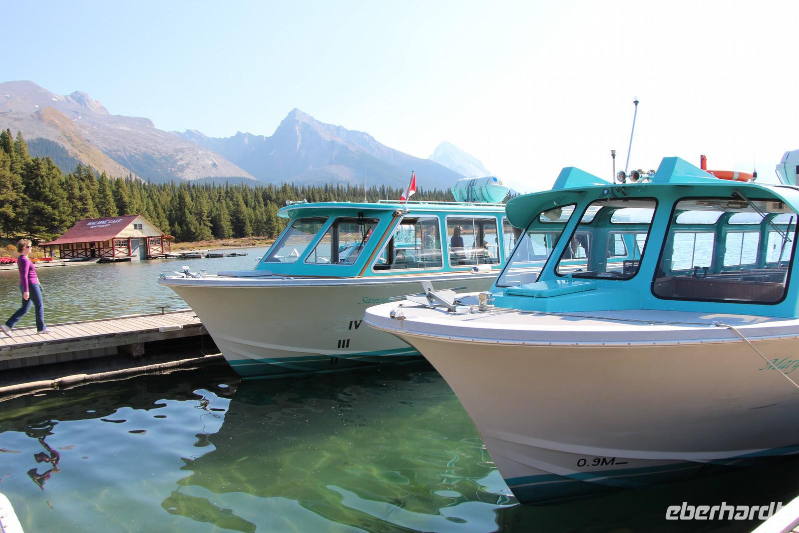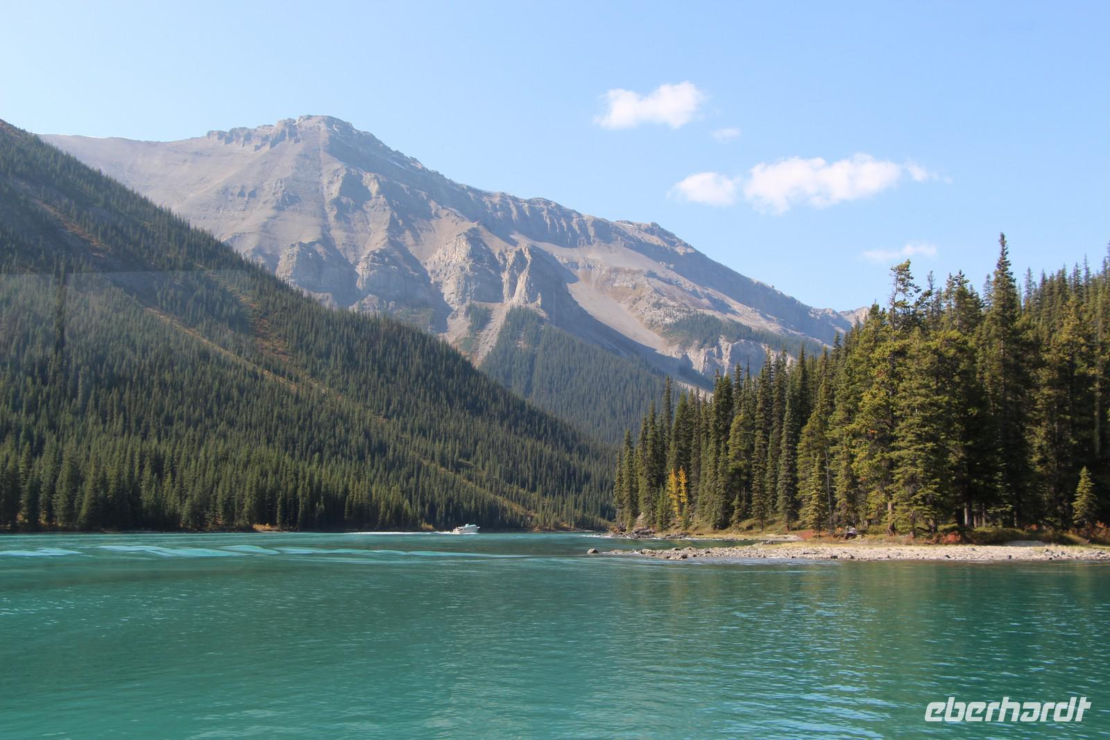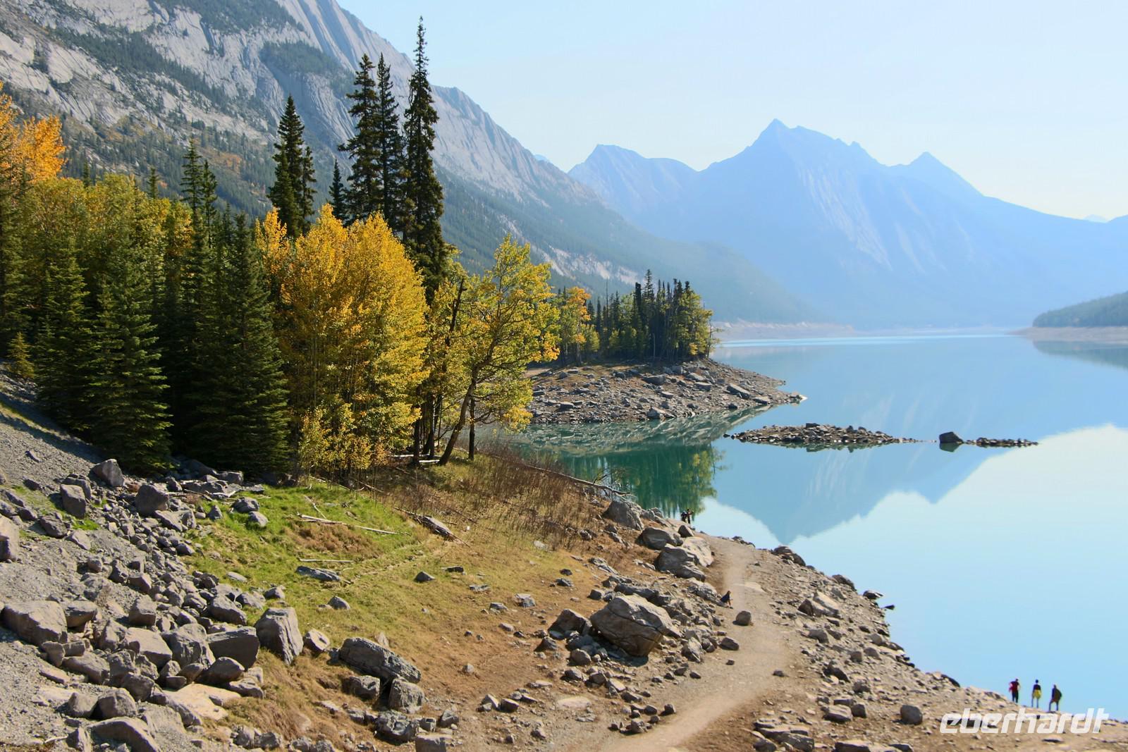 Wer nicht mit fährt, kann im Selbstbedienungsrestaurant oder auf der großen Terrasse eine Mittagspause einlegen. Einige Wanderwege führen am Seeufer entlang und durch den angrenzenden Wald. Empfehlenswert ist zum Beispiel der etwa drei Kilometer lange Mary Schäffer Loop, den jeder bequem erwandern kann.