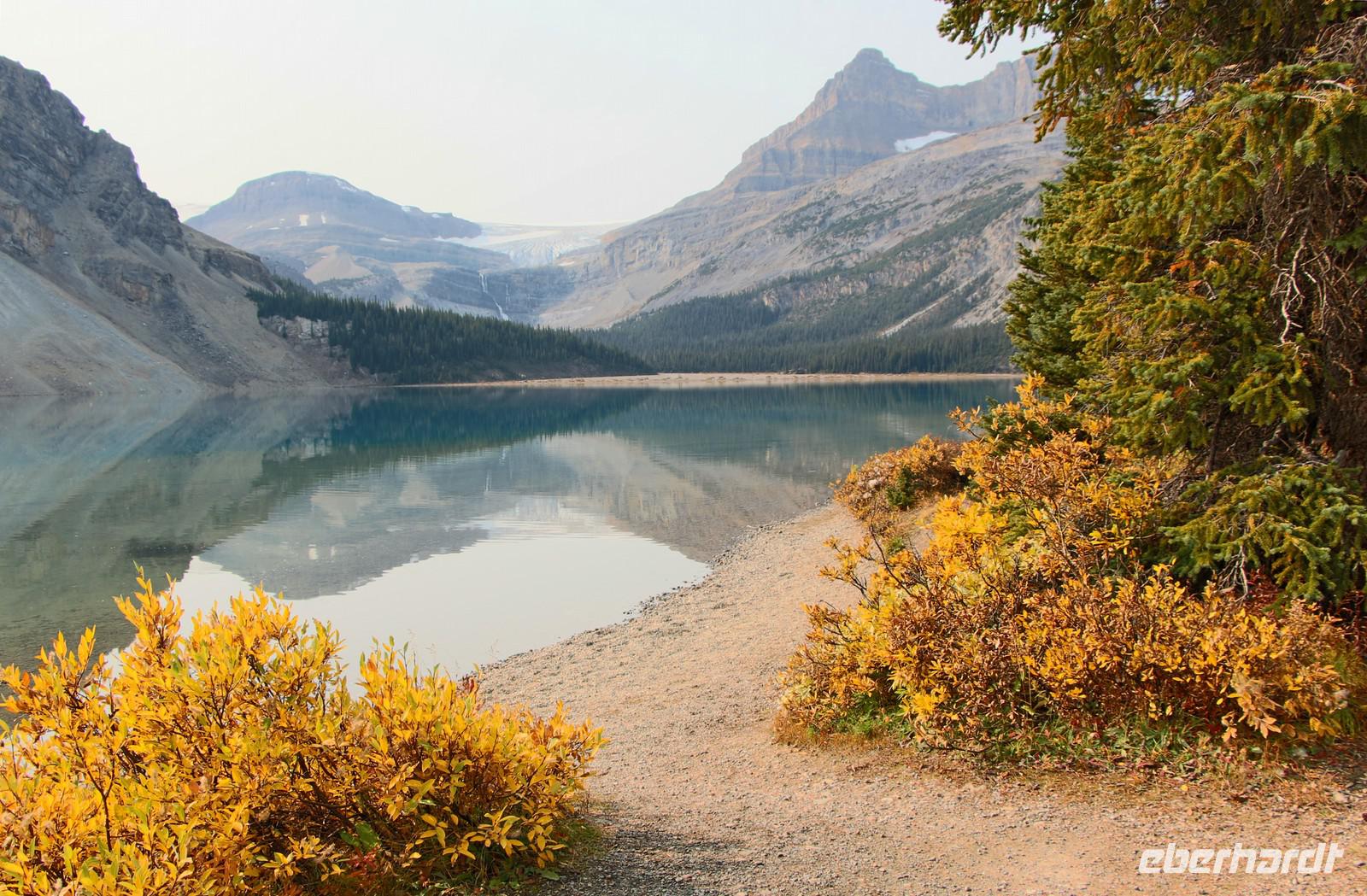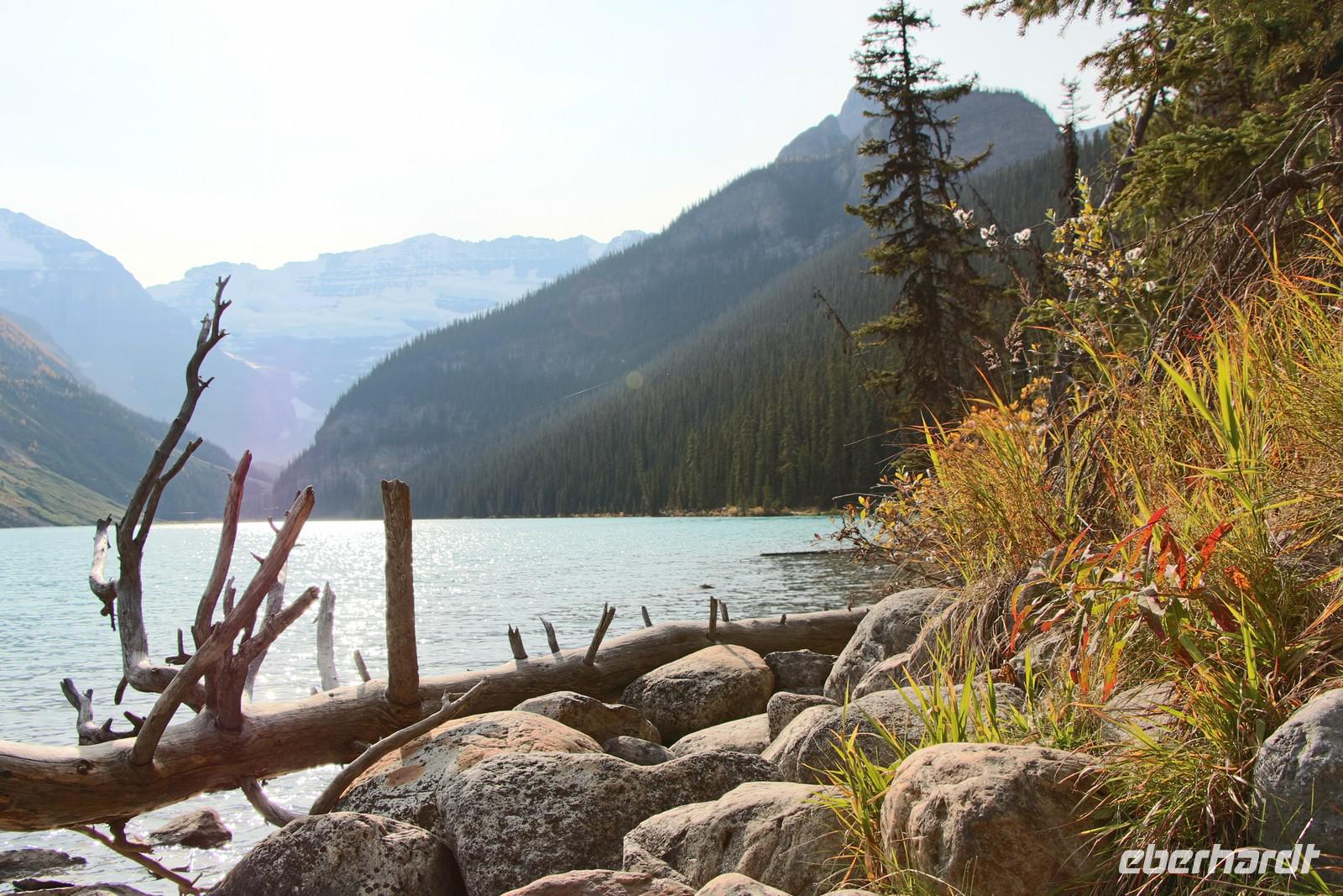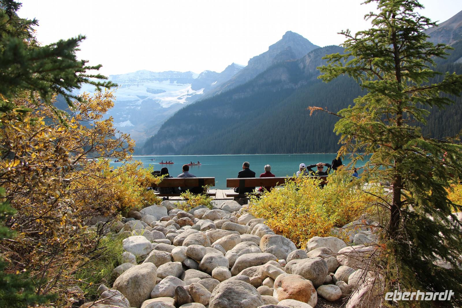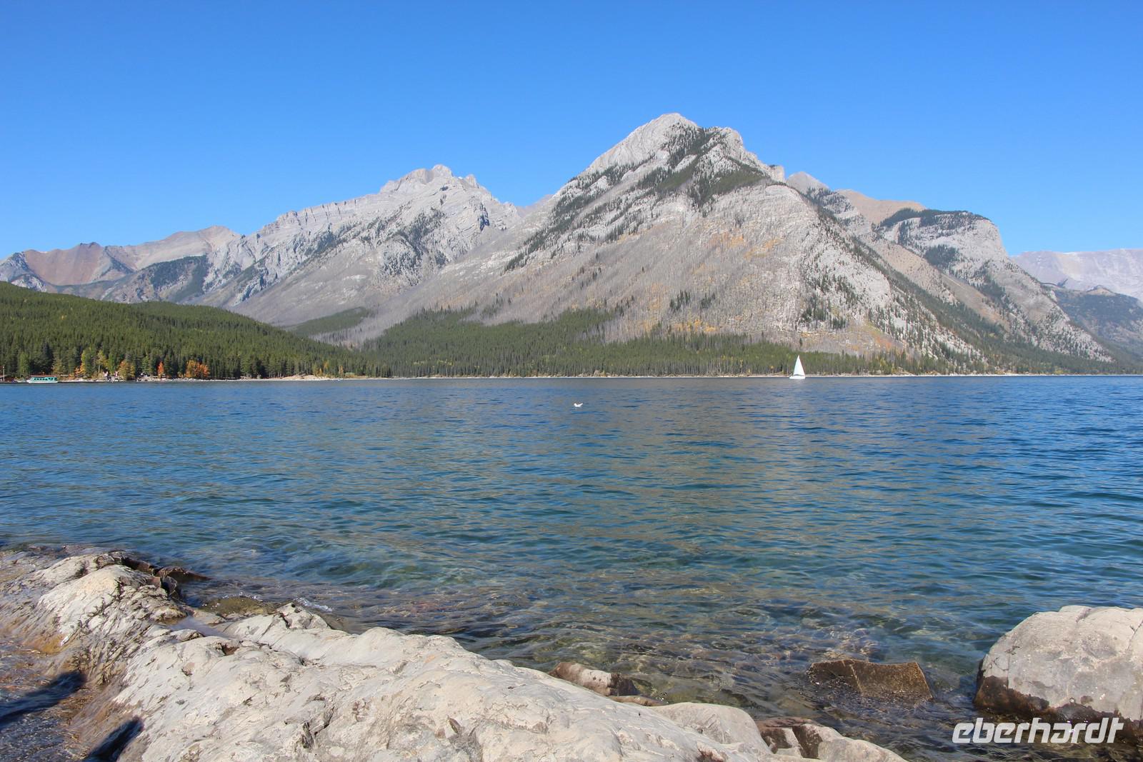 Wer nicht mit fährt, kann im Selbstbedienungsrestaurant oder auf der großen Terrasse eine Mittagspause einlegen. Einige Wanderwege führen am Seeufer entlang und durch den angrenzenden Wald. Empfehlenswert ist zum Beispiel der etwa drei Kilometer lange Mary Schäffer Loop, den jeder bequem erwandern kann.
