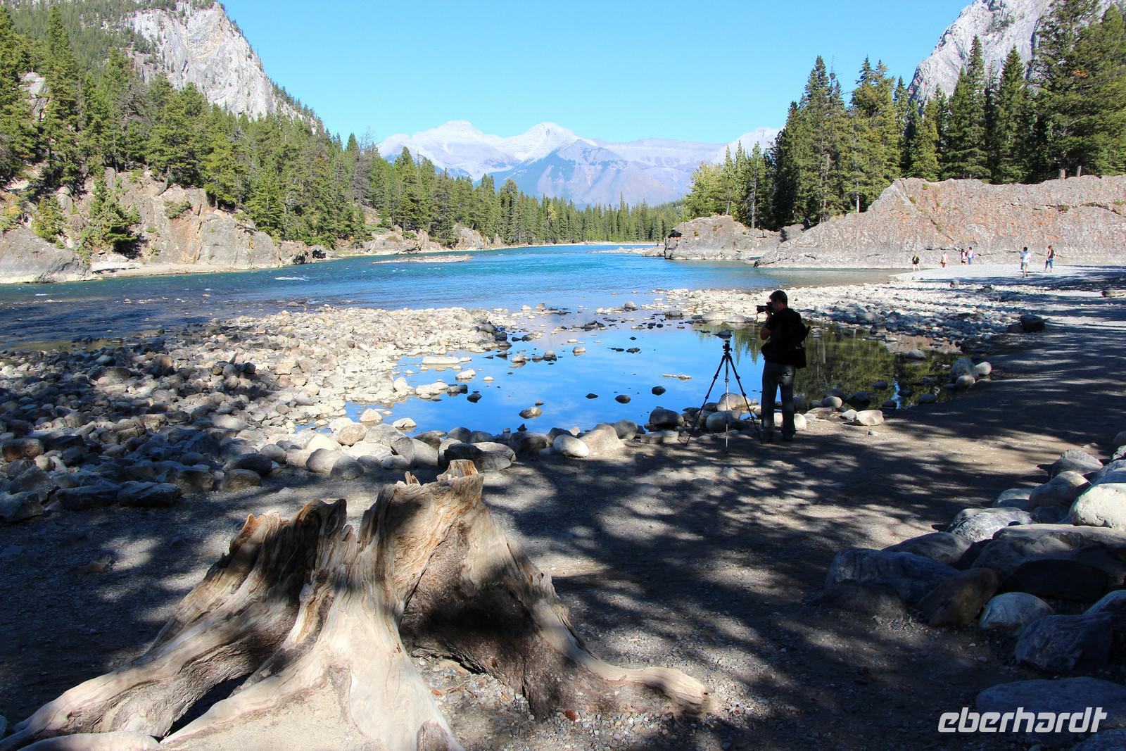 Weiter geht es zum schönen Emerald Lake im Yoho-Nationalpark. Er ist nach seiner smaragdgrünen Farbe benannt. Hier ist genügend Zeit, um ein Stück am Seeufer entlang zu spazieren, Fotos zu machen und den Souvenirladen zu besuchen. Im See spiegeln sich bei dem ruhigem Wetter wunderschön die umliegenden Berge. Über den Kicking-Horse-Pass geht es zurück zum Banff-Nationlpark. Unterwegs legen wir einen Fotostopp an der Natural Bridge ein, wo der Kicking Horse River eine natürliche Brücke aus dem Felsgestein geschliffen hat.