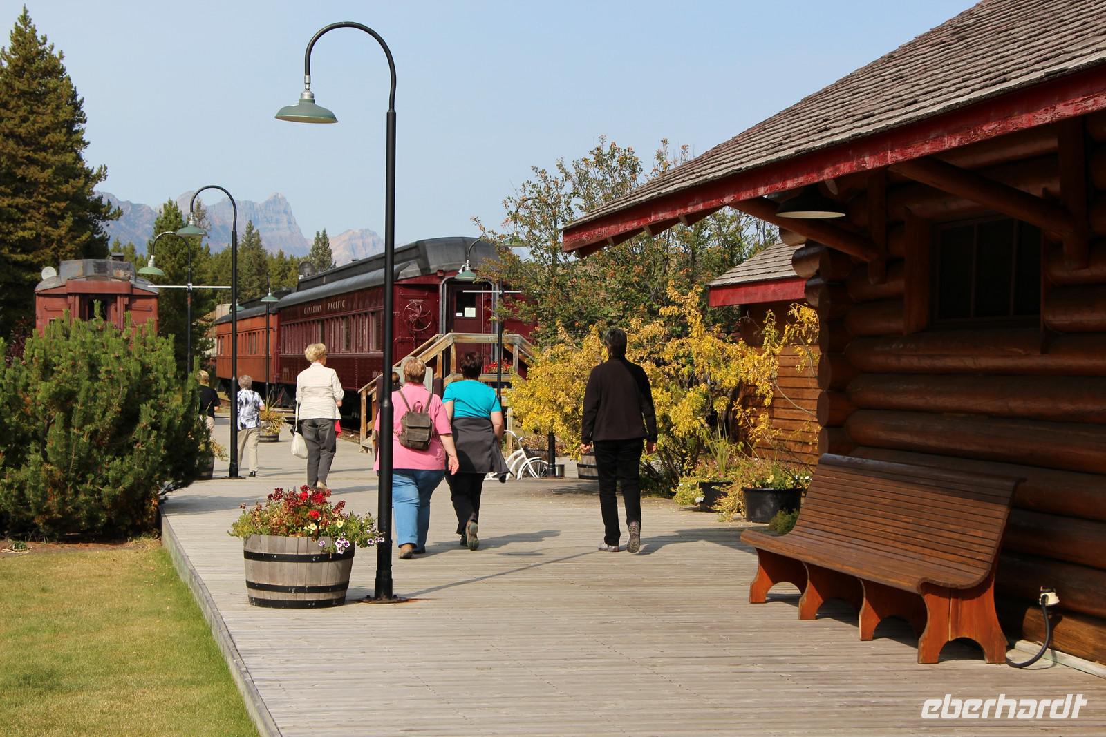 Zur Mittagspause kehren wir in den historischen Bahnhof vom Städtchen Lake Louise ein. Hier kann man alte Eisenbahnwagen der Pacific Railway bestaunen. In dem kleinen Bahnhof wurden einst Szenen aus dem Filmklassiker "Doktor Schiwago" gedreht. Heute ist hier ein Restaurant mit musealer Einrichtung zu finden.