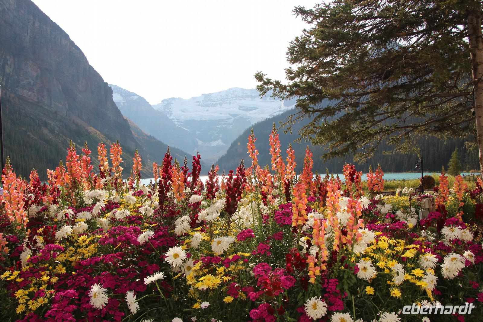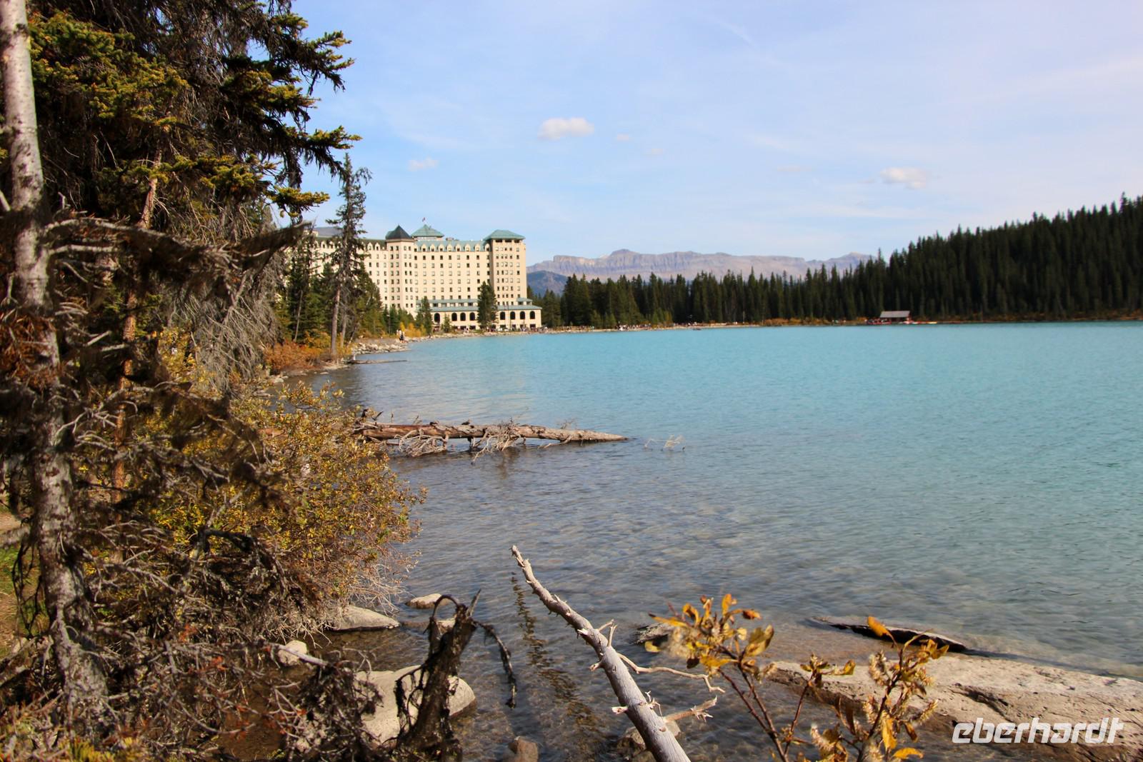 Nach unserem Aufenthalt am Moraine Lake fahren wir zum bekanntesten See im Banff-Nationalpark - zum Lake Louise. Wir spazieren am Seeufer entlang und bewundern das historische Eisenbahnhotel "Chateau Lake Louise", welches heute weithin sichtbar als Luxushotel der Fairmont-Kette fungiert. Ein Abstecher in die Main Lobby des Hotels darf dabei natürlich nicht fehlen. Schließlich begeben wir uns auf den Rückweg nach Banff. Mit einem Bummel durch die Banff Avenue und einem individuellen Abendessen in der Stadt lassen wir den Tag ausklingen. Meine Restaurant-Empfehlung ist das Kanadische Restaurant "Maple Leaf" an der Banff Avenue. Die Preise sind kanadisch hoch, aber man bekommt typische und feine Gerichte wie Rindersteak, Lachs, Meeresfrüchte oder Bison Stroganoff.