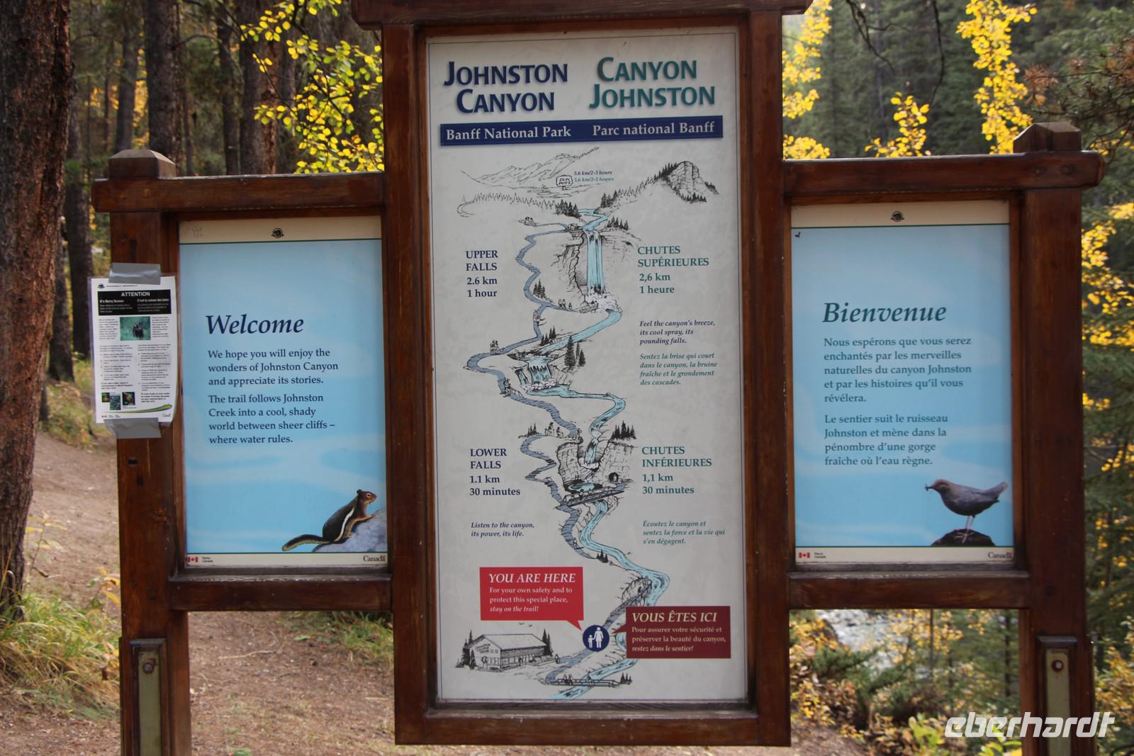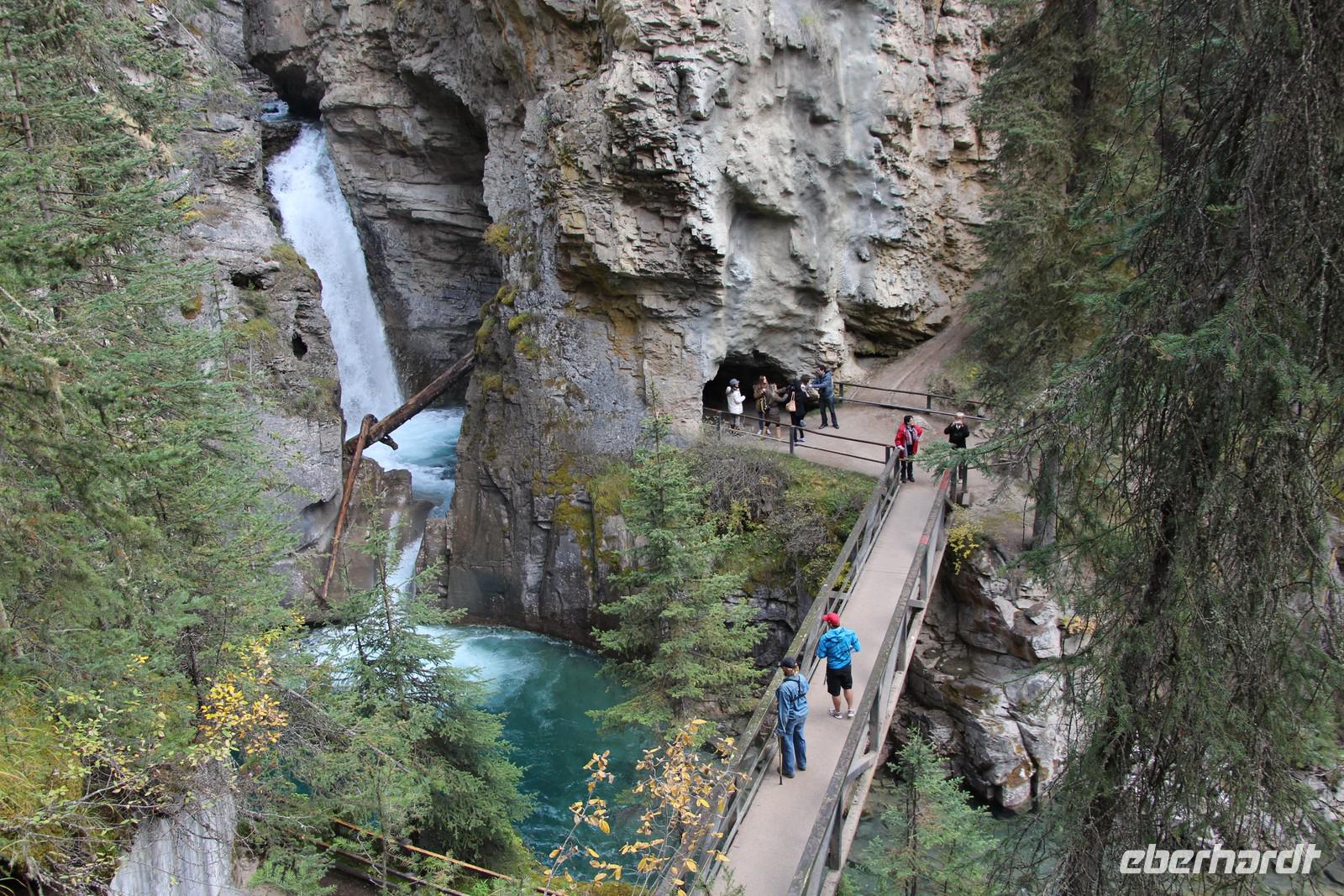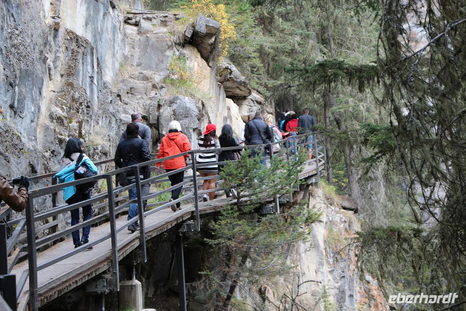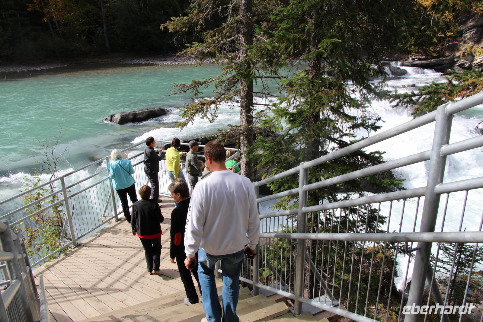 Vom Banff-Nationalpark reisen wir heute weiter in den Jasper-Nationalpark. Zuvor besuchen wir aber den Johnston Canyon, eine enge Schlucht, die der Johnston River in das Gestein gegraben hat. Wir unternehmen eine Wanderung entlang der Schlucht auf einem befestigten Wanderweg, der teilweise auch über Stege und Treppen führt. Man kann bis zum unteren Wasserfall wandern oder für besonders Aktive auch bis zum oberen Wasserfall (insgesamt ca. 1,5 Stunden bei gemütlichem Tempo).