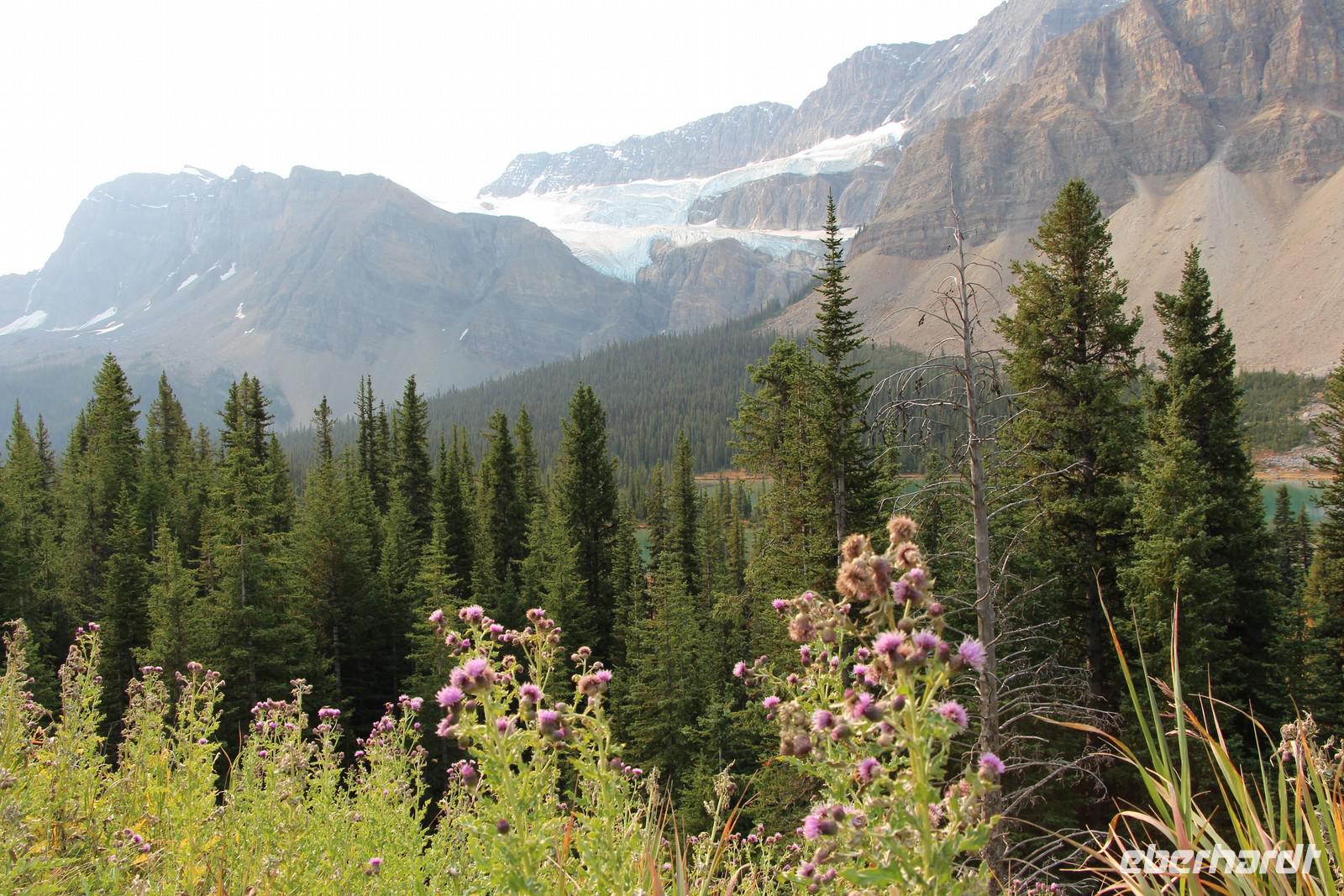 Weiterreise in den Jasper–Nationalpark: Wanderung im Johnston Canyon, Icefield Parkway, Bow Lake, Peyto Lake und Columbia Icefield