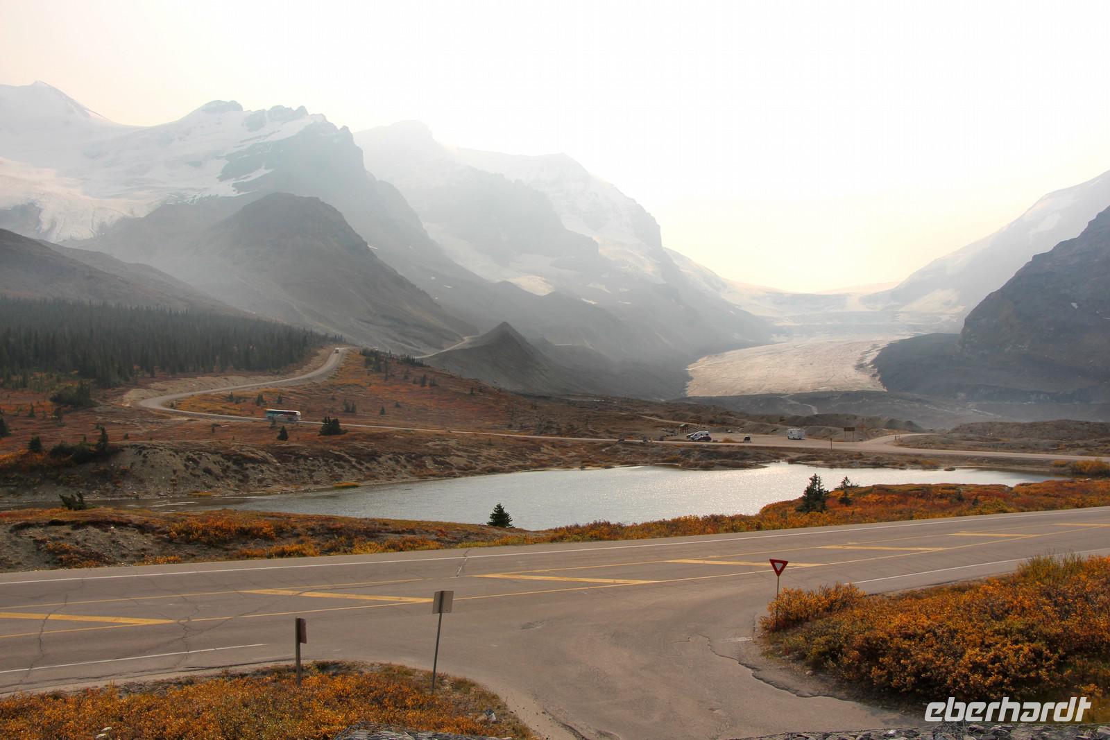 Entlang der berühmten Panoramastraße Icefield Parkway fahren wir weiter in den Jasper-Nationalpark. Am Wegesrand stoppen wir immer wieder an schönen Aussichtspunkten: am Krähenfuß-Gletscher, am Bow Lake und Bow Gletscher und am herrlich türkisblauen Peyto Lake. Dieser See beeindruckt alle Besucher des Jasper-Nationalparks wegen seiner einmaligen Farbe immer am meisten. Am Nachmittag erreichen wir den Athabasca-Gletscher, der zum riesigen Inlandseisfeld - dem Columbia Icefield - gehört. Wer möchte, kann hier sogar auf den Gletscher hinauf fahren. Die Gletschertour dauert etwa 1,5 Stunden. Man fährt zunächst in einem Bus bis zur Gletscherkante und steigt dort in einen Snowcoach um, ein riesiges Geländefahrzeug, das auf dem Eis fahren kann. Man fährt direkt bis zur Mitte des Gletschers und kann dort Jahrtausende altes Gletschereis betreten.