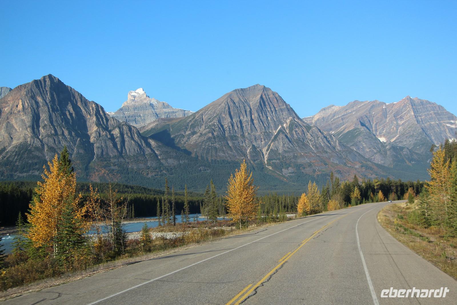 Wir verlassen unsere Lodge „Sunwapta Falls" und reisen weiter in den Norden. Heutiges Tagesziel ist Prince George. Bevor wir den Jasper-Nationalpark verlassen, besuchen wir den Athabasca-Wasserfall, an dem der gleichnamige Fluss durch eine enge Schlucht fließt.