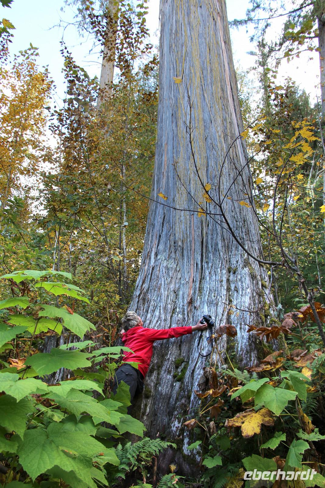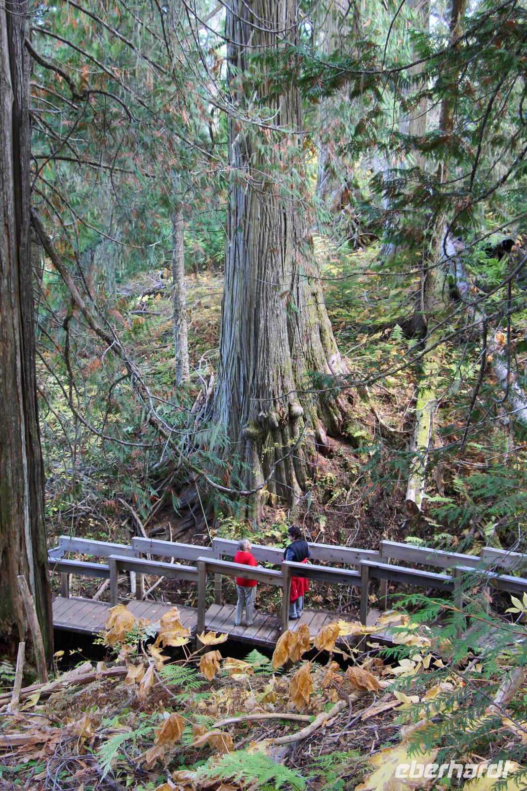 Etwa eine Stunde vor Ankunft in Prince George besuchen wir den Ancient Forest, ein Stück Urwald mit riesigen kanadischen Rot-Zedern, die 1000 bis 2000 Jahre alt sind. Auf einem Rundweg wandern wir durch den beeindruckenden Urwald.