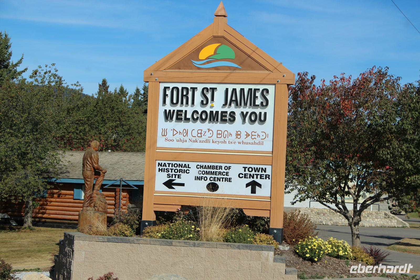 Wir verlassen die Holzfällerstadt Prince George und reisen weiter in Richtung Westen. Wir durchqueren Vanderhoof, die geografische Mitte von British Columbia. Nach einem kleinen Einkaufsstopp biegen wir ab in Richtung Norden und erreichen die Siedlung Fort St. James. Einst als Pelzhandelsposten der West Indian Company und später der Hudson Bay Company gegründet, war Fort St. James die erste Hauptstadt von British Columbia. Der 1806 gegründete Handelsposten wurde originalgetreu erhalten und teilweise rekonstruiert. Er war bis in die 1950er Jahre in Betrieb und ist heute eine nationale historische Sehenswürdigkeit Kanadas.