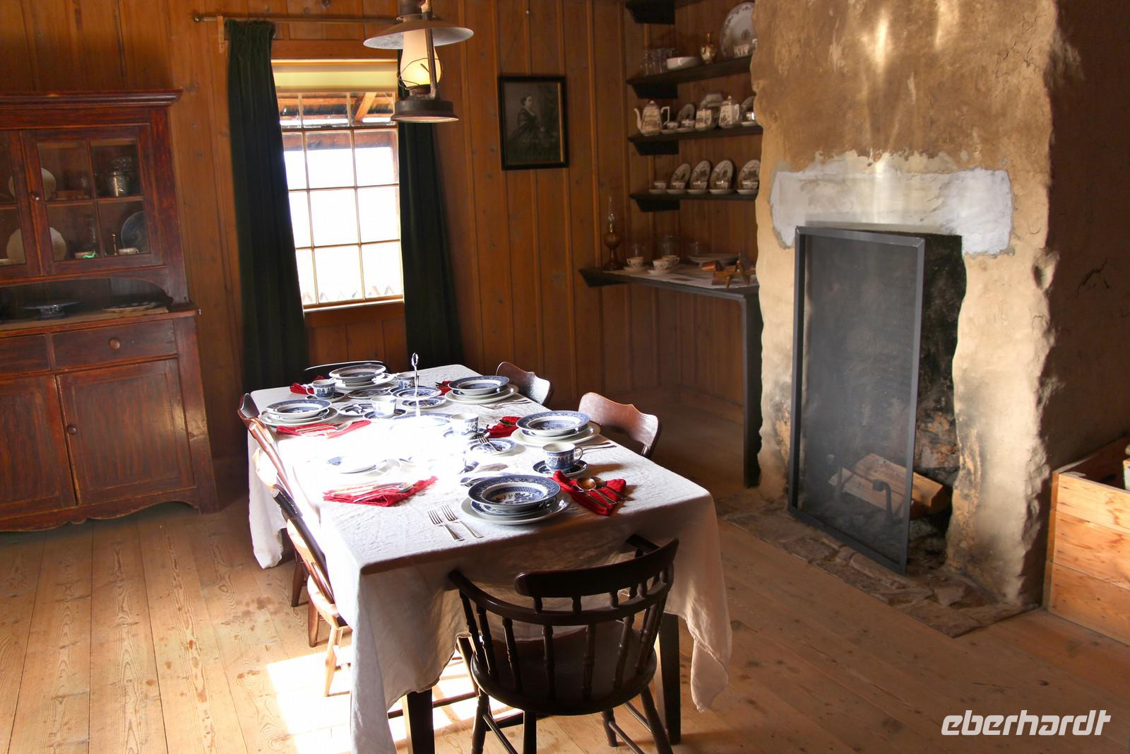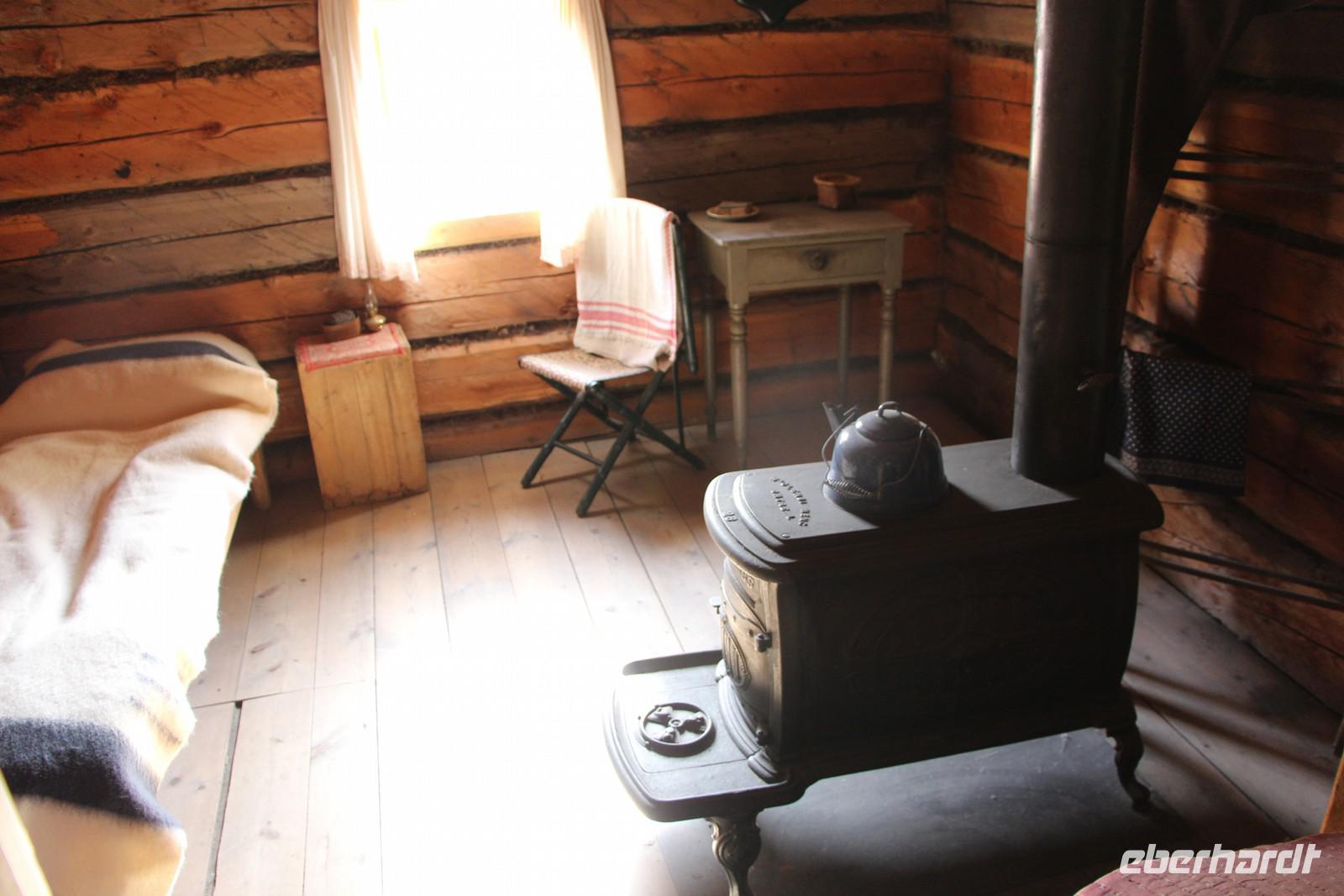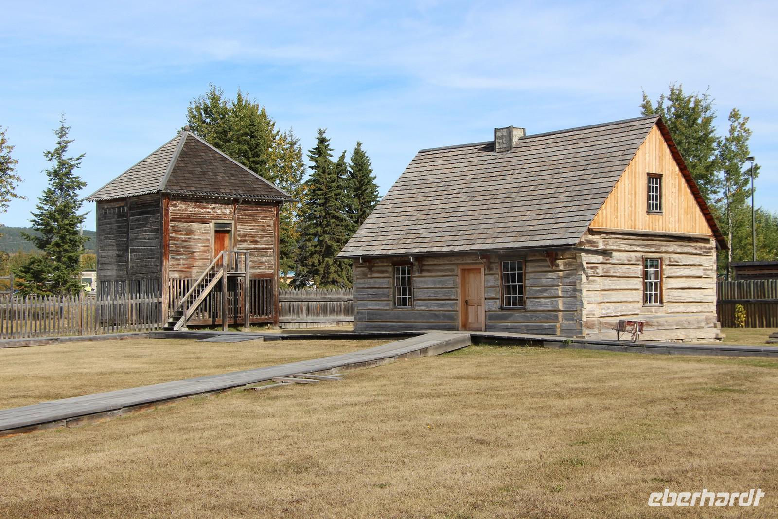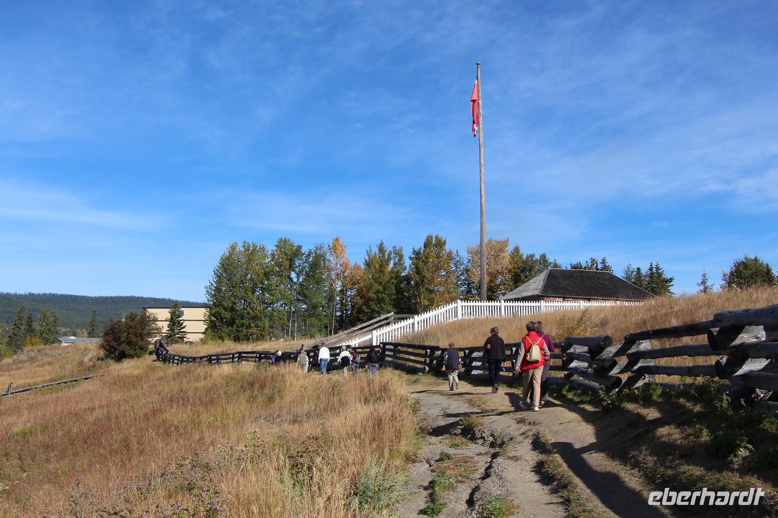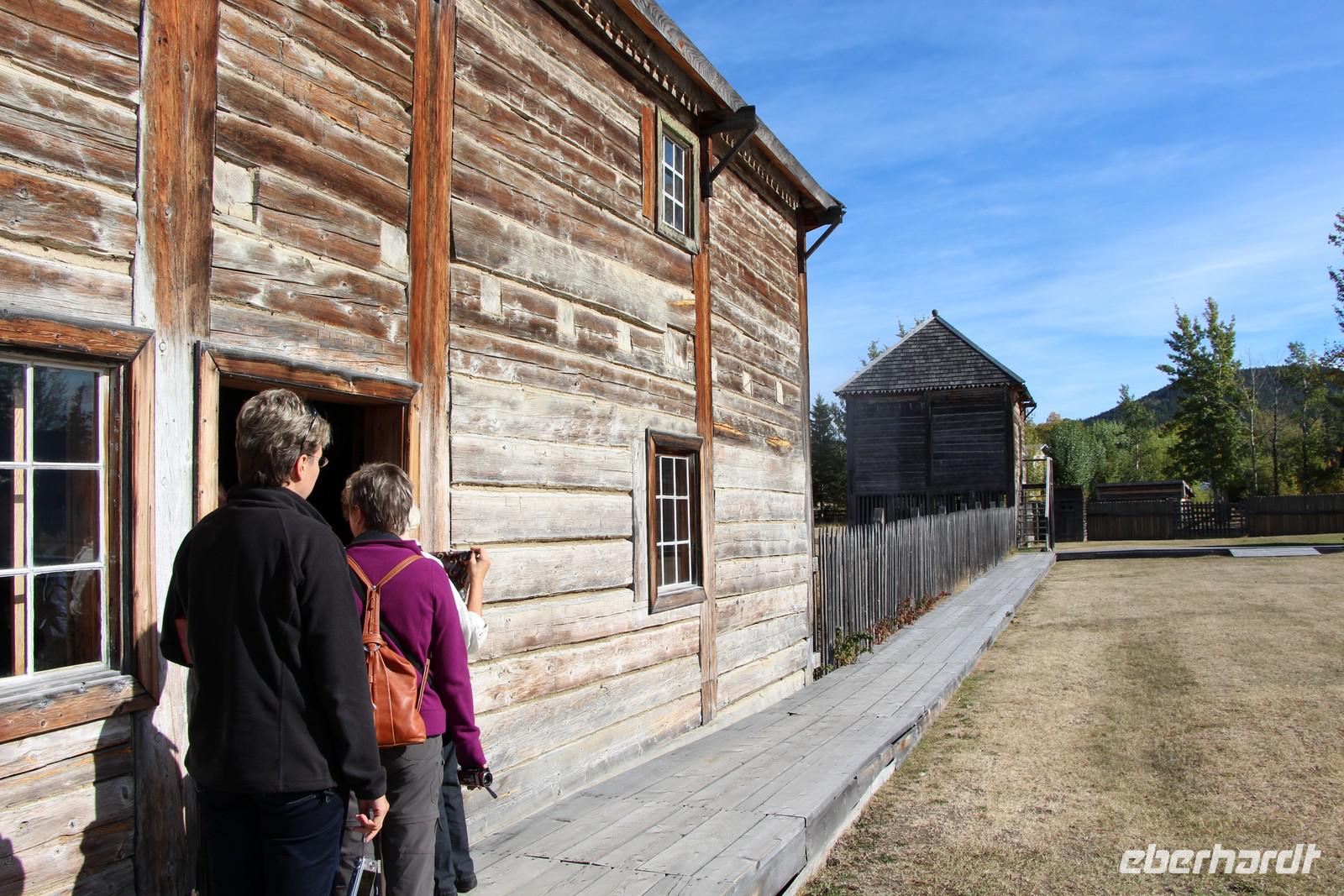 Bevor unsere Besichtigungstour startet, schauen wir uns im kleinen Kino einen etwa 15-minütigen Film zur Geschichte des Forts an. Dann sehen wir bei einem Rundgang die Gebäude des Forts: das Lagerhaus mit Pelzen aller hier heimischen Tierarten, das Männerhaus, in dem die Trapper damals wohnten, das Räucherhaus zum Trocknen von Speck und Lachs, das Handelshaus, in dem Pelze gegen Kolonialwaren getauscht werden konnten und das Haus des Geschäftsführers des Forts. Im Gemüsegarten baute man sein eigenes Gemüse an, es gab Ställe für Vieh und eine Anlegestelle am Ufer des Stewart Lake, über den die Pelze und Waren über das weitere Flusssystem schließlich bis zum Pazifik transportiert wurden, um nach Europa verschifft zu werden.