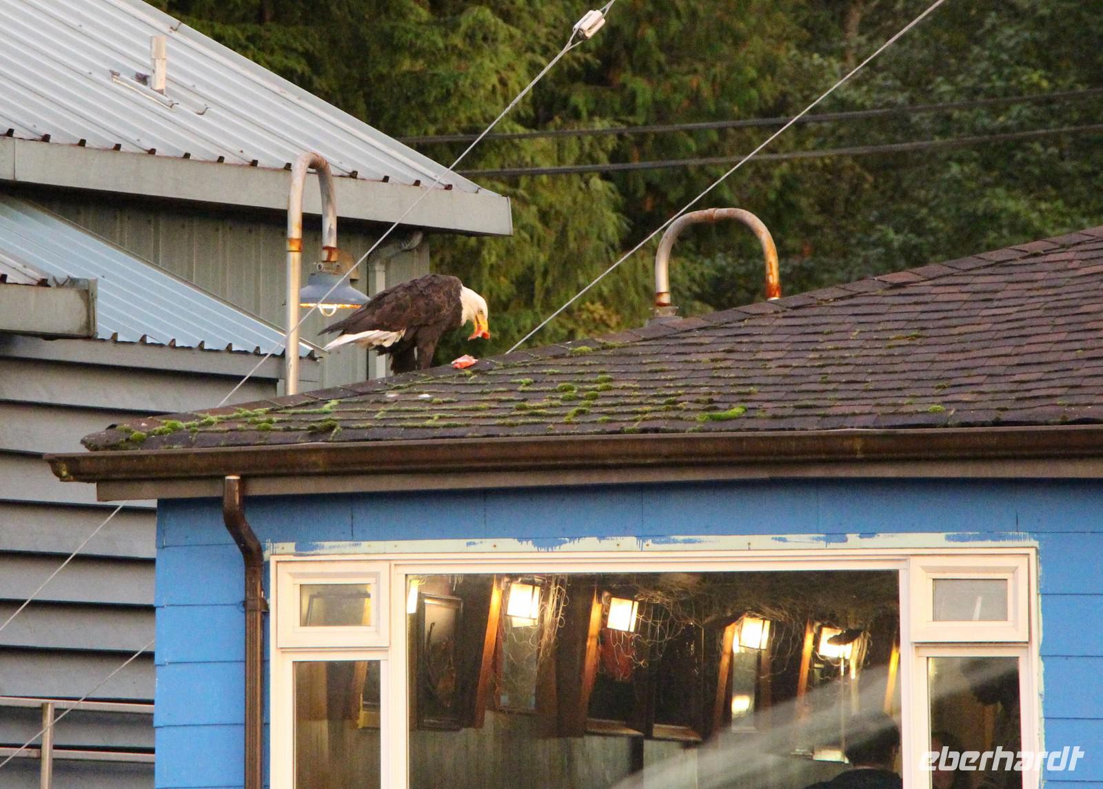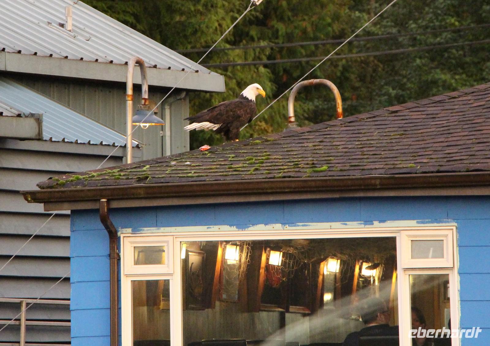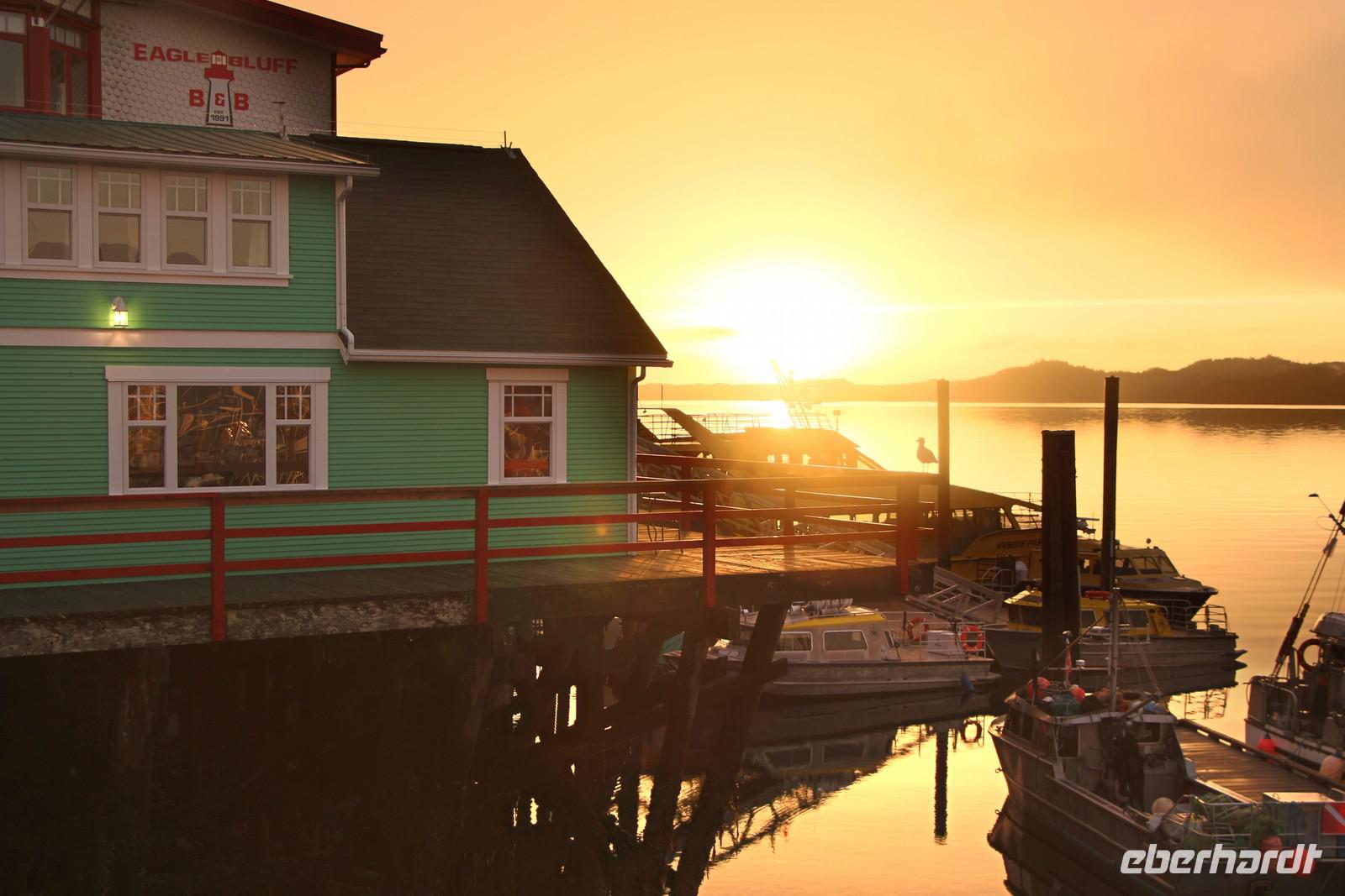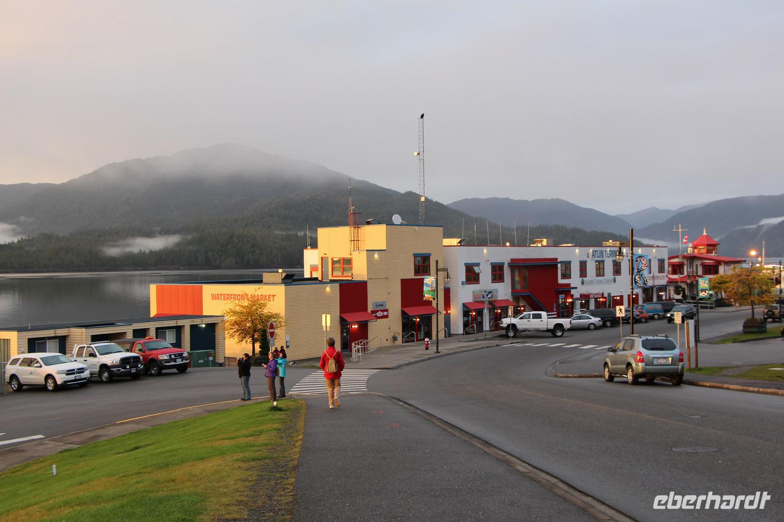 In einem urigen Blockhaus in Hazelton essen wir zu Mittag, bevor wir weiter fahren in Richtung Prince Rupert. Nach einem Stopp in der Stadt Terrace und weiter entlang des großen Skeena River erreichen wir am frühen Abend Prince Rupert - die Stadt der Regenbogen. Wir checken im Hotel „Highliner Inn" ein. Bei einem abendlichen Spaziergang sehen wir das hübsche Gerichtsgebäude und die Waterfront an der Cow Bay mit ihren kleinen Geschäften, Restaurants und Yachthafen. Ein Tipp zur Einkehr ist das "Breakers Pub", in dem man mit tollem Blick auf die Cow Bay die hiesige Spezialität Fish & Chips probieren kann.