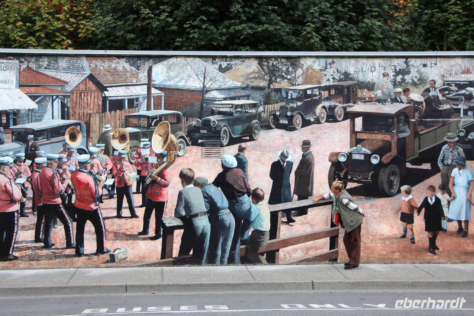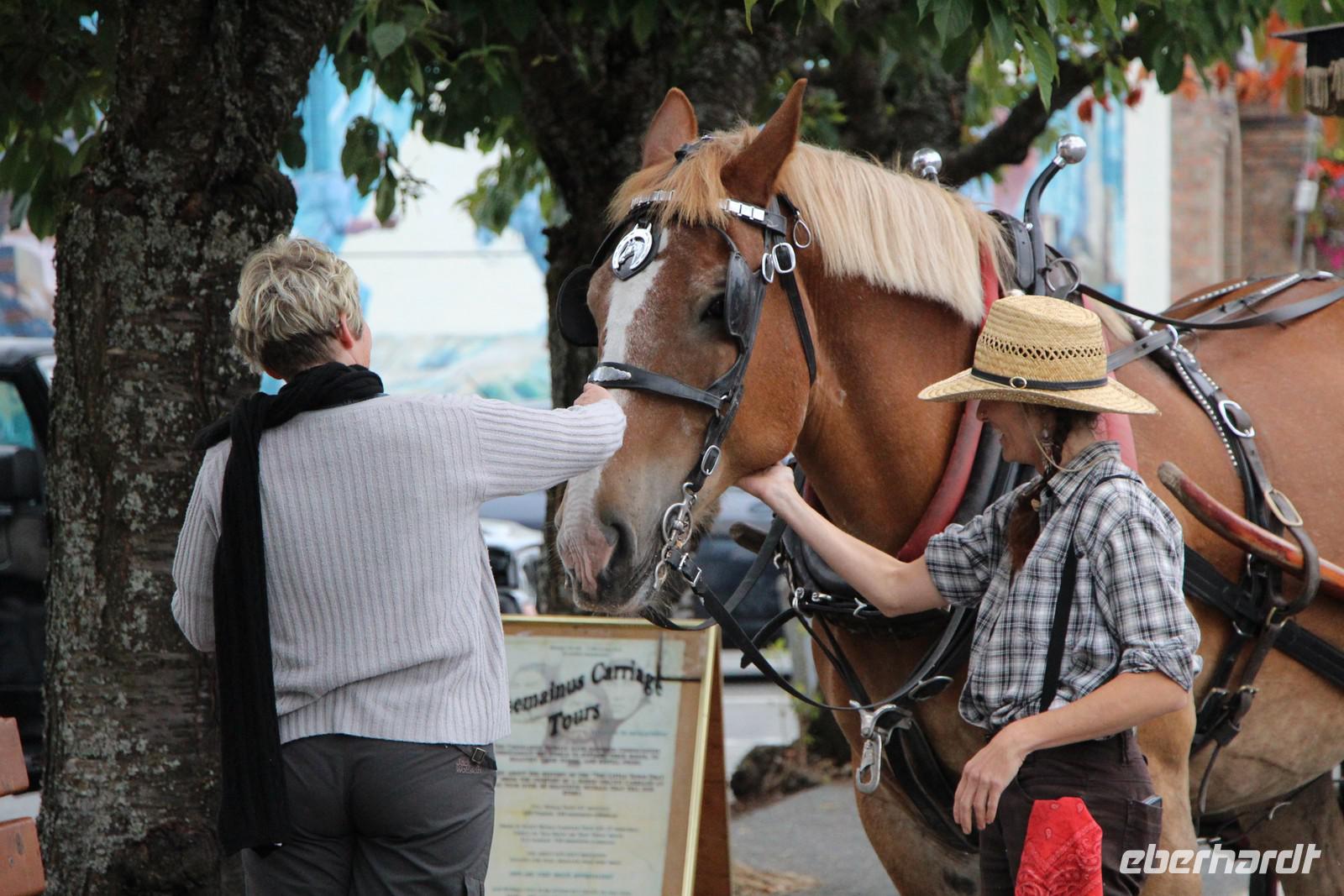Heute liegt die längste Fahrtstrecke der Reise vor uns, denn wir durchqueren die ganze Insel Vancouver Island von Nord bis Süd. Die Fahrt führt durch dichten, nebligen Wald links und rechts des Highways nach Campbell River und zum kleinen Örtchen Coombs, wo wir am Markt "Goats on the Roof" (Ziegen auf dem Dach) eine Mittagspause einlegen. Entlang der Ostküste geht es weiter über Nanaimo bis nach Chemainus. Das Städtchen ist berühmt für seine zahlreichen Wandmalereien, die Motive zur Geschichte West-Kanadas und Vancouver Islands zeigen. Hübsche Souvenirläden, Cafés und ein kleines Heimatmuseum laden zum Verweilen ein.
