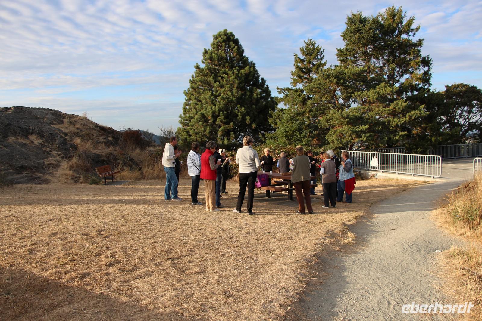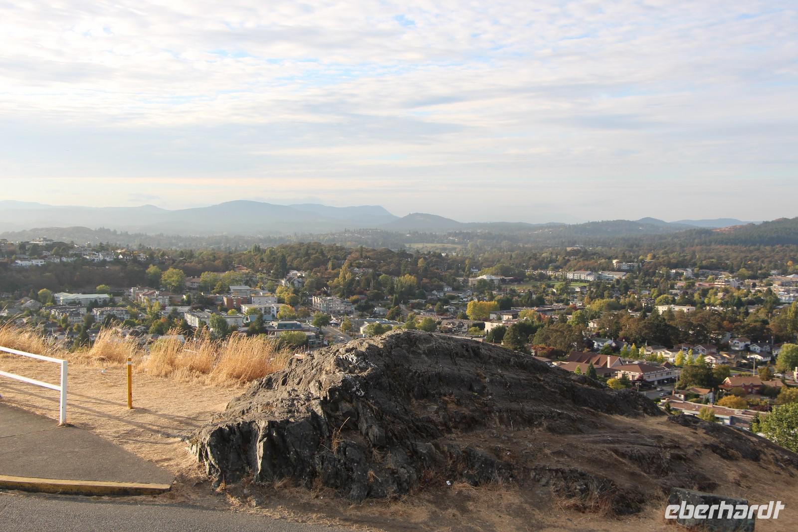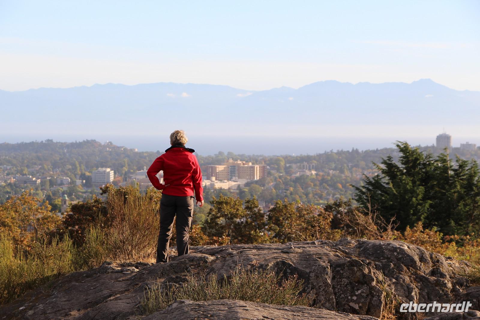 Am frühen Abend erreichen wir Victoria. Der Weg führt uns zunächst auf den Mount Tolmie, von dem wir die herrliche Aussicht auf die Südspitze von Vancouver Island in der Abendsonne genießen. Durch die Stadtteile der "Reichen und Schönen" an der Pazifikküste gelangen wir schließlich in die Innenstadt von Victoria und beziehen unser Hotel "Quality Inn Downtown" im Zentrum. Von hier sind es nur ein paar Gehminuten hinunter zum Inneren Hafen, wo am Abend das Parlamentsgebäude Victorias mit tausenden Glühbirnen beleuchtet ist. Im Restaurant "Milestone's" direkt am Hafen gegenüber dem Parlament haben wir heute unser gemeinsames Abendessen.