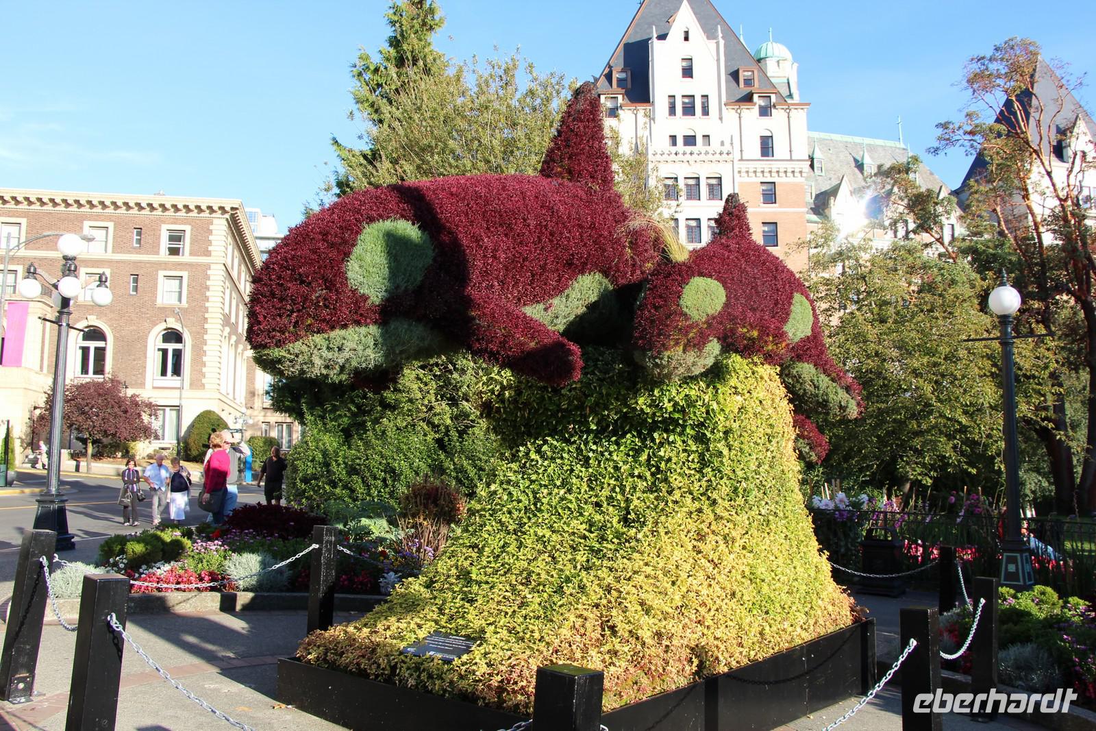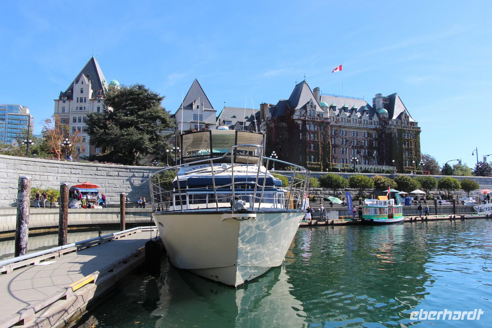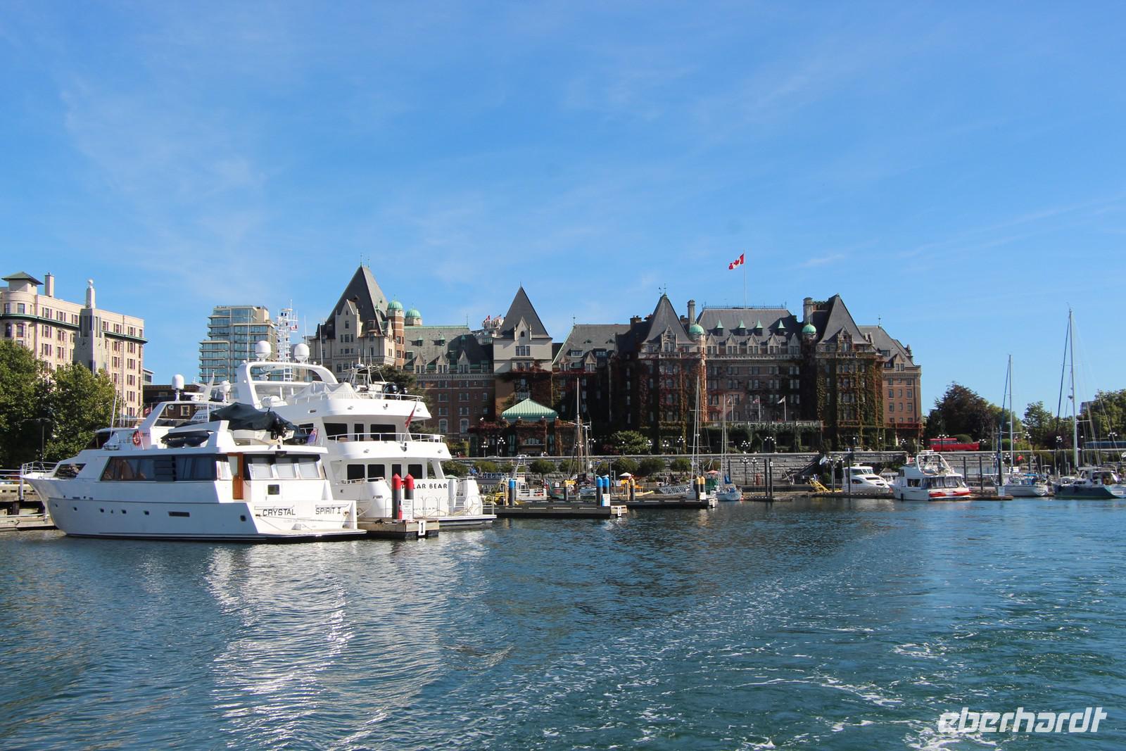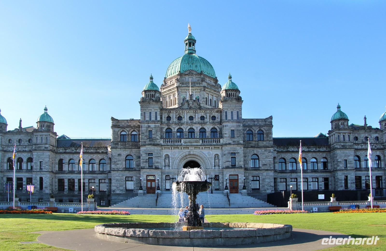 Am Vormittag besichtigen wir die Hauptstadt British Columbias zu Fuß. Unser Hotel liegt im Zentrum, sodass wir die schönsten Stadtteile bequem erwandern können. Vorbei am Royal BC Museum mit seiner Sammlung von Totempfählen gehen wir zum beeindruckendsten Gebäude der Stadt - dem Parlamentsgebäude. Die viktorianische Architektur erinnert stark an England. Am Confederation Garden Court bestaunen wir alle Wappen der kanadischen Provinzen. Weiter geht es zum Fairmont Hotel am Inneren Hafen. Im Inneren beeindruckt auch dieses alte Eisenbahn-Hotel mit seiner herrschaftlichen Einrichtung wie schon in Lake Louise und Banff. Die traditionelle englische Teatime zum Nachmittag kostet hier übrigens um die 50 Dollar.