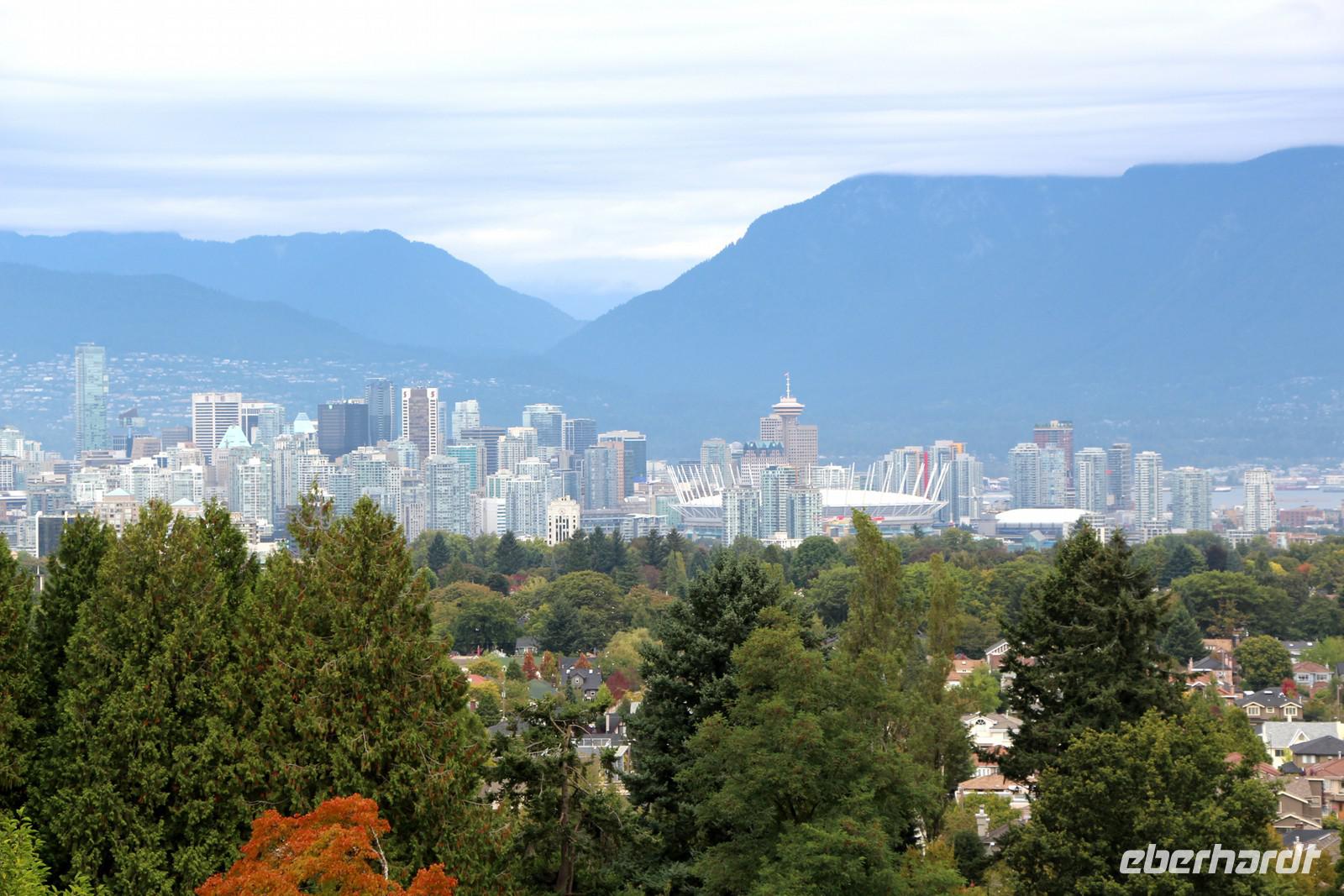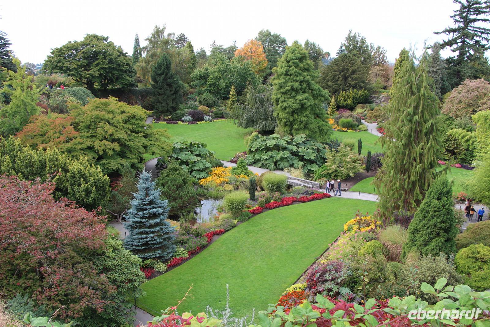 Heute geht es etwas früher los, denn wir nehmen die Fähre von Swartz Bay auf Vancouver Island zurück auf das kanadische Festland. Die Überfahrt mit BC Ferries dauert etwa 1,5 Stunden. Vom Ankunftshafen in Tsawwassen geht es in unserem Bus weiter in Richtung Vancouver. Unser erster Stopp in Vancouver gilt dem Queen Elizabeth Park, einer herrlichen Garten- und Parkanlage voller exotischer und heimischer Pflanzen und Bäume. Von hier oben genießen wir einen schönen Blick auf das Zentrum von Vancouver und die dahinter liegende grüne Bergwelt. Nach einem gemütlichen Spaziergang durch die Parkanlage fahren wir in die Innenstadt. Durch Chinatown hindurch erreichen wir Gastown, einen hübschen viktorianischen Stadtteil. Der Namensgeber „Gassy Jack" ist hier auch in einem Denkmal verewigt. Unser gemeinsames Mittagessen nehmen wir in der „Old Spaghetti Factory" ein, einem gemütlichen Restaurant mit historischer Einrichtung.