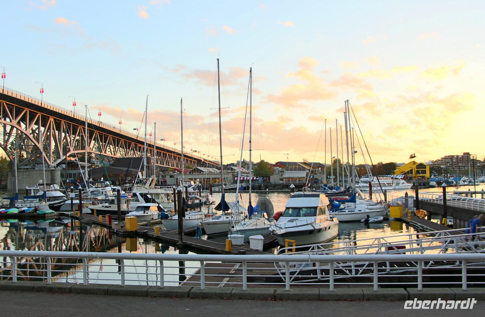 Am Abend ist ein Spaziergang am False Creek Jachthafen ganz in der Nähe des Hotels empfehlenswert. Hier gibt es auch ein paar gemütliche Restaurants und Bars mit Blick auf das Wasser.