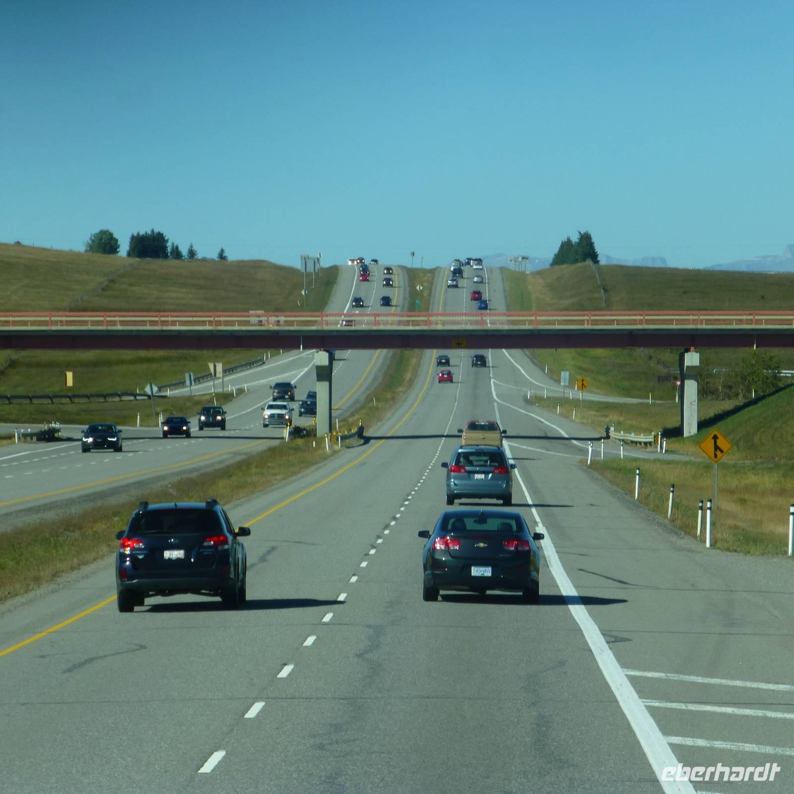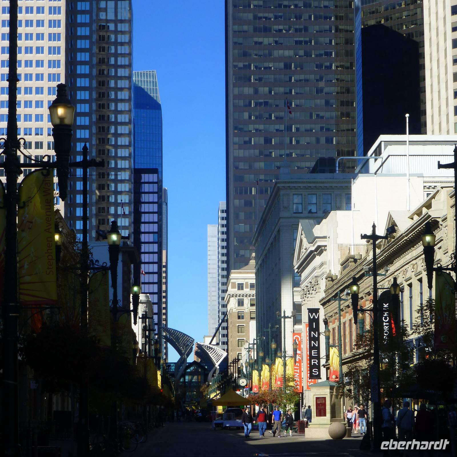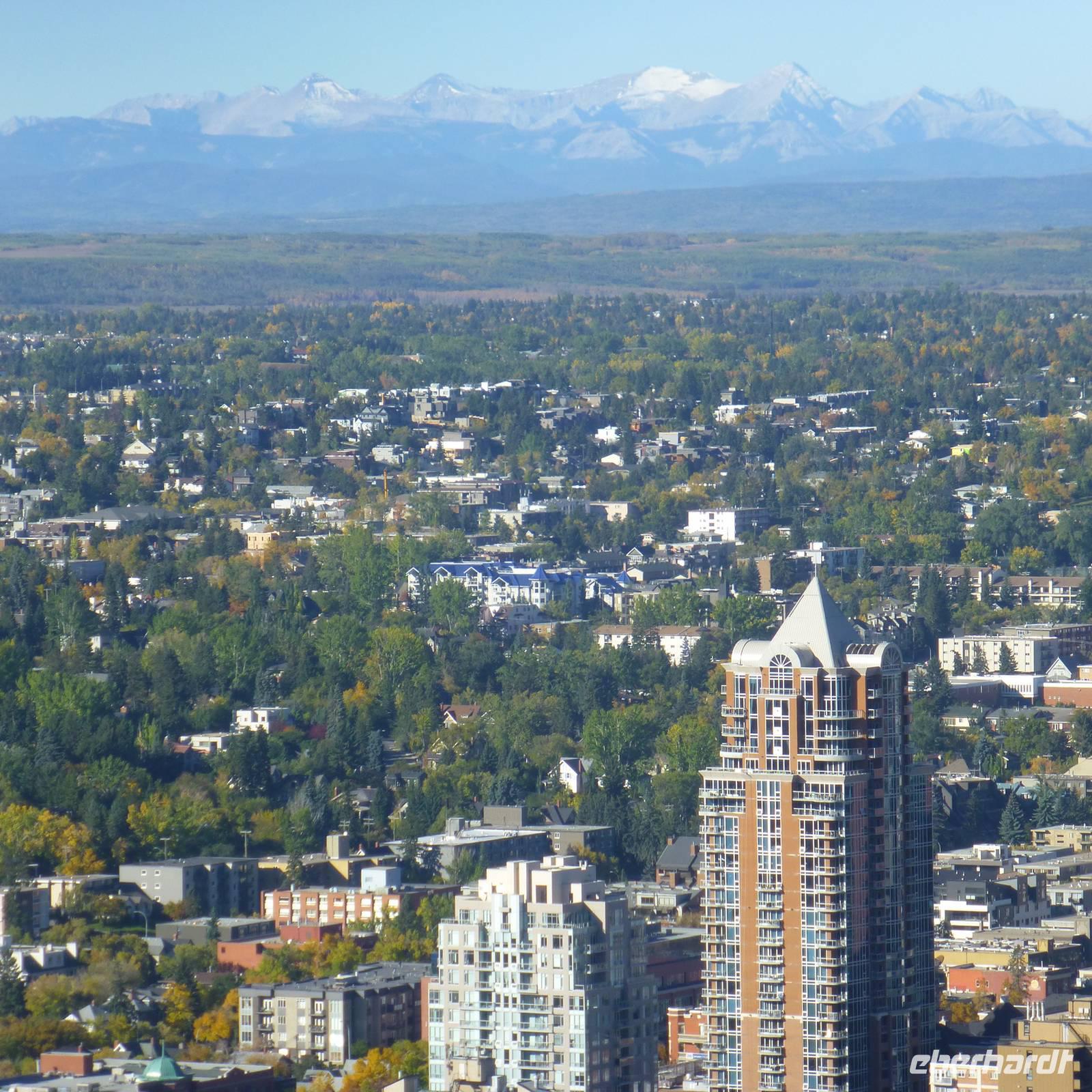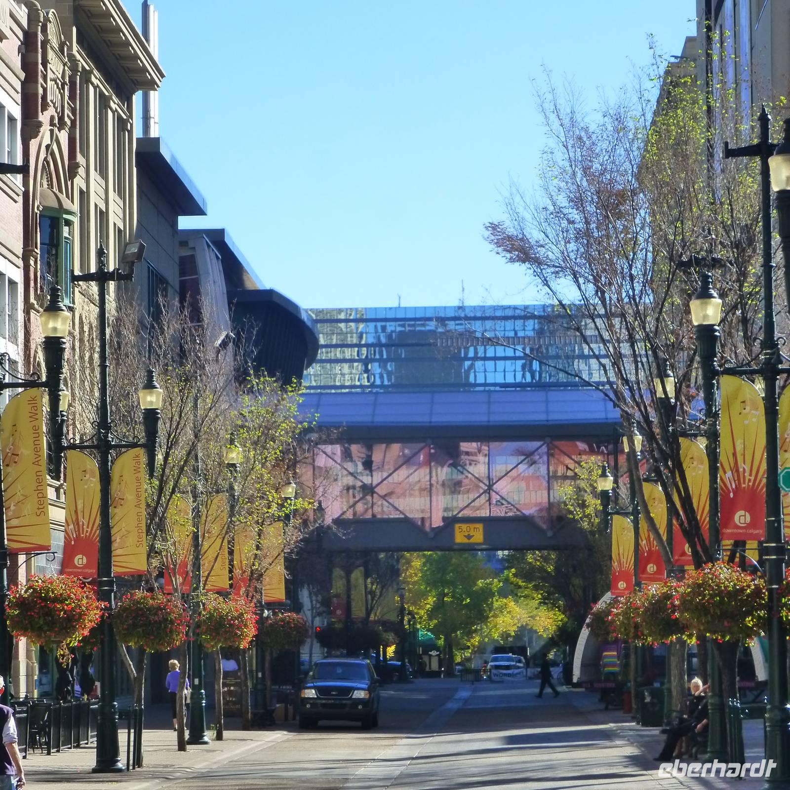 Mit unserem Transfer erreichten alle pünktlich die Flughäfen in Dresden, Leipzig und Berlin. In Frankfurt trafen wir uns am Check-In Schalter und einige Gäste erhielten hier noch ihre Bordkarte nach Calgary. Der Flug verlief ohne Probleme und der Service an Bord war sehr gut. Am Nachmittag erreichten wir die ehemalige Olympia Stadt Calgery. Wir nutzten die Zeit für einen Spaziergang durch Calgary. Wir fahren in die Innenstadt und besuchten den Platz wo zu den Olympischen Winterspielen 1988 die Siegerehrungen stattfanden. Alle Medaillen Gewinner sind dort verewigt. Auch wenn die Geschäfte nicht geöffnet waren bummelten wir die Stephen Avenue entlang und besuchten den Devonian Garten. Eine schöne Anlage mit einem tropischen Garten wo sich die Besucher erholen und entspannen können. Wir erreichen unser Hotel und sind froh unter die Dusche zu kommen. Ein gutes Buffet verwöhnte unseren Gaumen. Endlich schlafen legen.