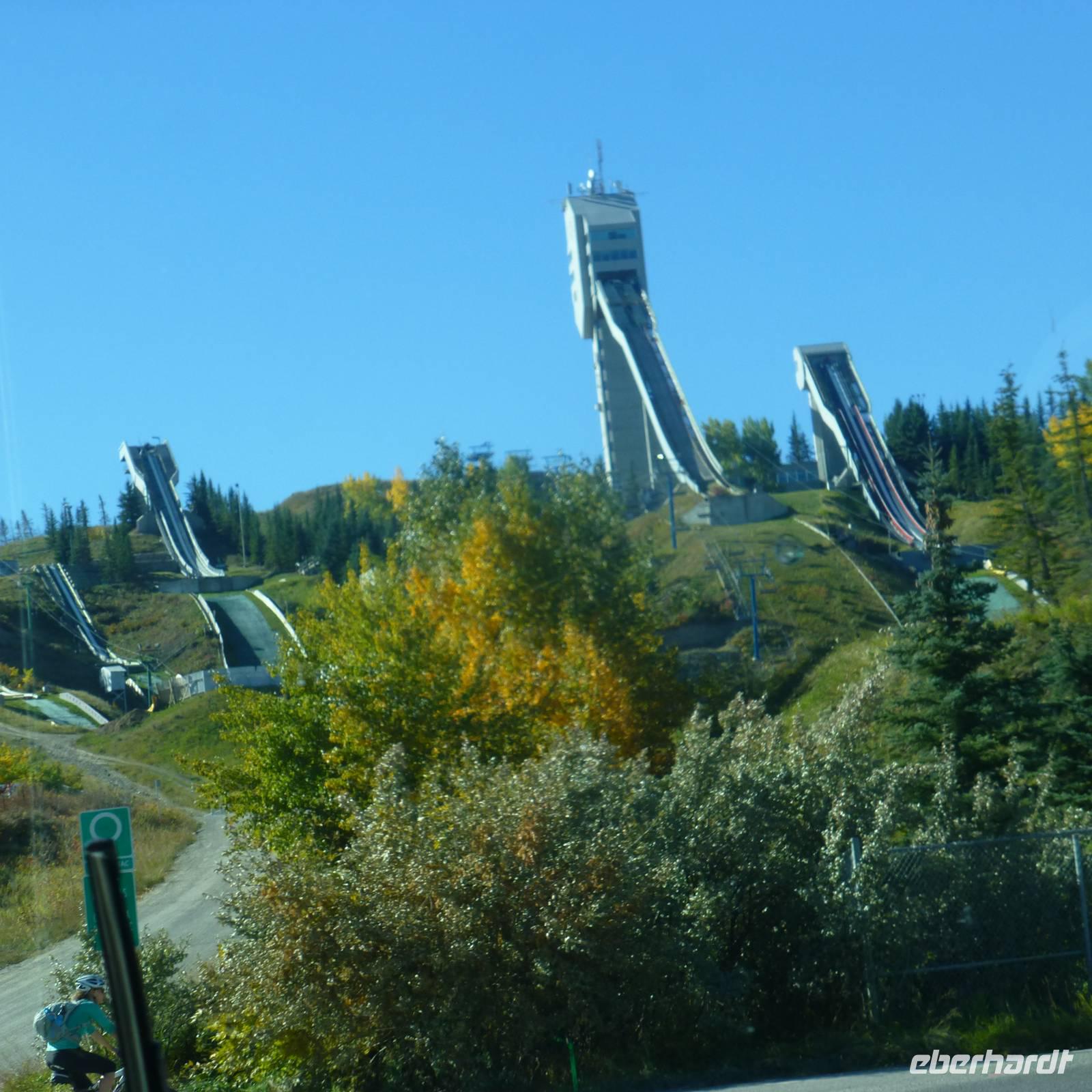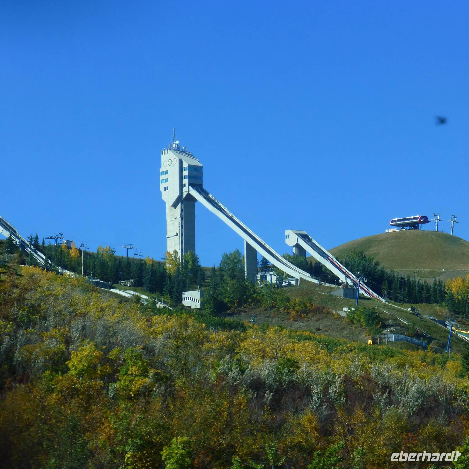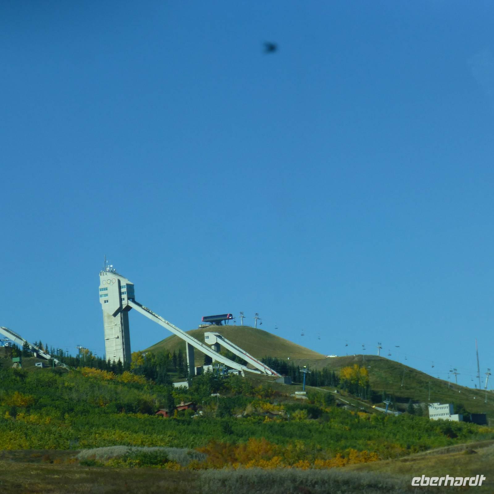 Bevor wir heute in die Rocky Mountains fuhren unternahmen wir noch eine Rundfahrt durch Calgary. Wir fuhren durch China Town und besuchten das alte Fort. Hier wurde 1875 eine hölzerne Festung am Zusammenfluss des Bow und Elbow River gebaut und damit wurde der Grundstein für die Stadt Calgary gelegt. Nun erreichten wir den Calgary Tower. In einer rasanten Fahrt fuhren wir mit dem Fahrstuhl zur Aussichtsplattform in 191m Höhe. Uns erwartete ein phantastischer Rundum Blick bei klarem Himmel, über Calgary bis hin zu den Rocky Mountains. Eine Besonderheit ist der Glasboden von wo man einen Blick in die Tiefe wagen konnte. Bevor wir in die Berge fuhren besuchten wir den Olympic Park. Die Fotoapparate klickten und die Sprungschanzen und die Bobbahn wurden festgehalten. Auch das eine oder andere ließ sich im Bob oder auf der Siegertreppe verewigen. Schon nach kurzer Zeit hatten wir den ersten Blick auf die Berge. Wir setzten unsere Reise auf dem Highway 1 fort und erreichten Banff im gleichnamigen National Park. Es war sehr schönes Wetter und wir entschieden uns spontan für eine Auffahrt mit der Seilbahn auf den Sulpur Mountain - den Schwefelberg. Bei schönen Wetter und gute Sicht konnten wir einen wunderschönen Blick über Banff und die kanadische Bergwelt der Rocky Montains genießen. Einige unternahmen einen Spaziergang über Holztreppen zum Aussichtspunkt. Weiter geht es in die Umgebung von Banff. Zuerst fahren wir zum legendären „Banff Springs" Hotel. Einst war es das größte Luxushotel der Welt. Der Bow Wasserfall ist unser nächstes Ziel. Oberhalb des Bow Flusses bestaunen wir die Hoodoos - eigenartige Sandsteinskulpturen. Nach dem Abendessen besuchten einige den „Bily Salon". An diesem Abend wurde von Country Musik bis Pop alles gespielt. Ein sehr schönes Erlebnis und ein toller Abschluss eines schönen Tages.