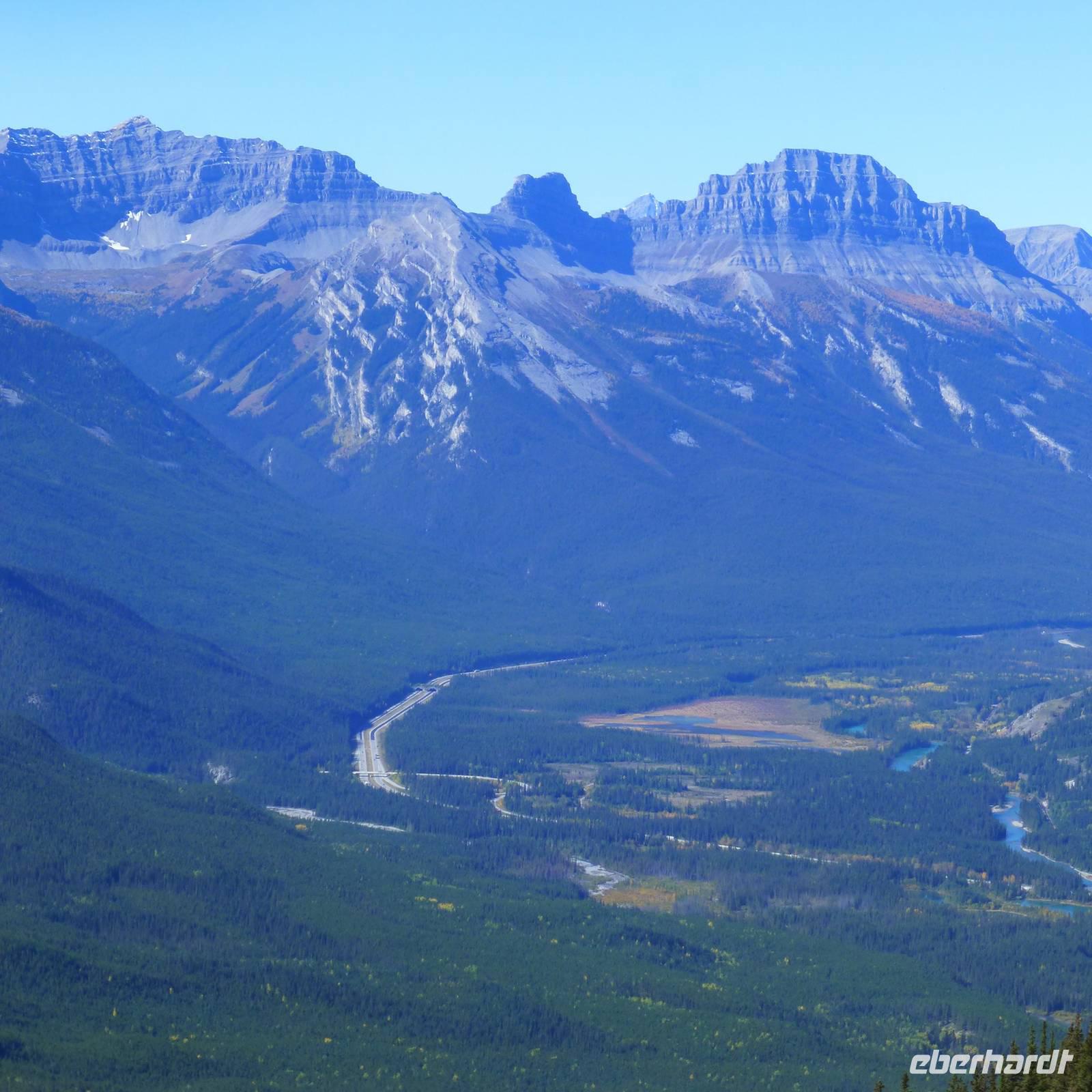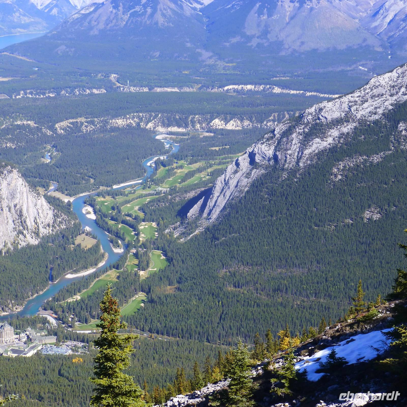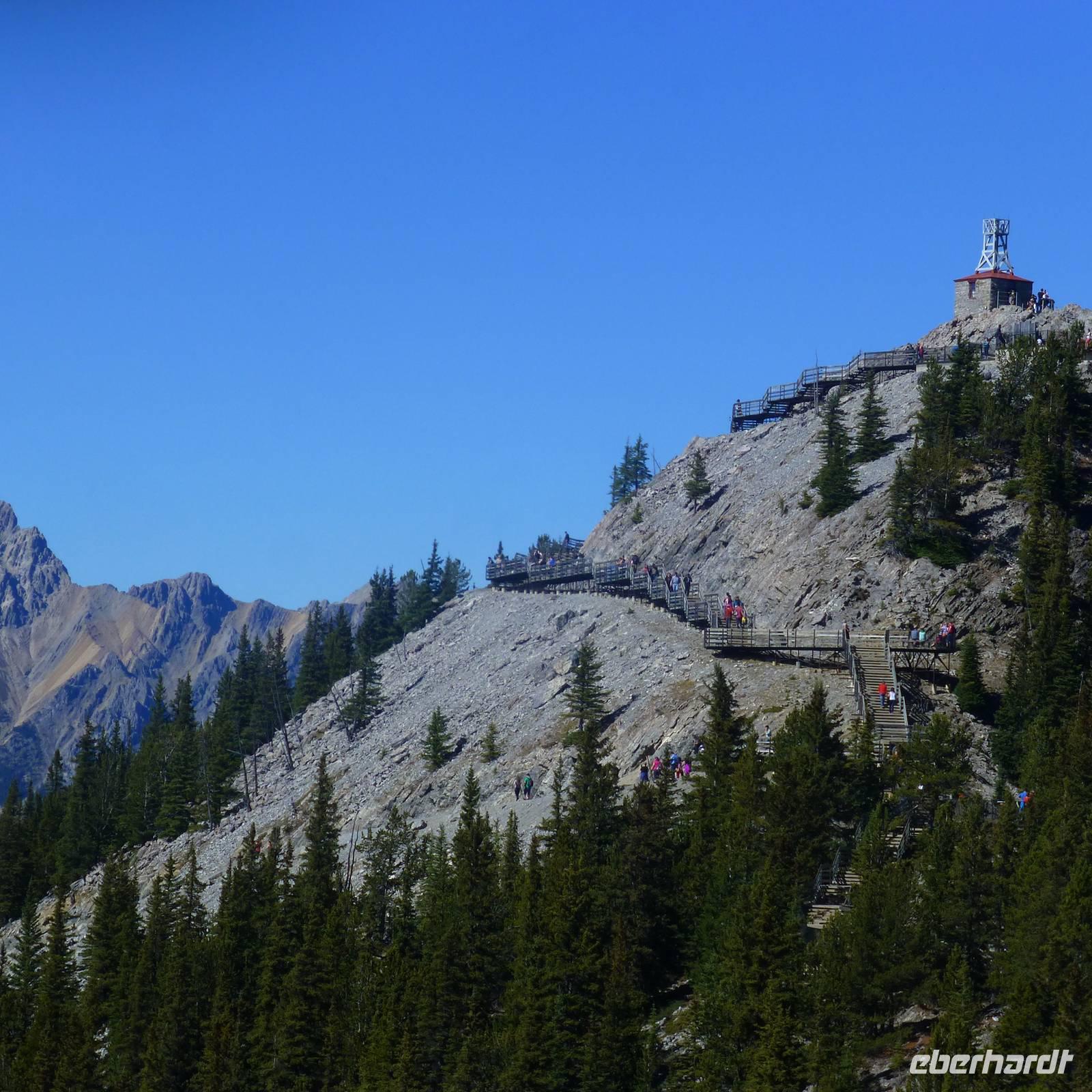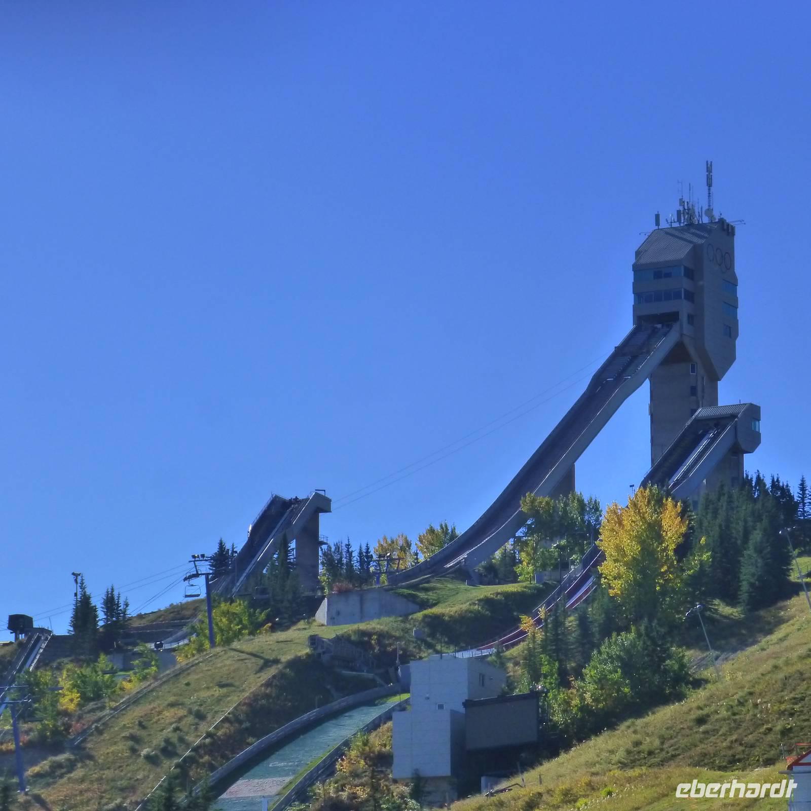 Bevor wir heute in die Rocky Mountains fuhren unternahmen wir noch eine Rundfahrt durch Calgary. Wir fuhren durch China Town und besuchten das alte Fort. Hier wurde 1875 eine hölzerne Festung am Zusammenfluss des Bow und Elbow River gebaut und damit wurde der Grundstein für die Stadt Calgary gelegt. Nun erreichten wir den Calgary Tower. In einer rasanten Fahrt fuhren wir mit dem Fahrstuhl zur Aussichtsplattform in 191m Höhe. Uns erwartete ein phantastischer Rundum Blick bei klarem Himmel, über Calgary bis hin zu den Rocky Mountains. Eine Besonderheit ist der Glasboden von wo man einen Blick in die Tiefe wagen konnte. Bevor wir in die Berge fuhren besuchten wir den Olympic Park. Die Fotoapparate klickten und die Sprungschanzen und die Bobbahn wurden festgehalten. Auch das eine oder andere ließ sich im Bob oder auf der Siegertreppe verewigen. Schon nach kurzer Zeit hatten wir den ersten Blick auf die Berge. Wir setzten unsere Reise auf dem Highway 1 fort und erreichten Banff im gleichnamigen National Park. Es war sehr schönes Wetter und wir entschieden uns spontan für eine Auffahrt mit der Seilbahn auf den Sulpur Mountain - den Schwefelberg. Bei schönen Wetter und gute Sicht konnten wir einen wunderschönen Blick über Banff und die kanadische Bergwelt der Rocky Montains genießen. Einige unternahmen einen Spaziergang über Holztreppen zum Aussichtspunkt. Weiter geht es in die Umgebung von Banff. Zuerst fahren wir zum legendären „Banff Springs" Hotel. Einst war es das größte Luxushotel der Welt. Der Bow Wasserfall ist unser nächstes Ziel. Oberhalb des Bow Flusses bestaunen wir die Hoodoos - eigenartige Sandsteinskulpturen. Nach dem Abendessen besuchten einige den „Bily Salon". An diesem Abend wurde von Country Musik bis Pop alles gespielt. Ein sehr schönes Erlebnis und ein toller Abschluss eines schönen Tages.