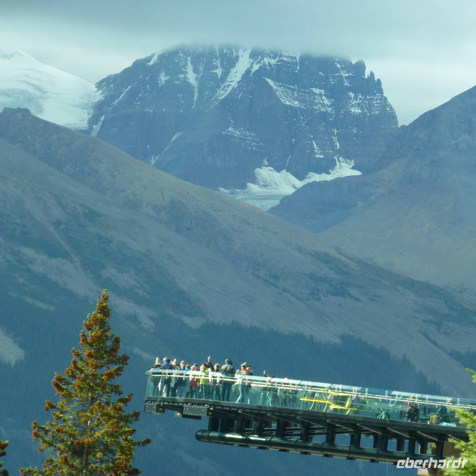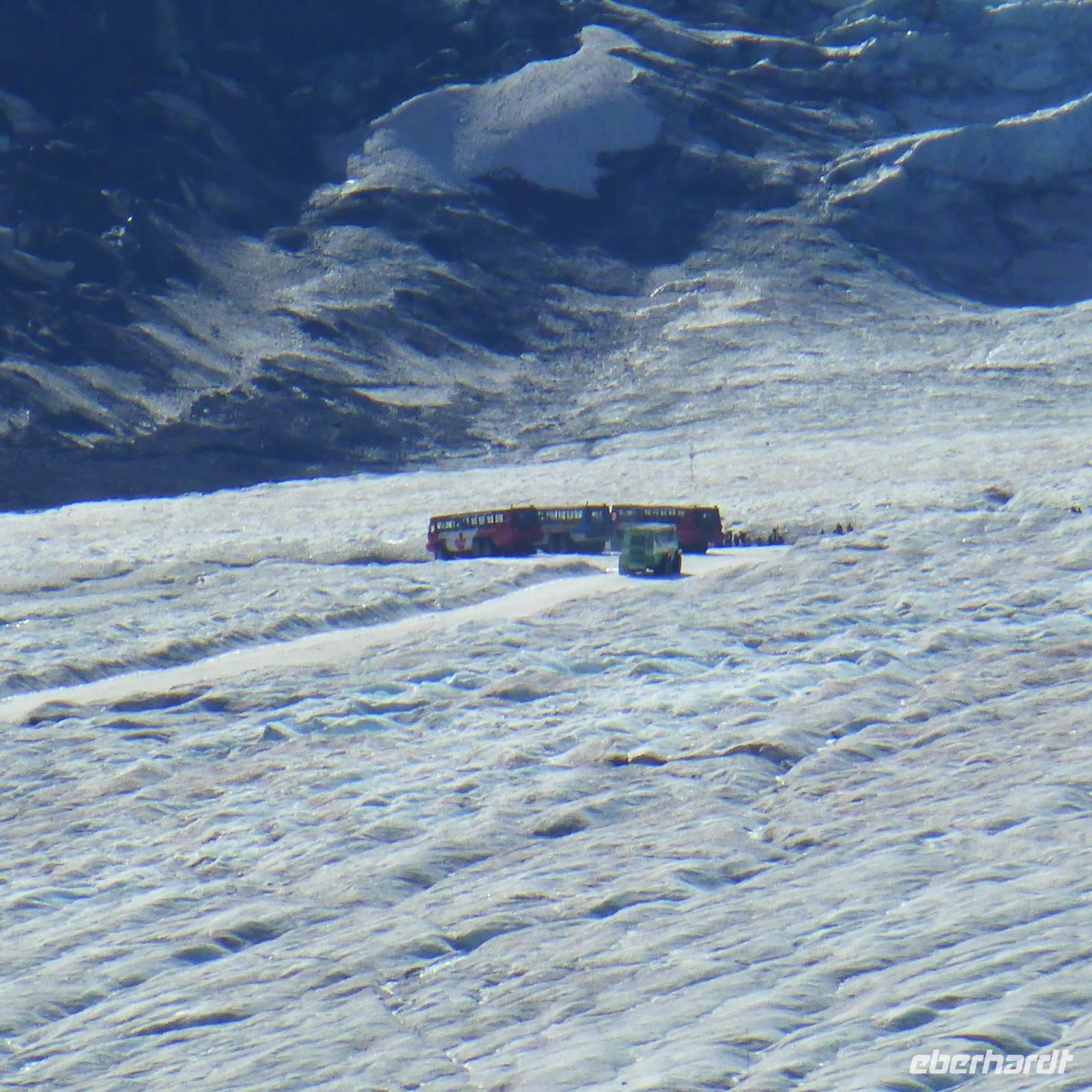 Leider regnete es am Morgen. Deshalb lohnte sich ein kein Stopp am Manowoka See. Wir besuchten den Bow Lacke und unternahmen einen kleinen Spaziergang. Vorbei am Wapitosee erreichten wir einen der schönsten Seen, den Payto Lake. Die Besonderheit ist sein türkisblaues Wasser. Auf dem Icefield Parkway, eine der schönsten Straßen der Welt fuhren wir am Icifiel Parkwächter und weiteren Gletschern vorbei, die nach jeder Kurve erschienen. Wir erreichten das Columbia Icefield. Der Regen hatte sich verzogen und bei blauer Himmel und Sonnenschein lohnte sich die Auffahrt auf das Icefield . Mit einem normalen Bus ging es die Straße bergauf. Mit dem Snowmobil erreichten wir den Athabasca-Gletscher. Es war Zeit zum herum laufen und einige Fotos zu schießen. Vorsicht war geboten, denn das Eis war an manchen Stellen schon sehr weich und einige sind sogar eingebrochen. Es war trotzdem ein tolles Erlebnis. Unser letztes Ziel war der Supawa Wasserfall, der sich in unmittelbarer Nähe unserer Lodge befand. In der Lodge angekommen wurden wir mit einer heißen Schokolade begrüßt. Die Sonne schien und wir nutzten die Gelegenheit uns bei einem gemütlichen Beisammensein und einem Kanadischen Whisky vorzustellen und auf die Reise an zustoßen.