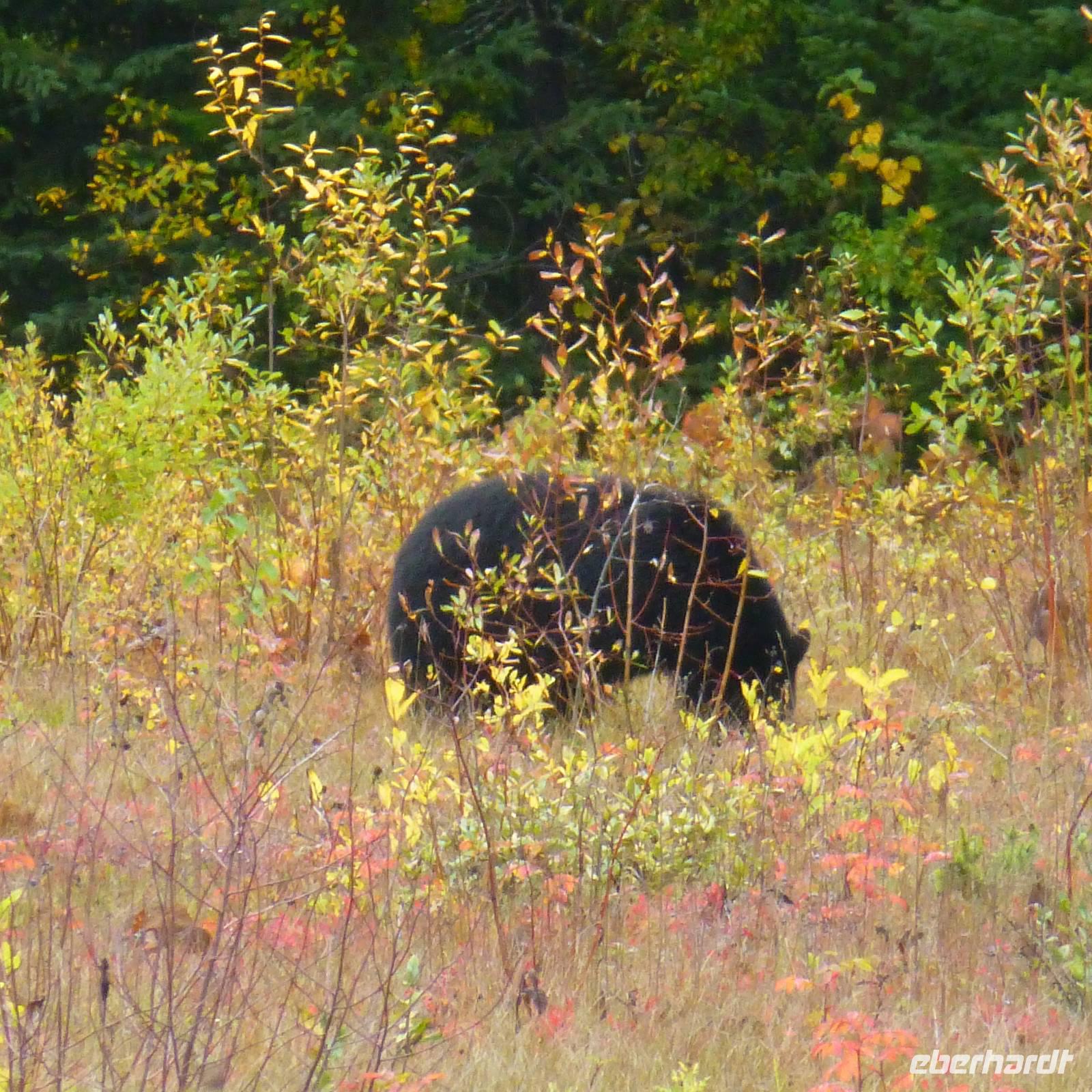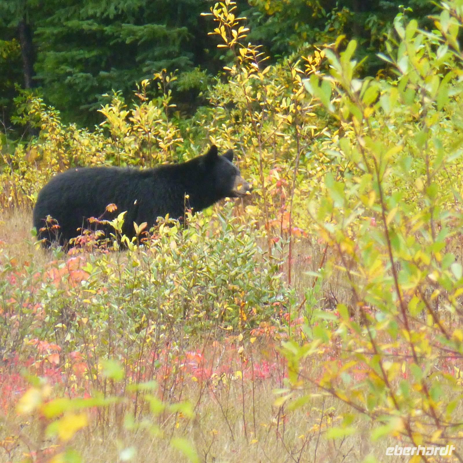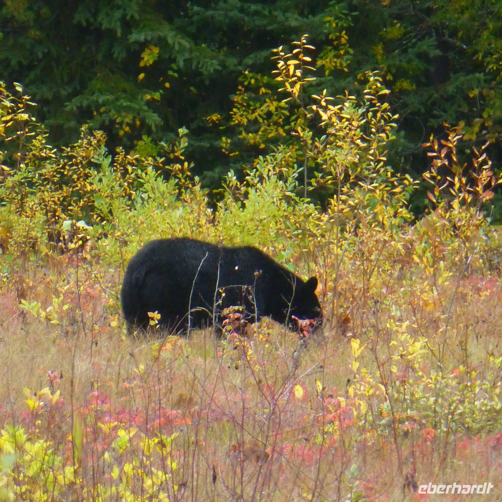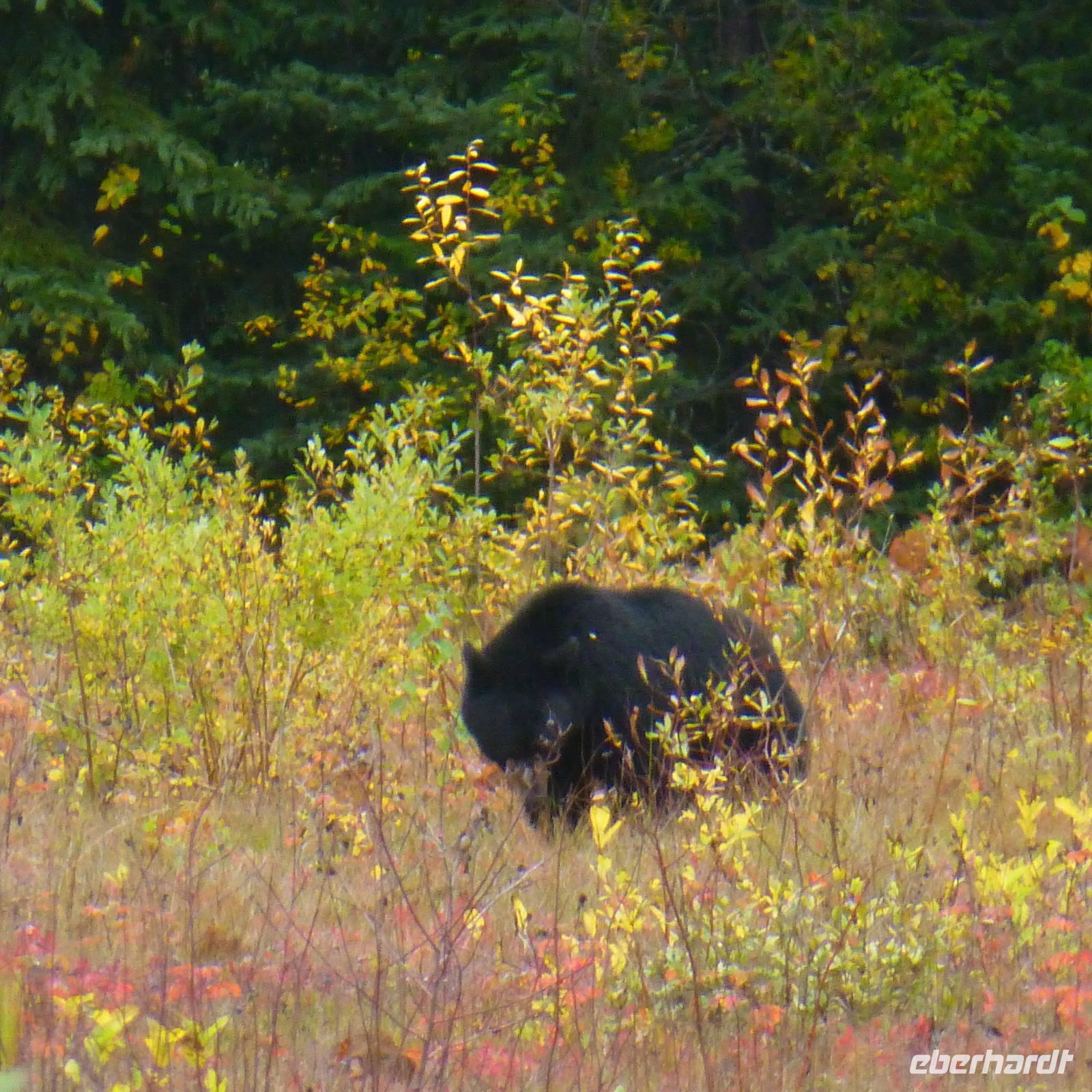 Leider war wieder keine Sonne zu sehen. Unser erstes Ziel waren die Athabasca Wasserfälle. Sehr gewaltig. Der Athabasca Fluss stürzt über einen Felsvorsprung in einen schmalen Canyon in die Tiefe und bahnt sich seinen Weg durch das Felsgestein und stürzt einige Meter in die Tiefe. Man spürte die Kraft des Wassers. Es war sehr beindruckend. Leider fängt es wieder an zu regnen. Wir erreichten Jasper und fuhren zum Patrizia See und weiter zum Pyramiden See. Aussteigen lohnt sich nicht den es lag alles im Regen. Auf dem Yellowhead-Highway fuhren über den Yelloheedpass an die Grenze. Wir verließen Alberta und weiter ging es nach Britisch Columbia. Das bedeutete unsere Uhren noch einmal 1 Stunde zurück zu stellen .Wir erreichten den Mount Robson Provincial Park. Entlang der High Mountain Road fuhren wir über den Fraser River. Vorbei am Moosee kamen wir am Mount Robsen Center an. Plötzlich ein Auflauf - ein Schwarzbär ließ sich nicht aus der Ruhe bringen. Die Kameras klickten ununterbrochen. Weiter ging es zu den Reargard Falls. Hier befindet sich der nördlichste Punkt wohin die Königslachse kommen, wenn sie nach einer langen und anstrengenden Reise versuchen, die Fälle zu überqueren, um zu ihren Laichgründen zu gelangen. Leider waren keine mehr zu sehen. Entlang des Thomsen River fuhren wir in Wieglers Heli Ski Resort. Uns erwarteten tolle Holzhäuser mit mehreren Zimmern und einem gemütlichen Gemeinschaftsraum. Kaffeemaschinen waren auch vorhanden und so ließen wir es uns schmecken. Nach der Kaffeepause spazierten wir zum See und wurden durch eine schöne Laubfärbung überrascht. Nach dem Abendessen in Tonys Grill, wo es die leckersten Steaks der gesamten Reise gab, setzten wir uns noch gemütlich zusammen.