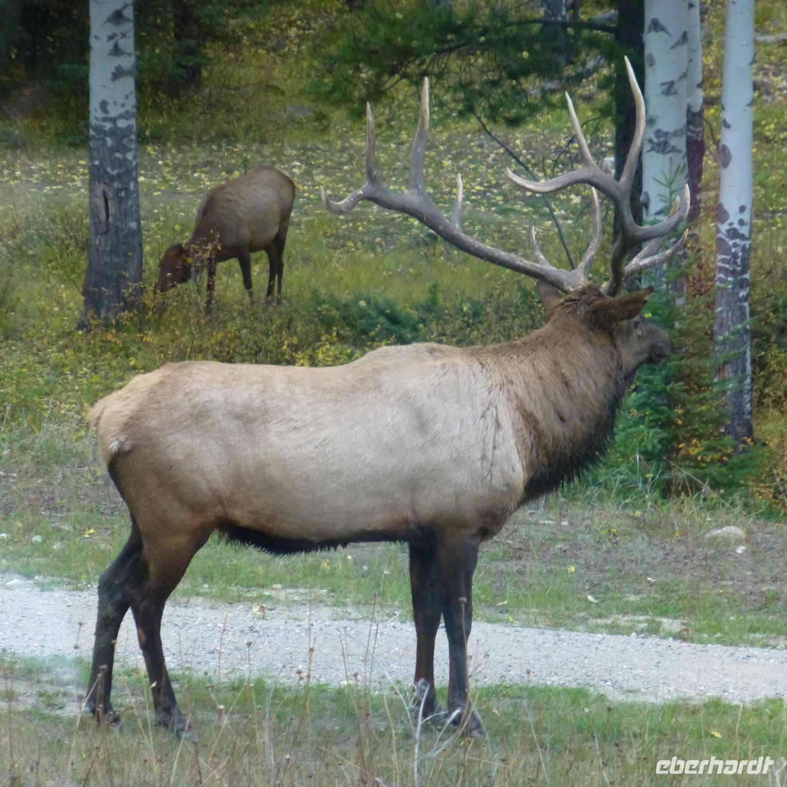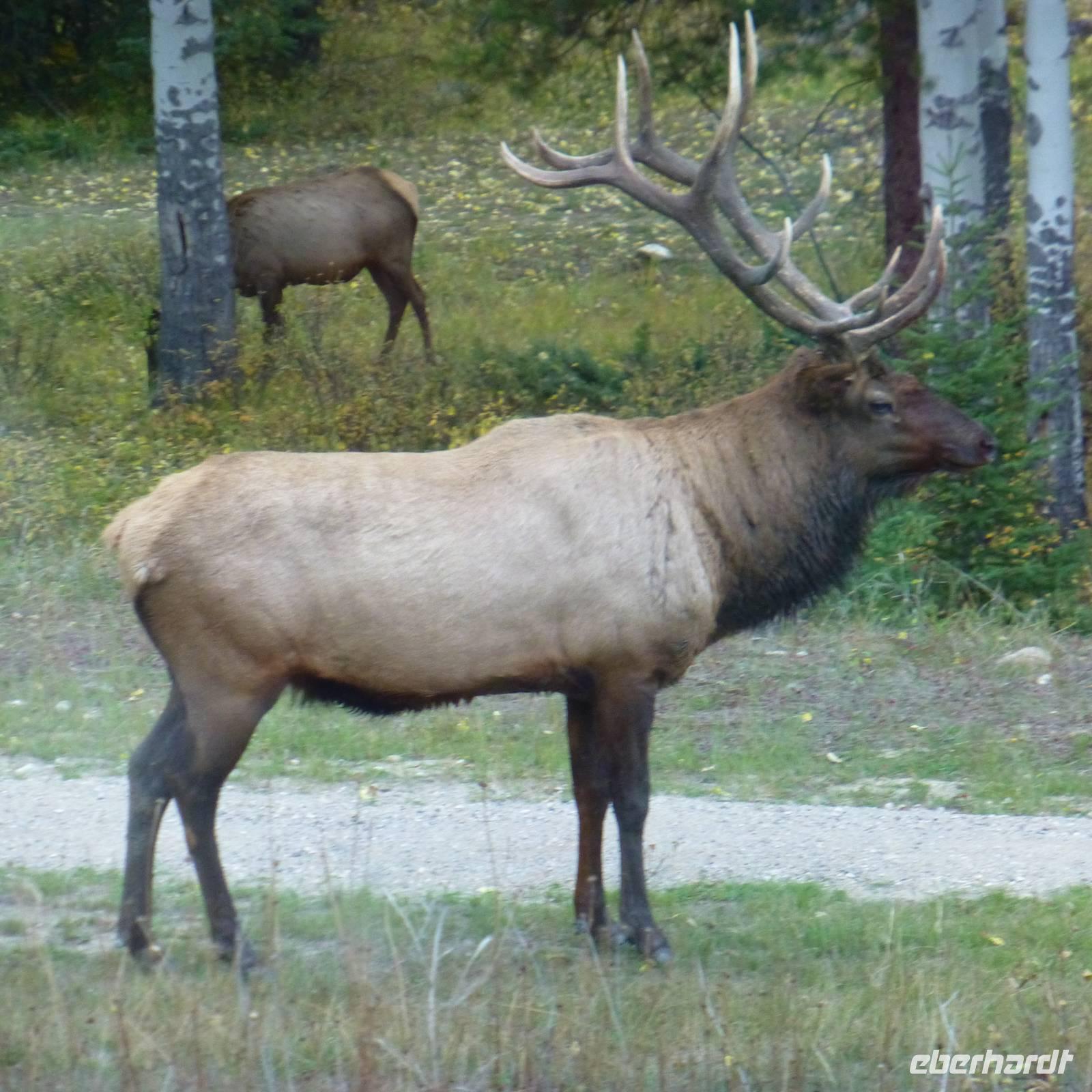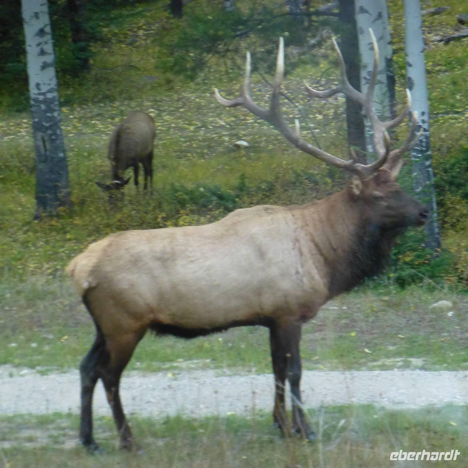 Der Blick aus dem Zimmer leichter Regen und bewölkt. Entlang am Atabaca Fluss fuhren wir in die Eisenbahnerstadt Jasper. Es wurde langsam heller und der blaue Himmel kam zum Vorschein. Auf der der Maligne Lake Road erreichten wir die Maligne Canyon. Er ist 50 Meter tief. Wir unternahmen einen Spaziergang auf dem Rundweg bis zum Teehaus. Endlich konnten wir wieder zum Shopping gehen. Weiter ging unsere Reise vorbei am Mediziensee zum Maligne Lake. Doch hier hatten wir schlechtes Wetter. Wir spazierten entlang des Sees und im Restaurant legten wir unser Mittagspause ein. Zurück in Jasper bummelten wir durch die Stadt. In einem Pub kehrten wir auf ein Getränk ein. In gemütlicher Runde ließen wir es uns schmecken. Auf der Rückfahrt in unsere Lodge hatten wir Glück. Einige Wapitihirsche tummelten sich am Straßenrand. Den Abend ließen wir bei einem gemeinsamen Zusammensein in der Lodge ausklingen.