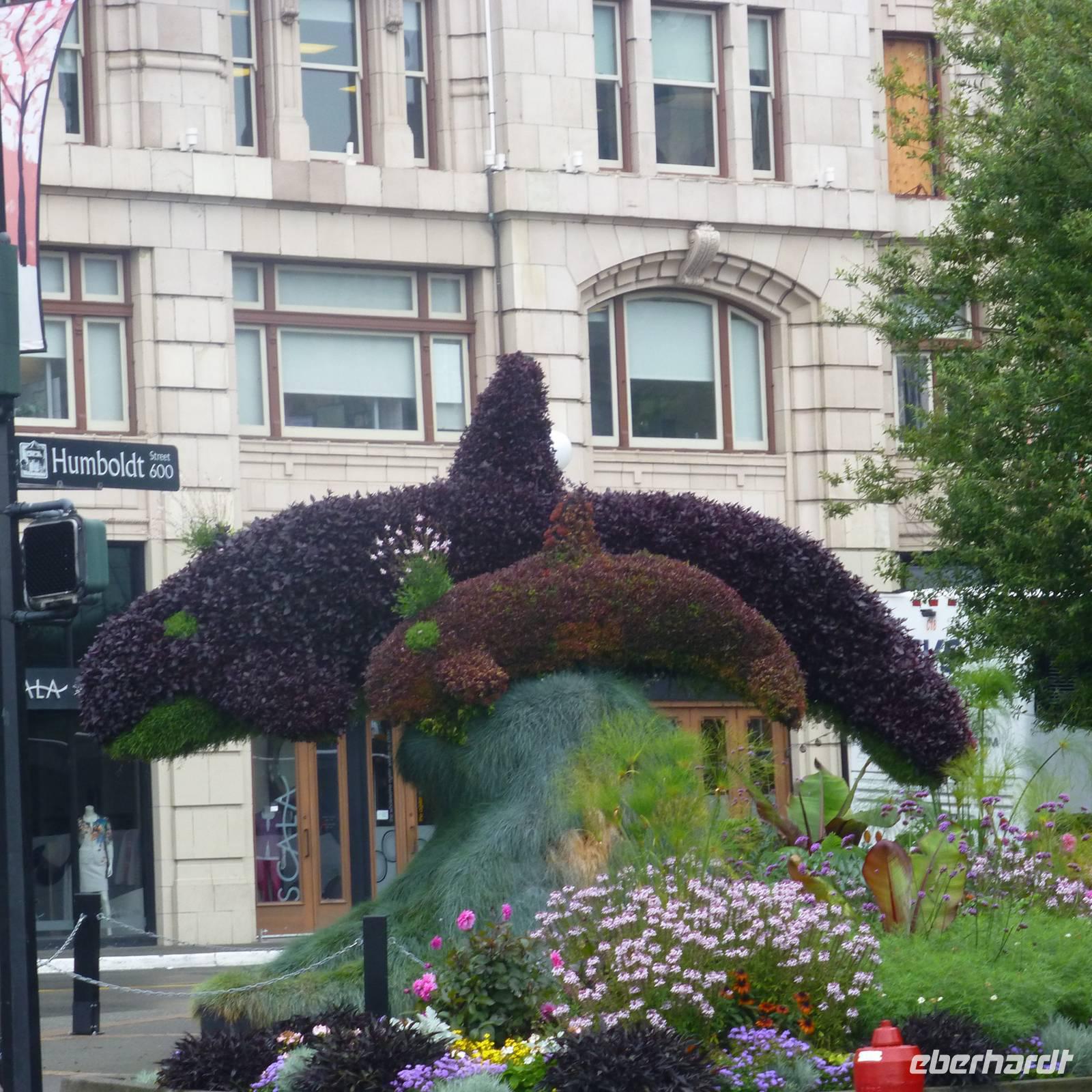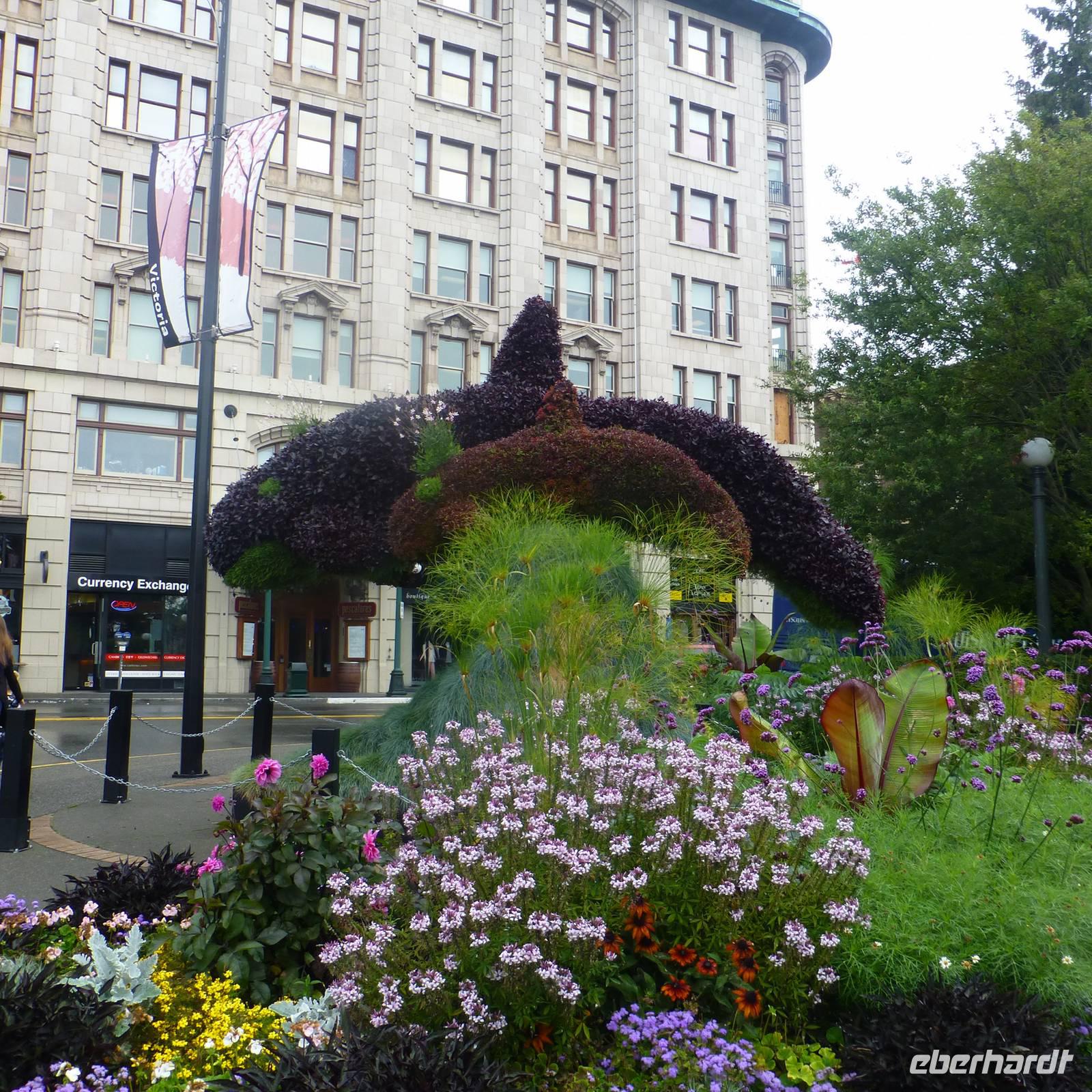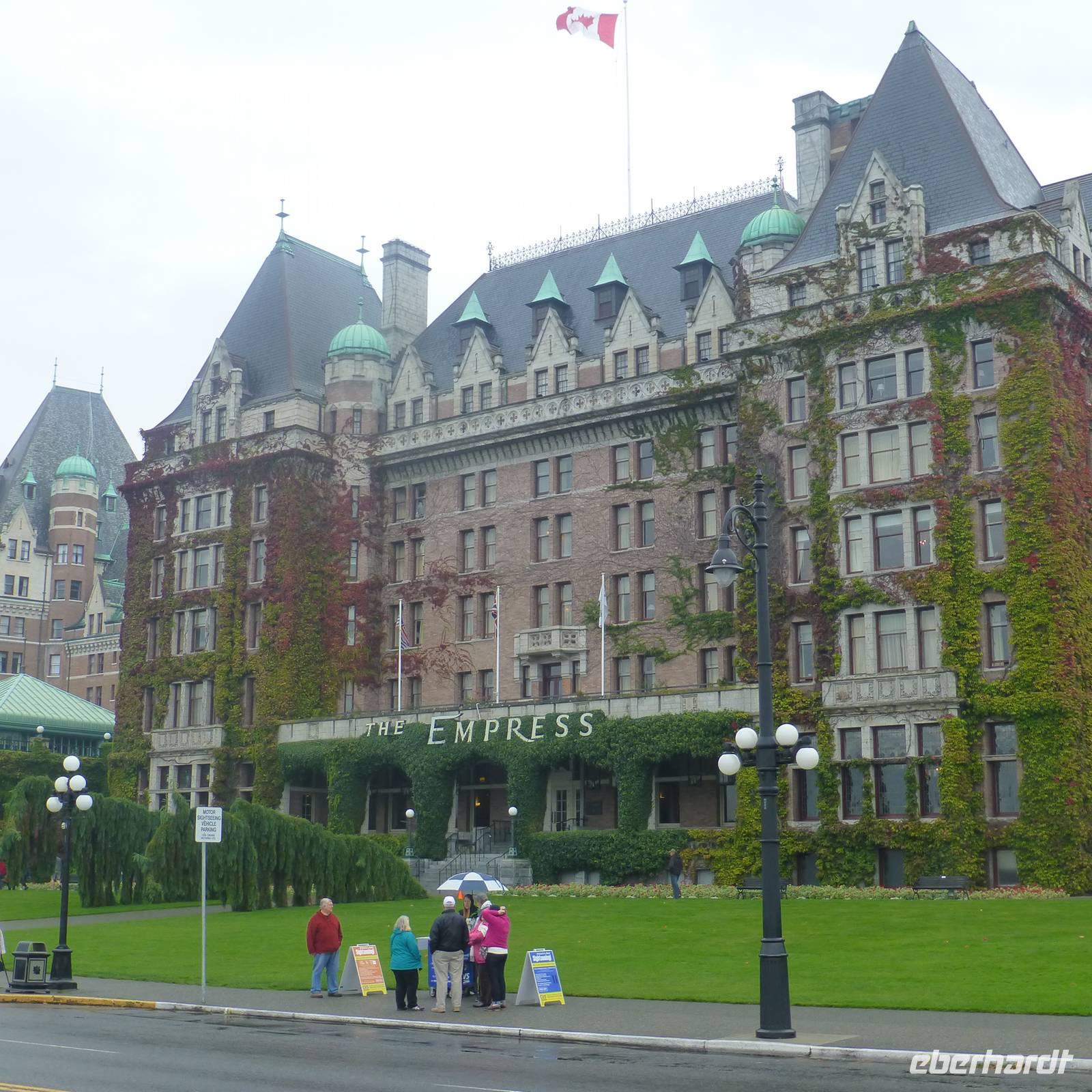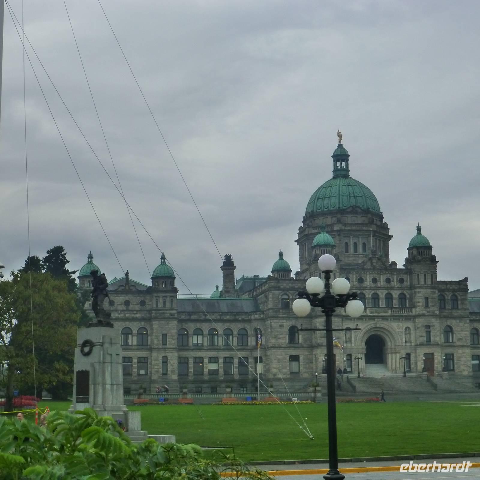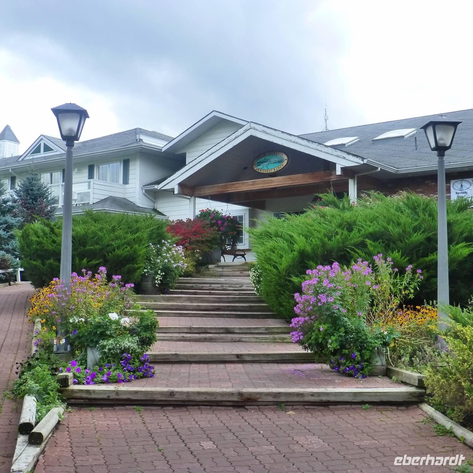 Heute besichtigten wir die schöne Stadt Viktoria, die uns irgendwie an England erinnert. Mit dem Bus fuhren wir durch das Villenviertel und erreichten den Null Punkt. Unser Stadtrundgang fand leider im Regen statt. Entlang der Küste auf einer Straße wo sehr schöne Häuser zu sehen waren, fuhren wir auf der Malahat Strasse - eine schöne Bergstraße nach Chamain. Wir bewunderten die 38 Wandgemälde, die das Leben in der Vergangenheit zeigten. Plötzlich löste sich der Nebel und die Sonne kam zum Vorschein. Wir fahren durch vorbei an Mill Bay in das sehr fruchtbare Cowichan Tal und waren überrascht das hier auch Wein angebaut wird. Benannt wird das Tal nach den Cowichan Indianer. Immerhin leben hier noch 6000 Indianer. Über Duncan, die Stadt der Totempfähle und Naimo erreichten wir unser Hotel in Parksville.