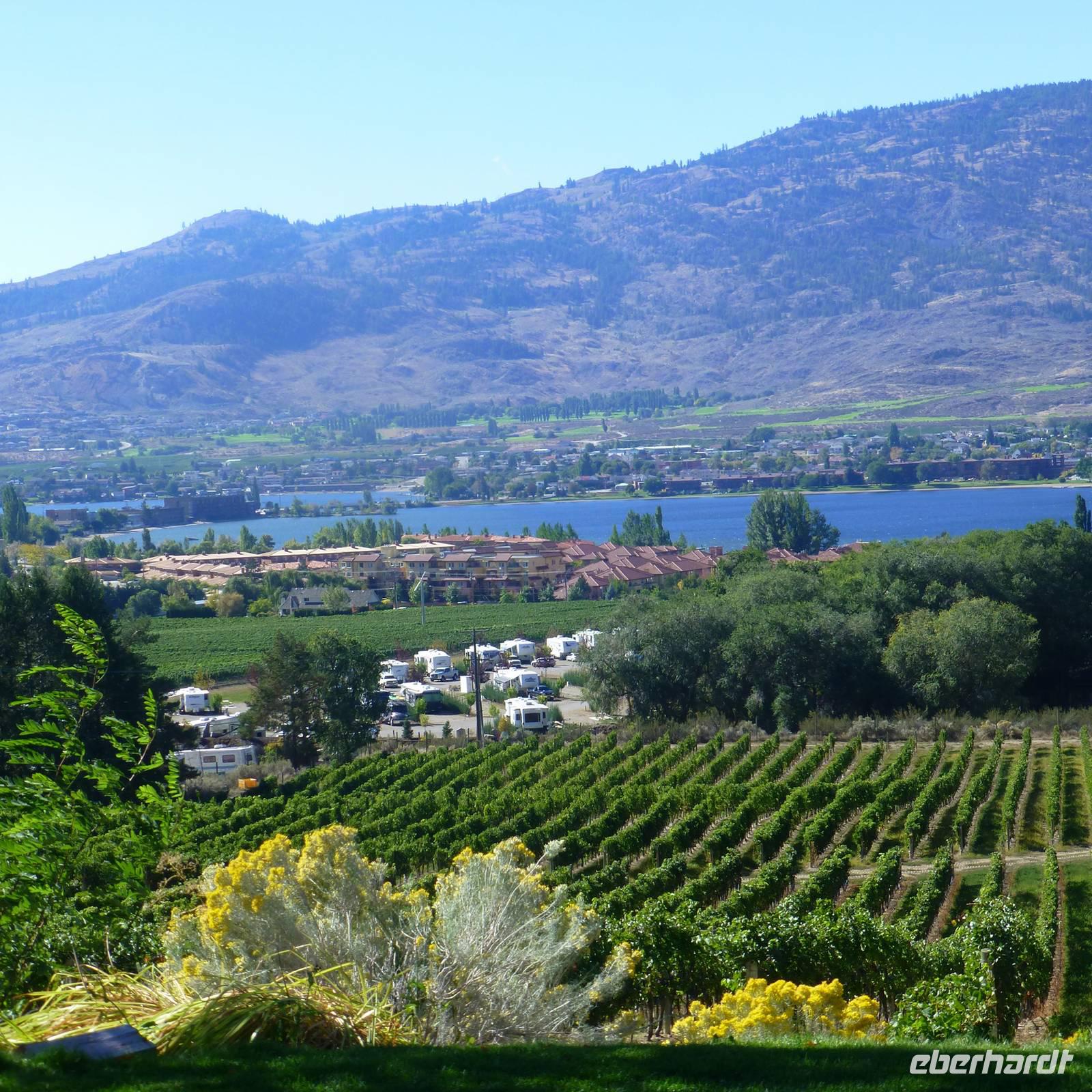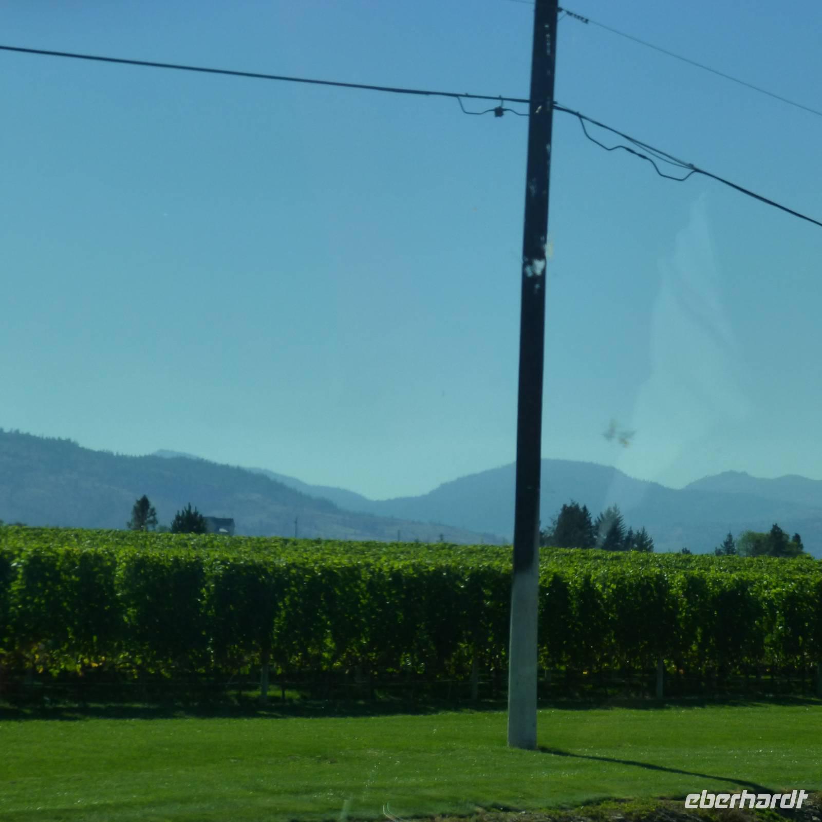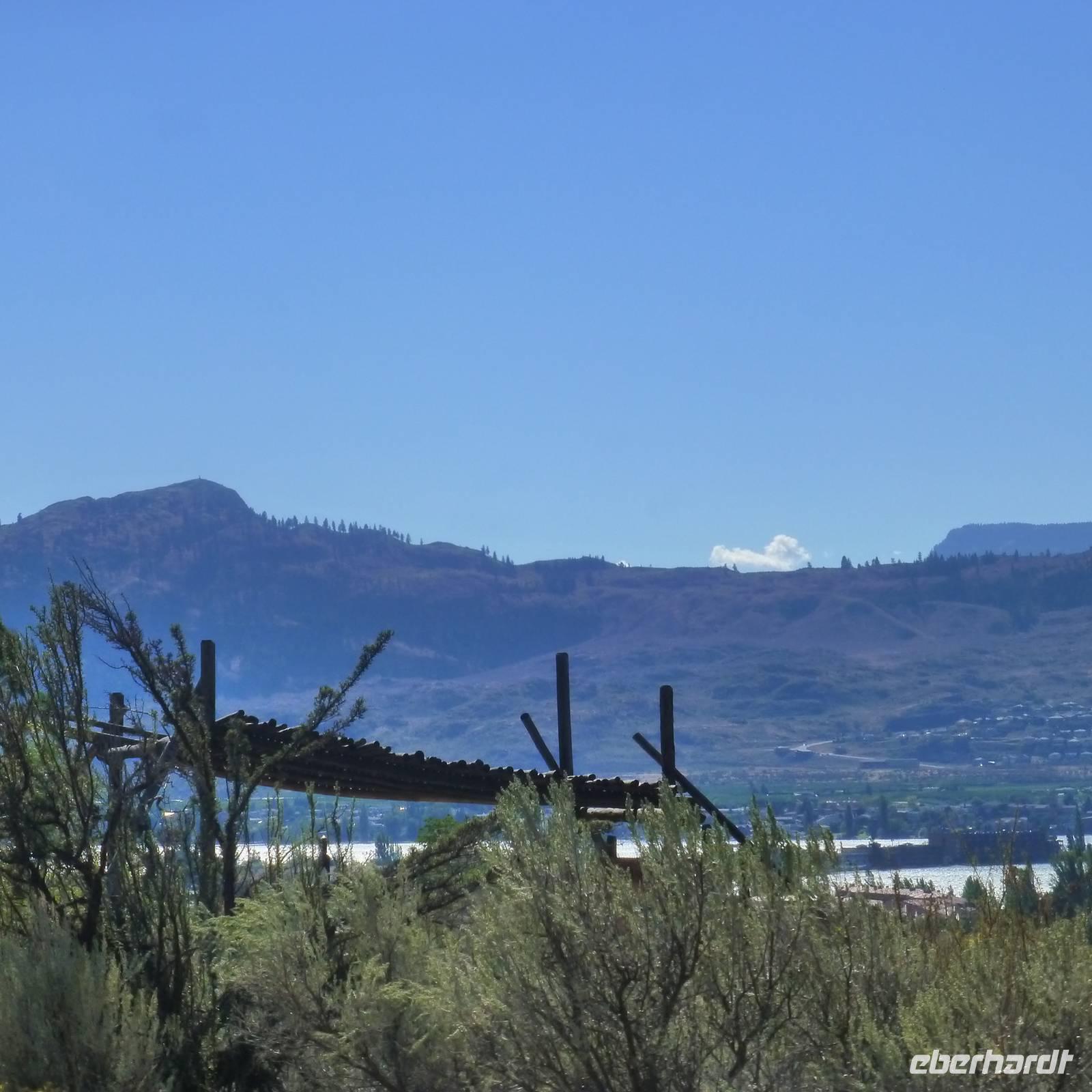 Am Morgen unternahmen wir einen Spaziergang am Okanakan See. Nach einer schönen Fahrt entlang des Sees waren wir schon in der Okanakan Wein Region. Passend dazu kam die Sonne zum Vorschein. Wir fahren weiter auf der Weinroute nach Penticton, der Hauptstadt des Pfirsichs. Vorbei am Skaha See - der durch einen Kanal mit dem Okanakansee verbunden ist, und einer sehr schönen hügelischen Landschaft mit vielen Weinbergen und Weingütern, sowie dem Okanakan Falls und dem Vaseux See erreichten wir Oliver die Weinhauptstadt Kanadas. Im Nk'mip Weingut wurden wir schon zu einer Führung und einer Weinverkostung erwartet. Jeweils zwei Weiß und zwei Rotweine sowie ein Eiswein ließen wir uns munden. Auf der Terrasse des Restaurants wurde uns das Mittagessen, mit einem fantastischen Blick über den Oosyoos See, gereicht. Gut gestärkt ging es in die einzige Wüste Kanadas. Wir besuchten das Nk'mip Desert Cultur Center. Denise eine Indianerin, führte uns durch das Indianerzentrum. Dabei erfuhren wir einiges über die Lebensweise der Indianer damals und heute sowie über einige Pflanzen und Tiere. Im hoteleigenen Pub ließen wir den Tag ausklingen.
