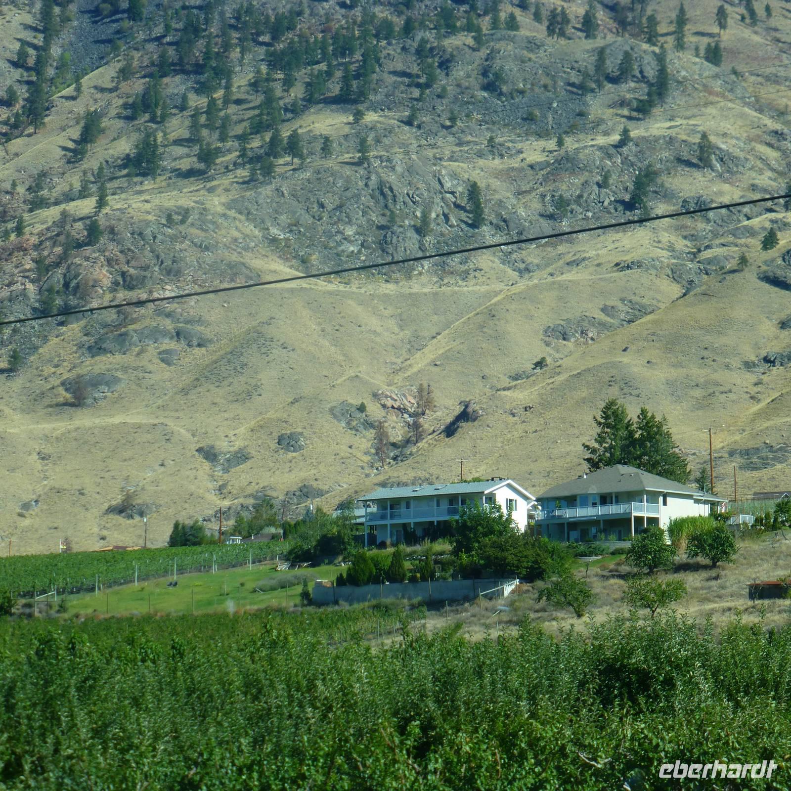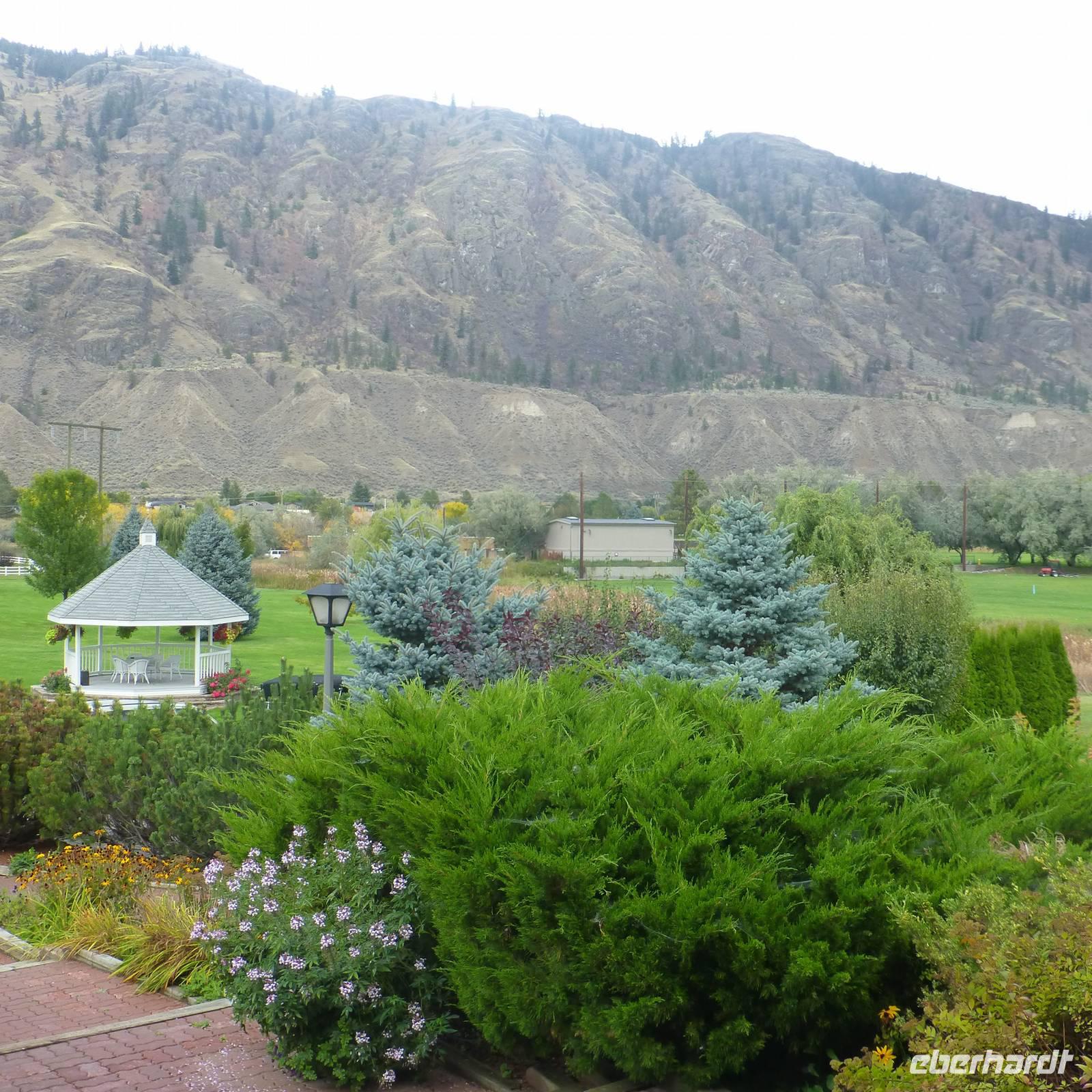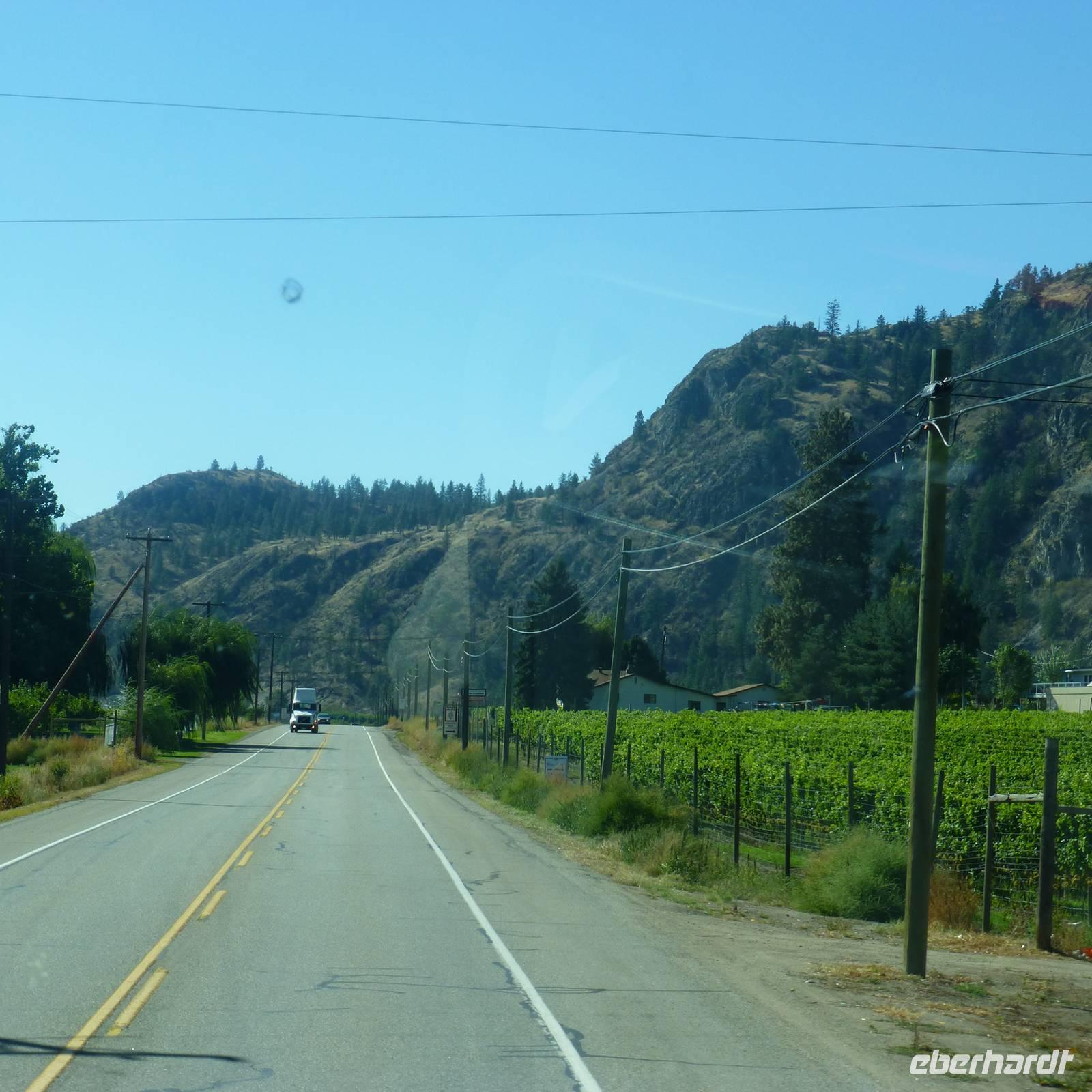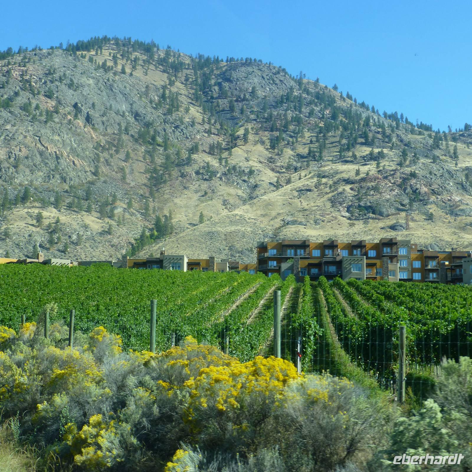 Am Morgen unternahmen wir einen Spaziergang am Okanakan See. Nach einer schönen Fahrt entlang des Sees waren wir schon in der Okanakan Wein Region. Passend dazu kam die Sonne zum Vorschein. Wir fahren weiter auf der Weinroute nach Penticton, der Hauptstadt des Pfirsichs. Vorbei am Skaha See - der durch einen Kanal mit dem Okanakansee verbunden ist, und einer sehr schönen hügelischen Landschaft mit vielen Weinbergen und Weingütern, sowie dem Okanakan Falls und dem Vaseux See erreichten wir Oliver die Weinhauptstadt Kanadas. Im Nk'mip Weingut wurden wir schon zu einer Führung und einer Weinverkostung erwartet. Jeweils zwei Weiß und zwei Rotweine sowie ein Eiswein ließen wir uns munden. Auf der Terrasse des Restaurants wurde uns das Mittagessen, mit einem fantastischen Blick über den Oosyoos See, gereicht. Gut gestärkt ging es in die einzige Wüste Kanadas. Wir besuchten das Nk'mip Desert Cultur Center. Denise eine Indianerin, führte uns durch das Indianerzentrum. Dabei erfuhren wir einiges über die Lebensweise der Indianer damals und heute sowie über einige Pflanzen und Tiere. Im hoteleigenen Pub ließen wir den Tag ausklingen.