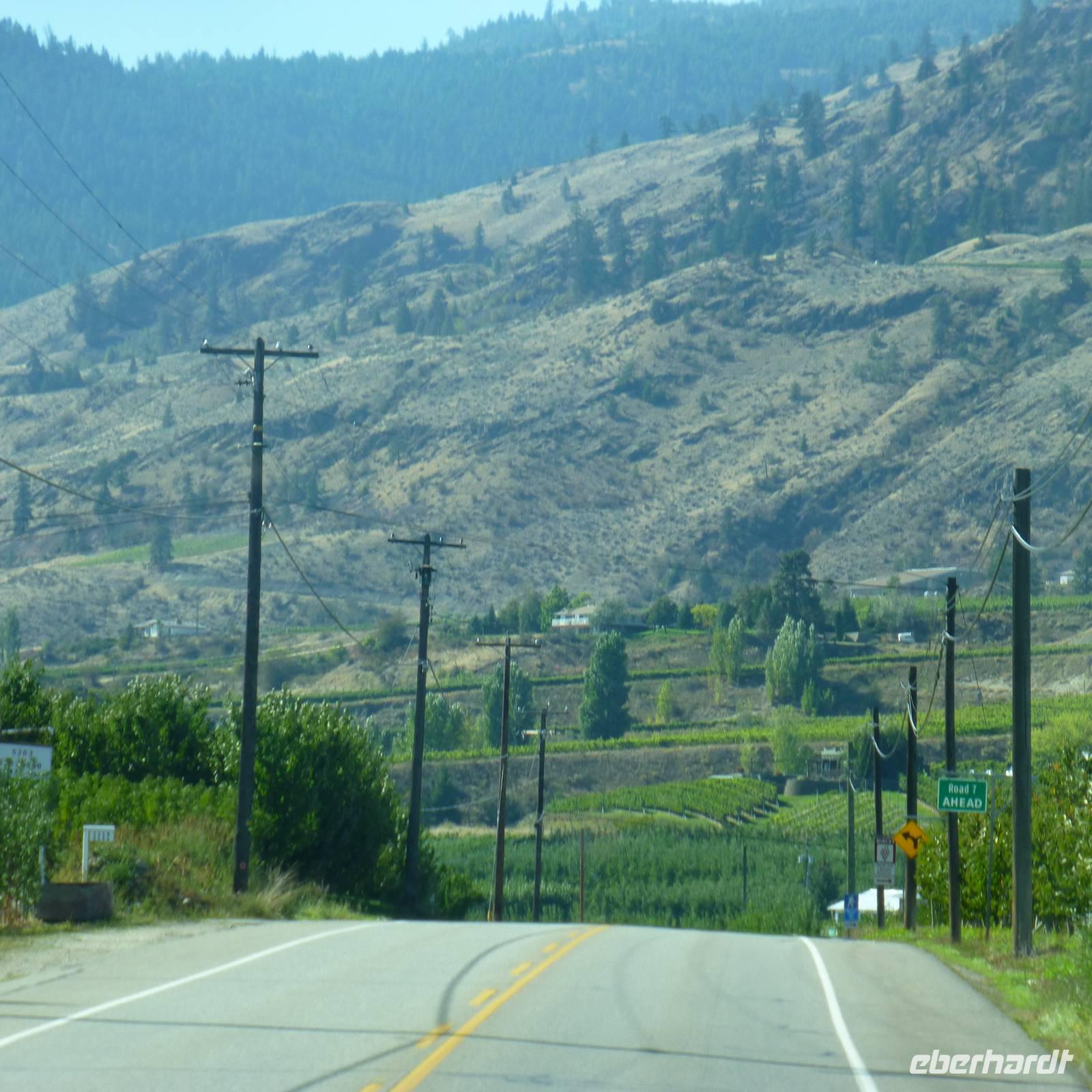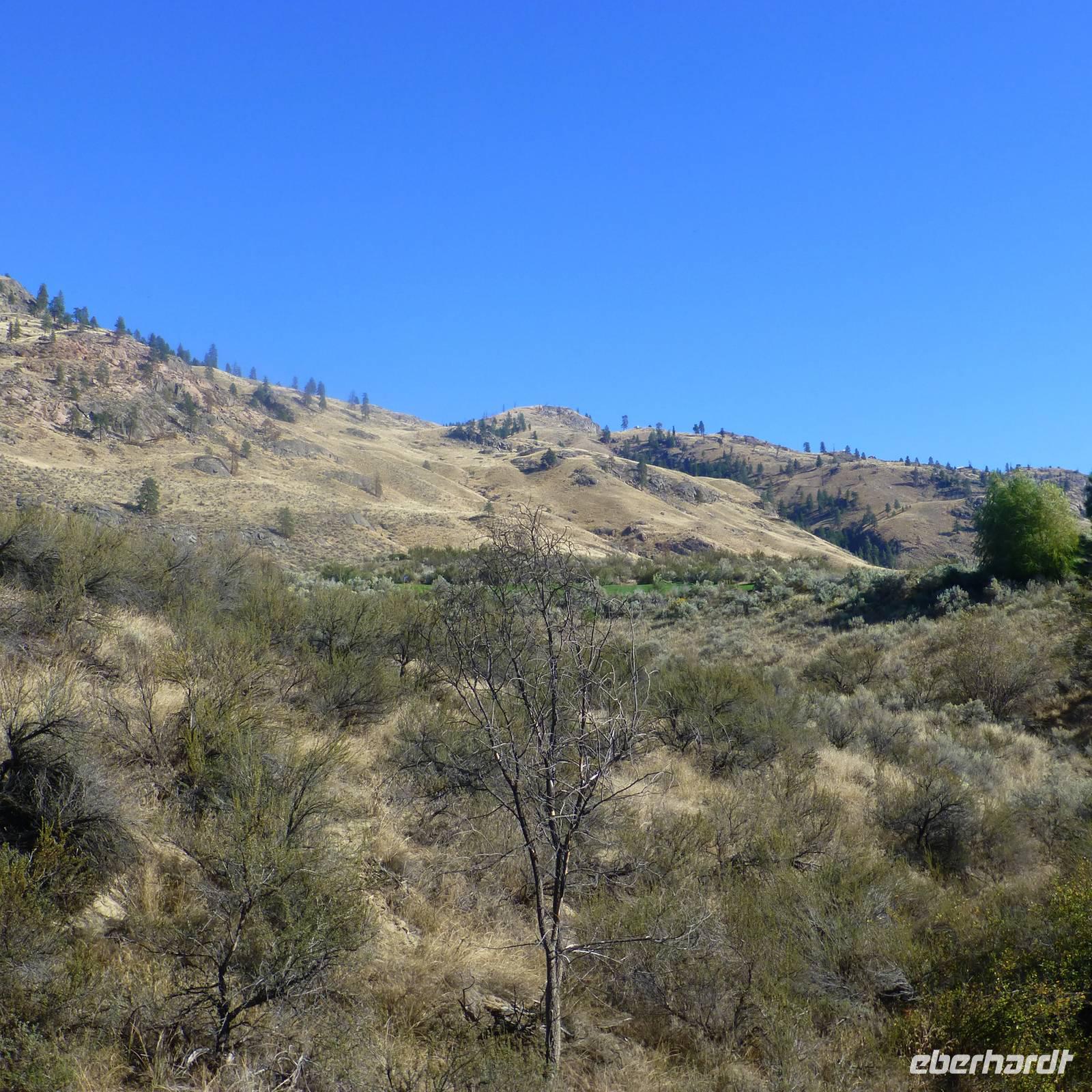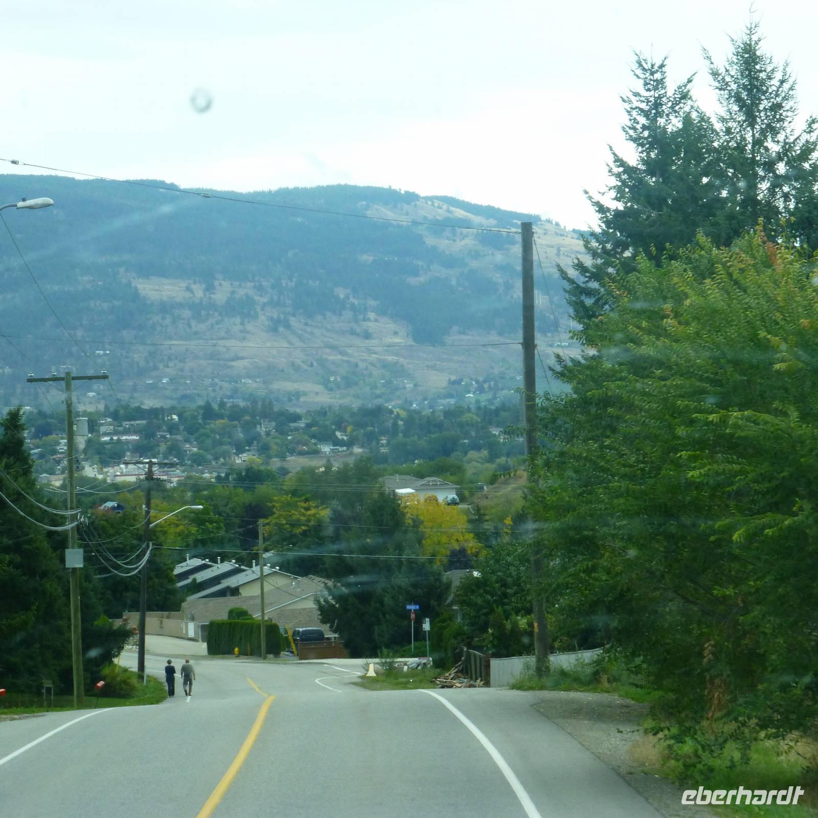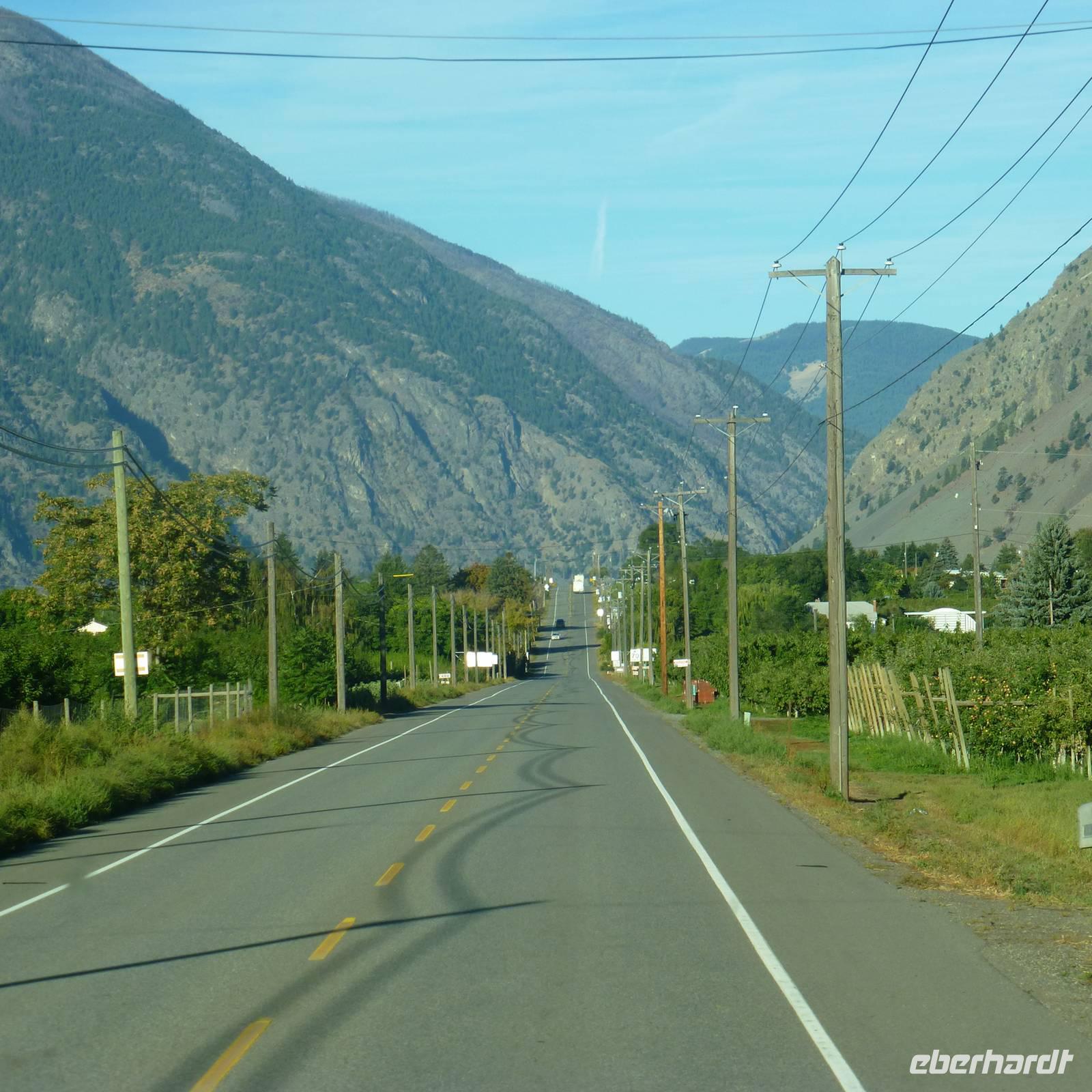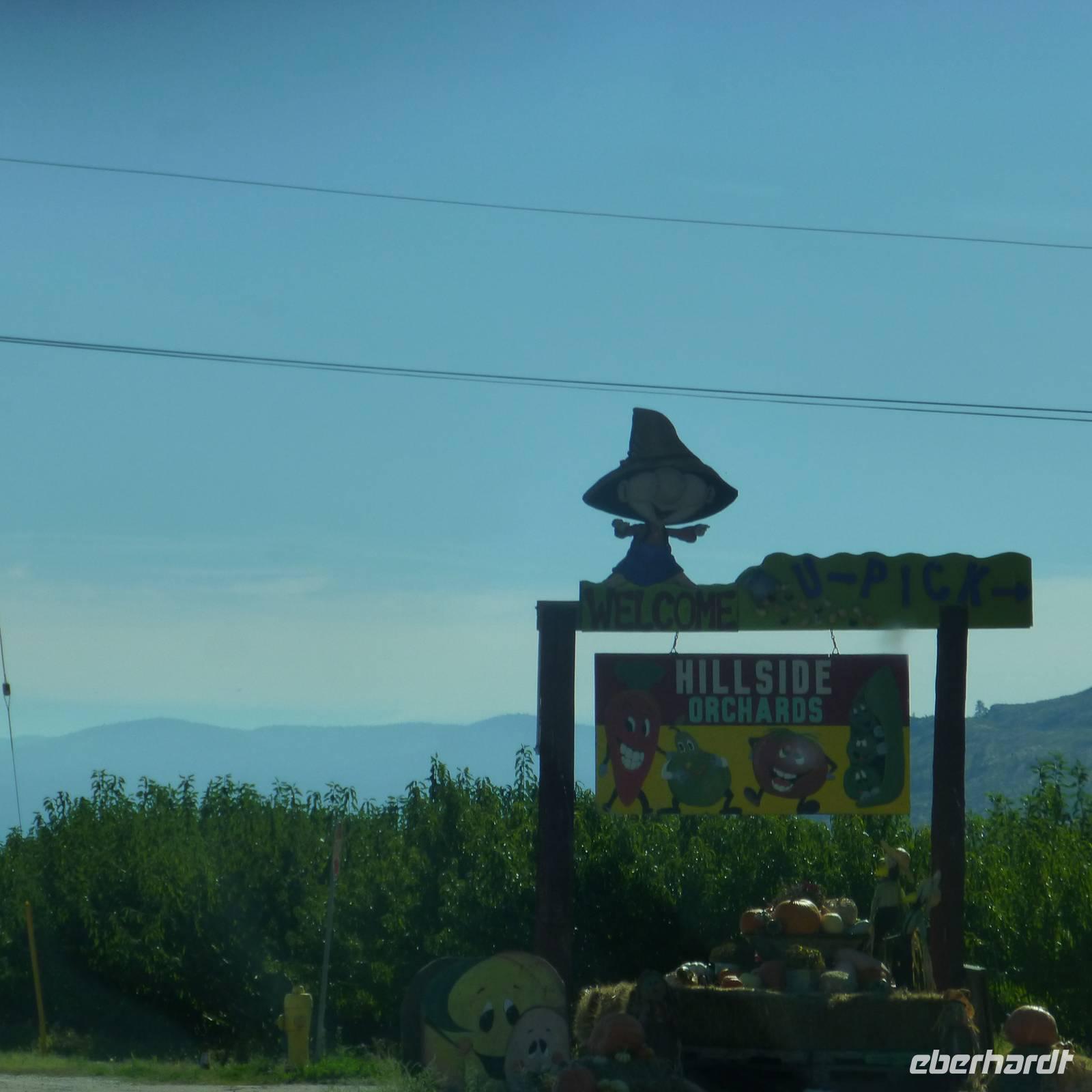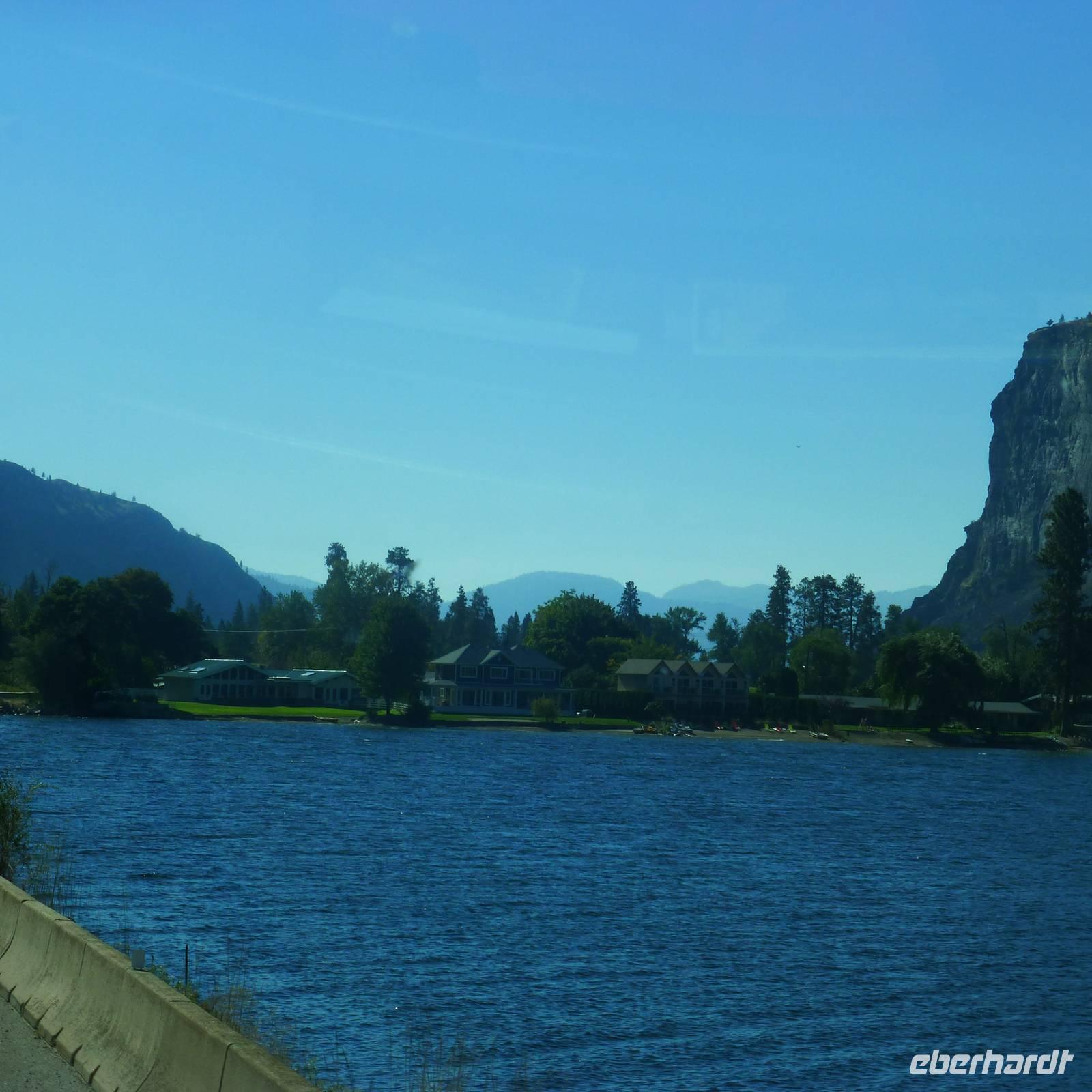 Das Frühstück wurde uns wieder in Tonys Grill gereicht. Auf dem Weg nach Kamlops zeigte sich der erste blaue Himmel. Wir erreichten Clearwater und den Spahats Wasserfall. Im Information Center kauften wir uns noch eine Landkarte um unseren Reiseverlauf fest zu halten. Nun kamen wir langsam in das Ranchgebiet. Erste Rinderherden und Ginseng Felder waren zu sehen. Die Berge wurden niedriger und wir erreichten Barrier. Vor einigen Jahren war diese Stadt bekannt durch einen verheerenden Waldbrand. Die Stadt musste damals evakuiert werden. Überall waren verbrannte Berge zu sehen. In Kamlops fuhren wir an einem Indianerreservat mit einem POW WOW Gelände vorbei. In der South Thomsen Rang legten wir unsere Mittagspause ein und setzten anschließend unsere Fahrt nach Wilhelms fort. Wir näherten uns dem Okanakental. Bekannt durch den Obstanbau. Vor allem werden hier Äpfel, Birnen, Pflaumen und Pfirsiche angebaut. Verschiedene Obststände standen entlang der Straße. Nach kurzem Halt kauften auch wir einiges Obst ein. Unser nächstes Ziel war der Kalamalka See.