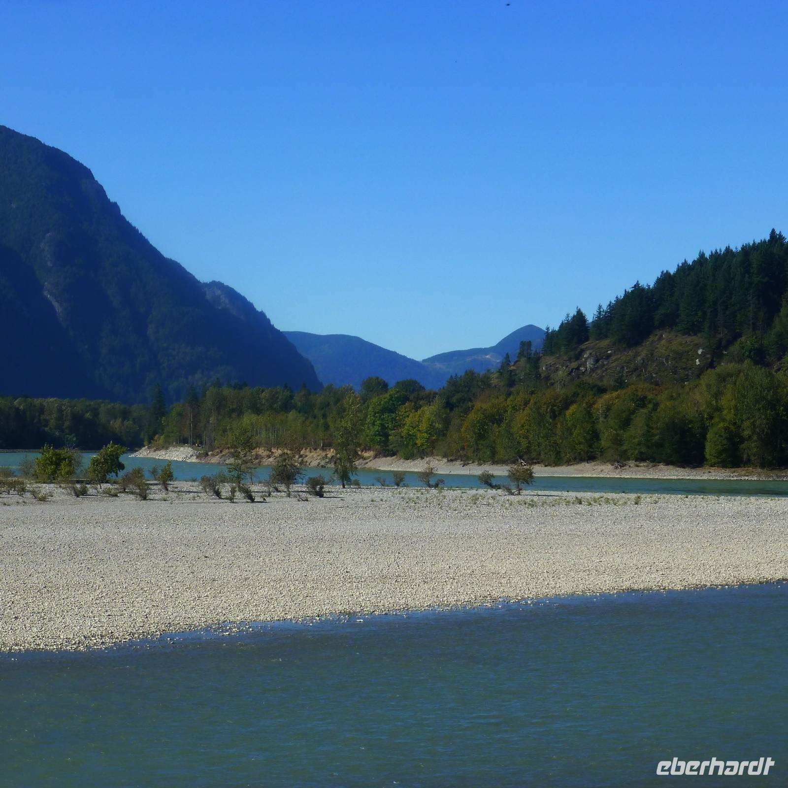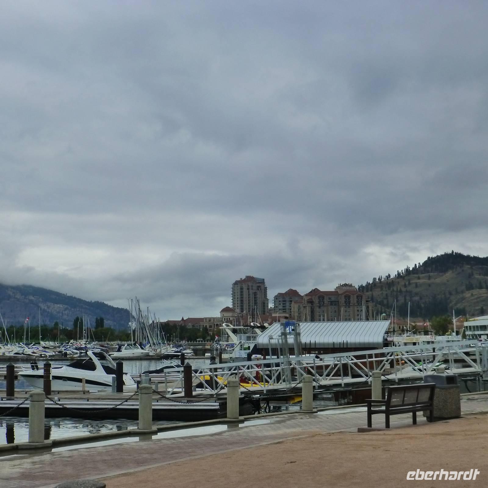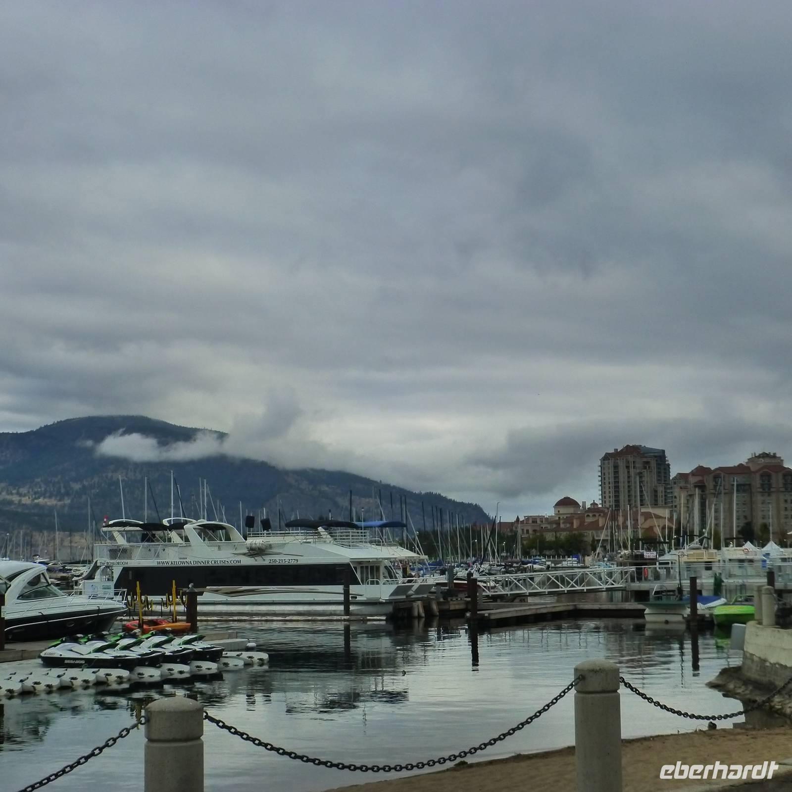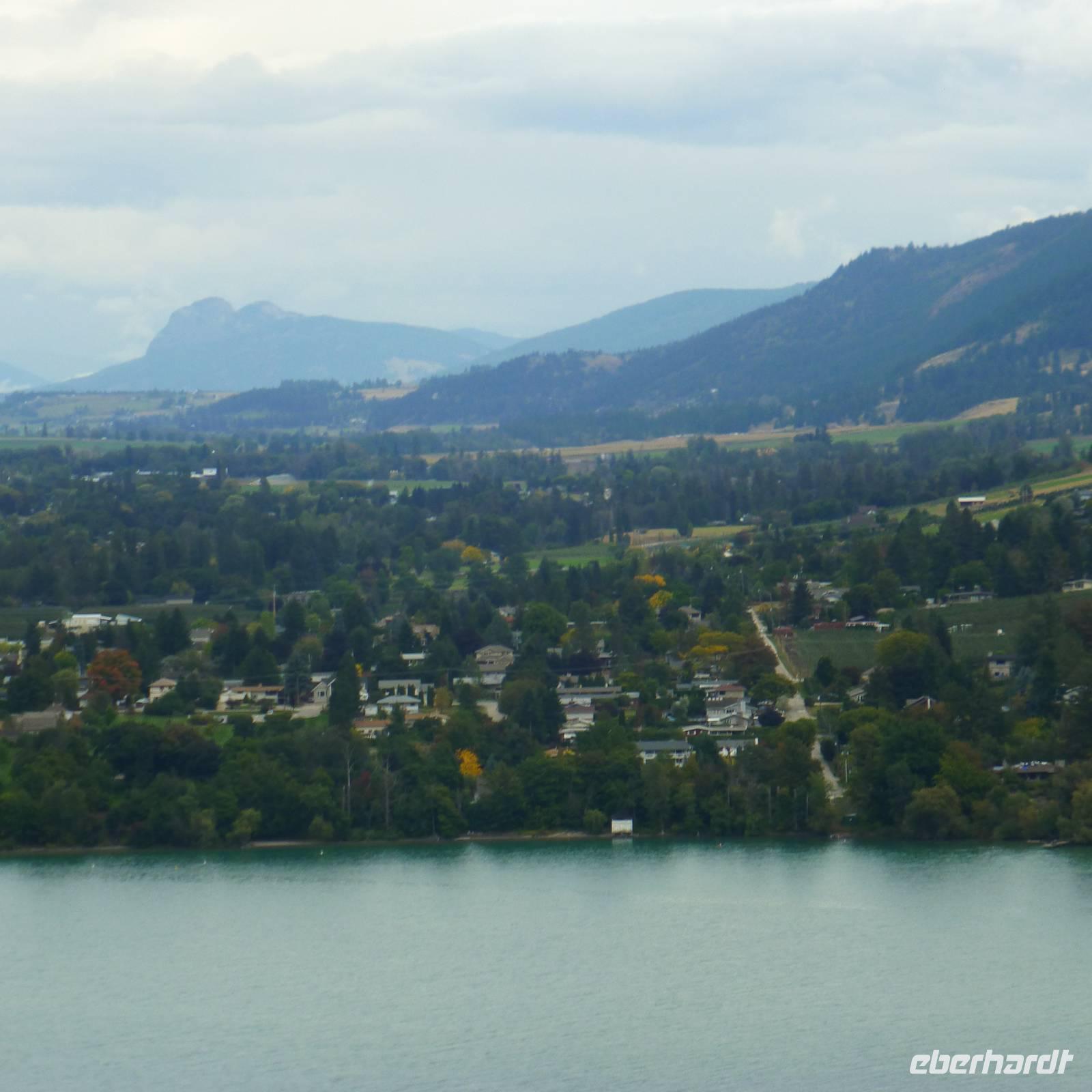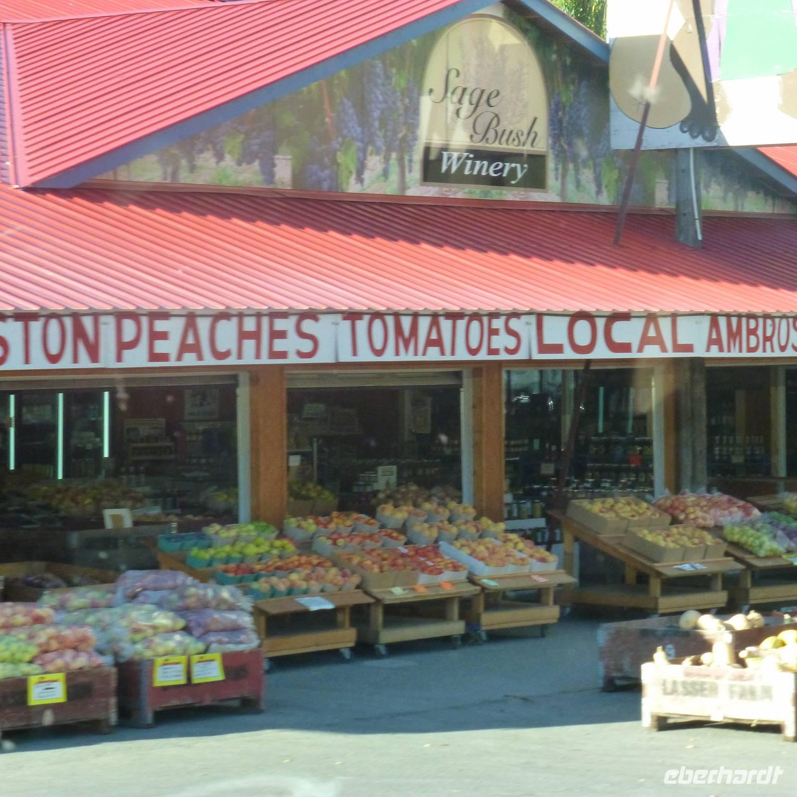 Das Frühstück wurde uns wieder in Tonys Grill gereicht. Auf dem Weg nach Kamlops zeigte sich der erste blaue Himmel. Wir erreichten Clearwater und den Spahats Wasserfall. Im Information Center kauften wir uns noch eine Landkarte um unseren Reiseverlauf fest zu halten. Nun kamen wir langsam in das Ranchgebiet. Erste Rinderherden und Ginseng Felder waren zu sehen. Die Berge wurden niedriger und wir erreichten Barrier. Vor einigen Jahren war diese Stadt bekannt durch einen verheerenden Waldbrand. Die Stadt musste damals evakuiert werden. Überall waren verbrannte Berge zu sehen. In Kamlops fuhren wir an einem Indianerreservat mit einem POW WOW Gelände vorbei. In der South Thomsen Rang legten wir unsere Mittagspause ein und setzten anschließend unsere Fahrt nach Wilhelms fort. Wir näherten uns dem Okanakental. Bekannt durch den Obstanbau. Vor allem werden hier Äpfel, Birnen, Pflaumen und Pfirsiche angebaut. Verschiedene Obststände standen entlang der Straße. Nach kurzem Halt kauften auch wir einiges Obst ein. Unser nächstes Ziel war der Kalamalka See.